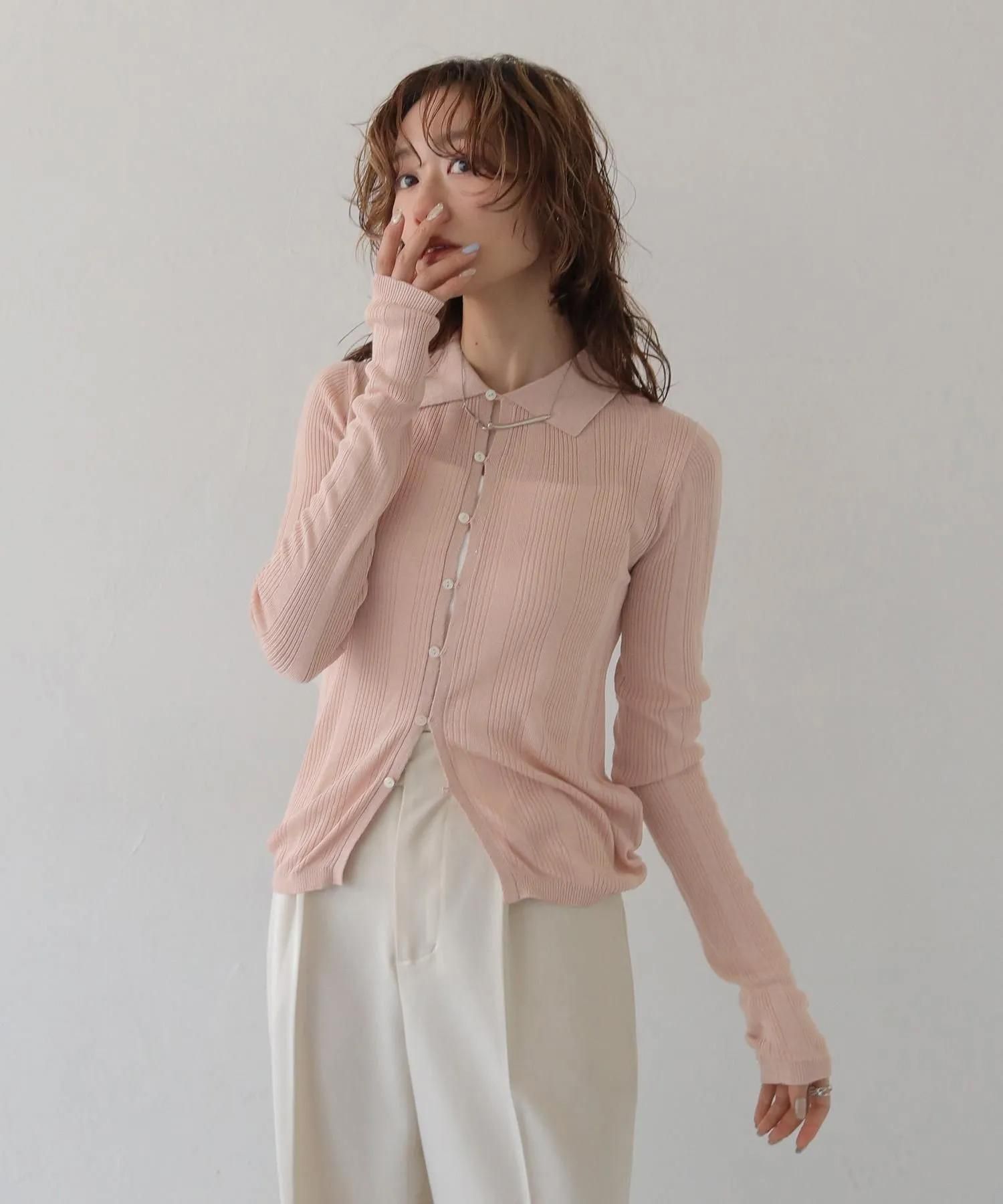 【CLEIO】ランダムリブスパンコールシアーポロニット