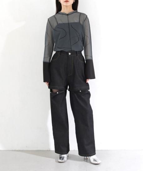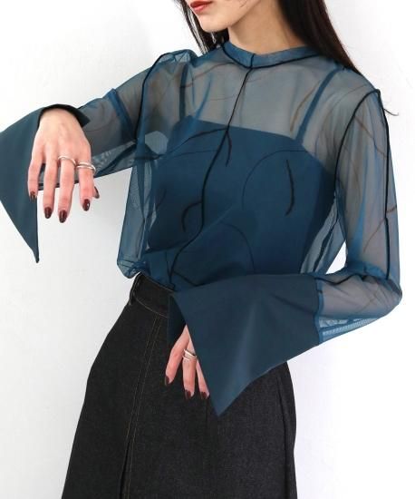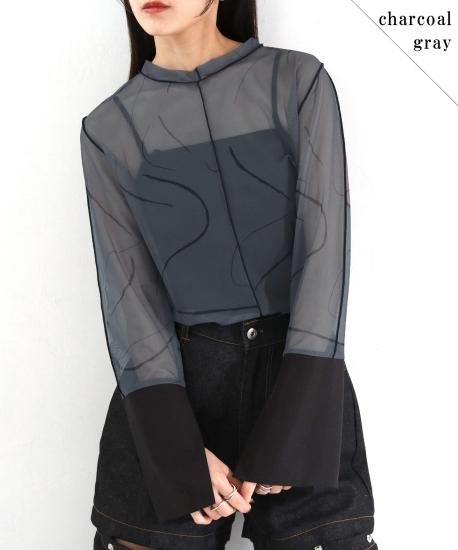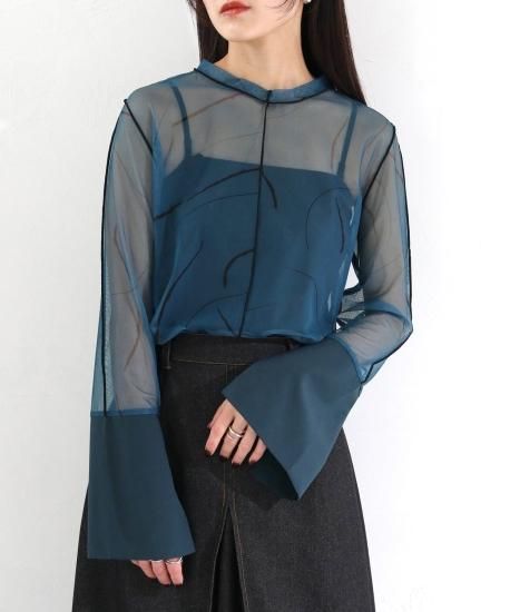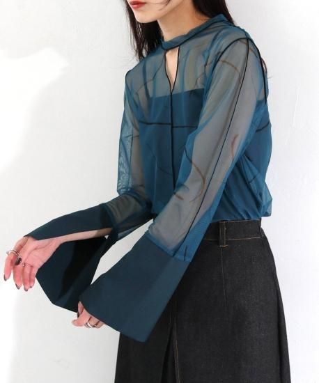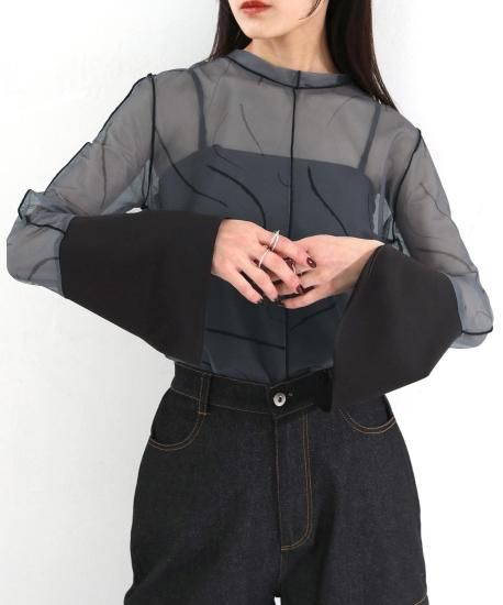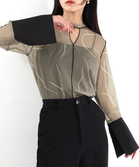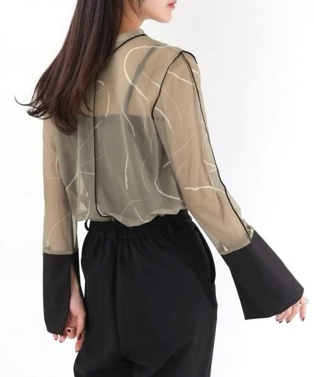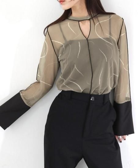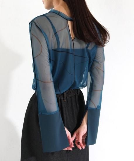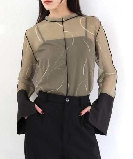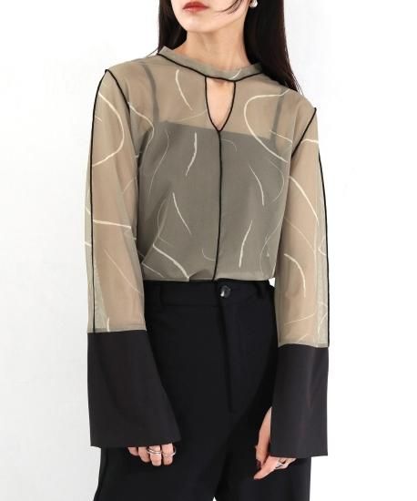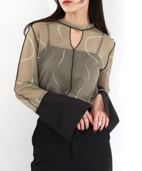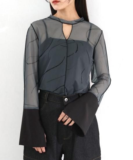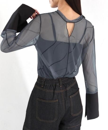 ¡Úcheriella¡Û2WAY SLEEVE SWITCHING MARBLE SHEER TOPS/980-21703
