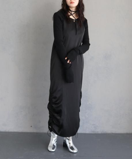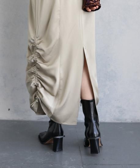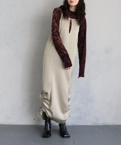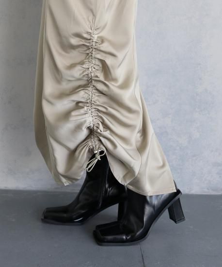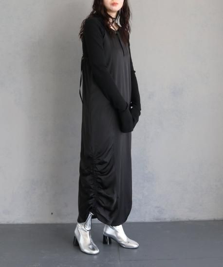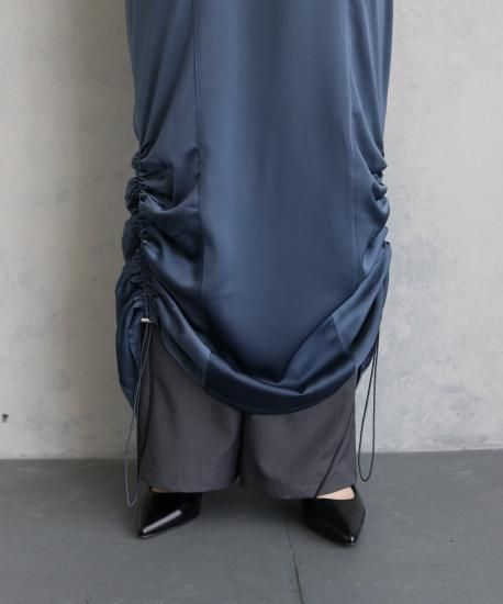 裾のドロストはお好みで絞りを調節し、ギャザーディティールの強さをアレンジ可能。