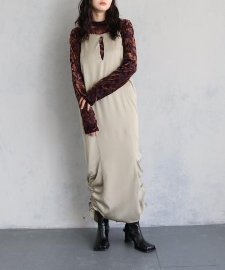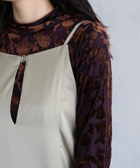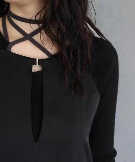 胸元にはホック仕様のスリットを施し、大人ぽい抜け感を演出。