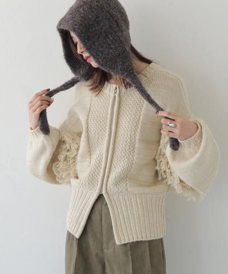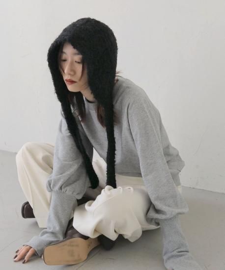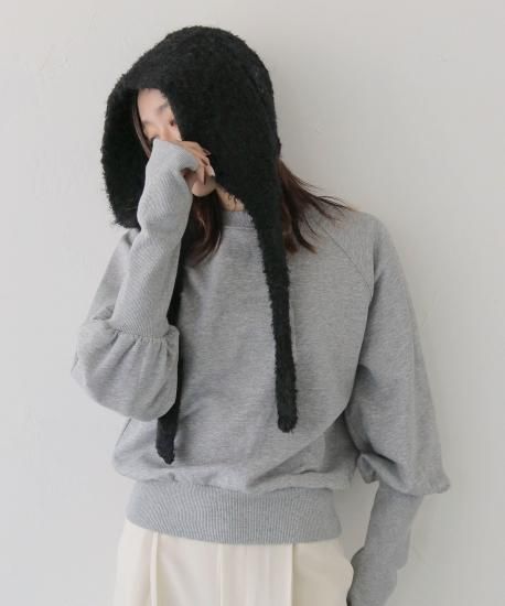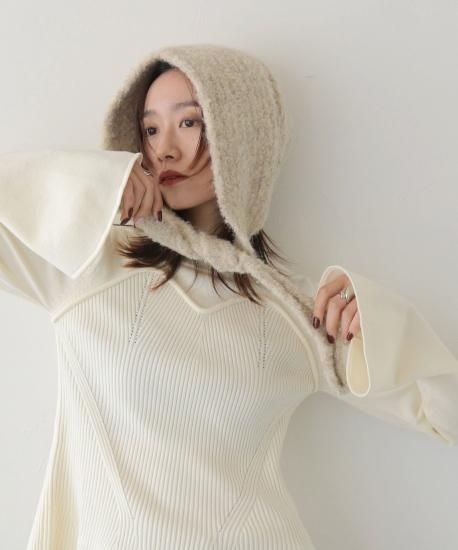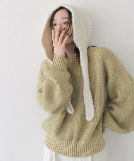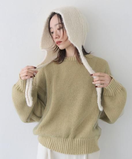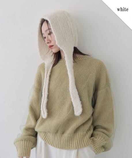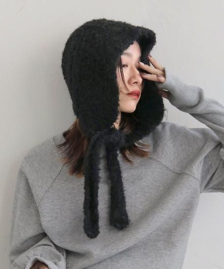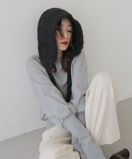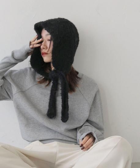 ・秋冬っぽいふわふわとした素材感で、被るだけでトレンド感満載コーデに。