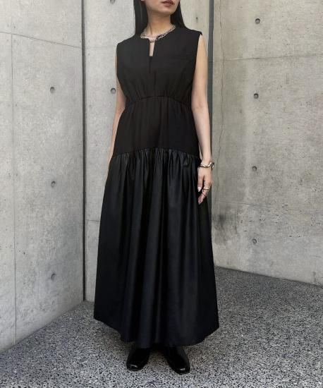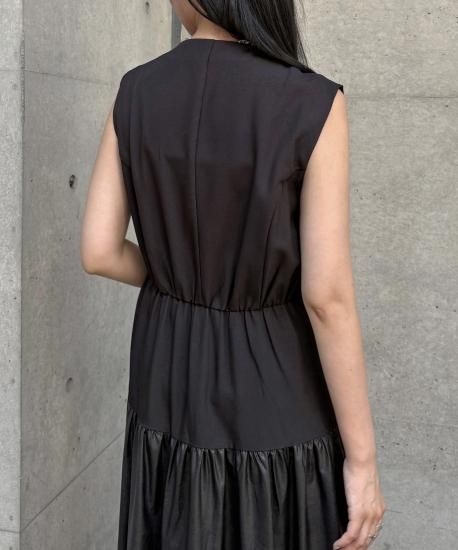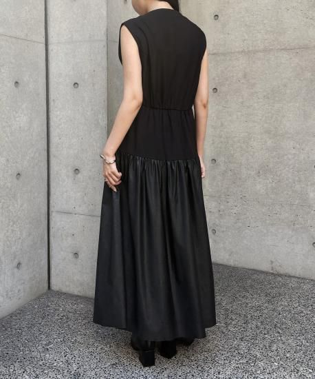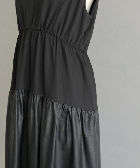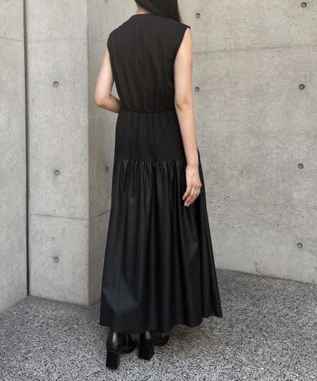 【&g'aime】レザー切替ティアードワンピース/293-67400