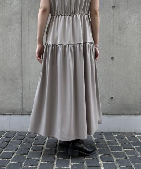 裾に向かって広がるティアードシルエットが歩くたびに揺れ、女性らしさと存在感を演出します。