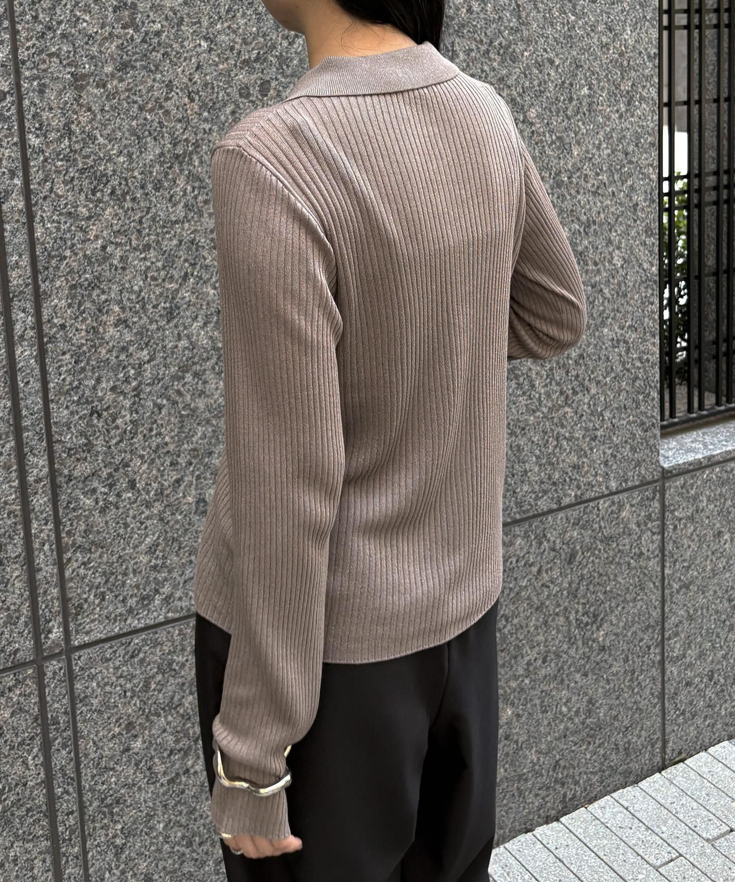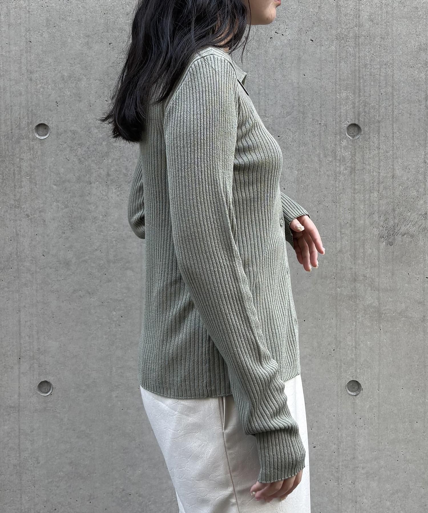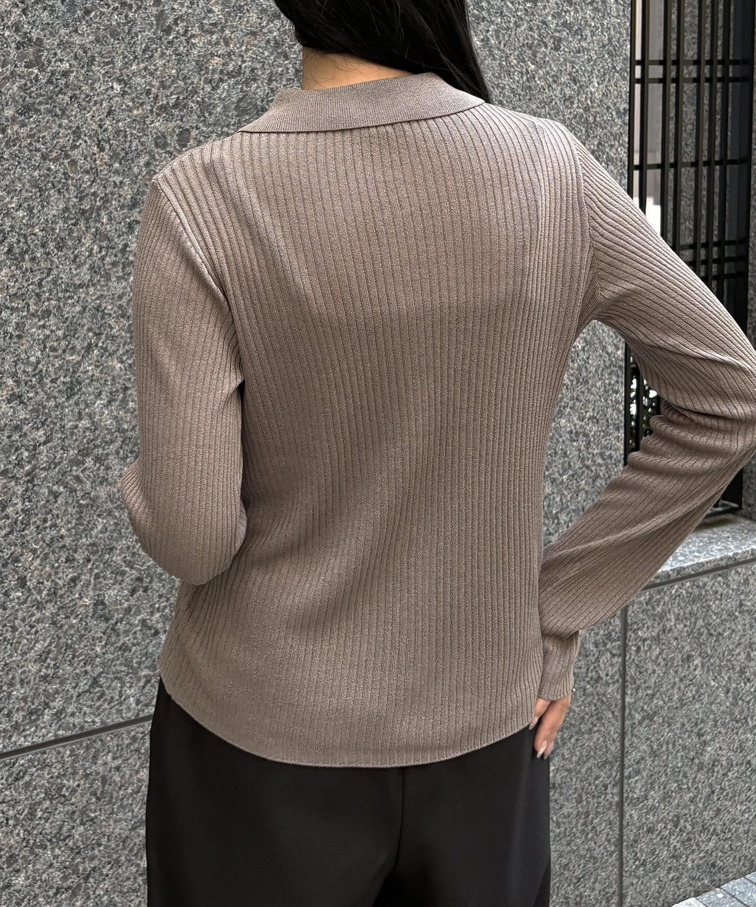 リブ編みのすっきりとした表情と控えめな輝きが、大人っぽい雰囲気を演出します。