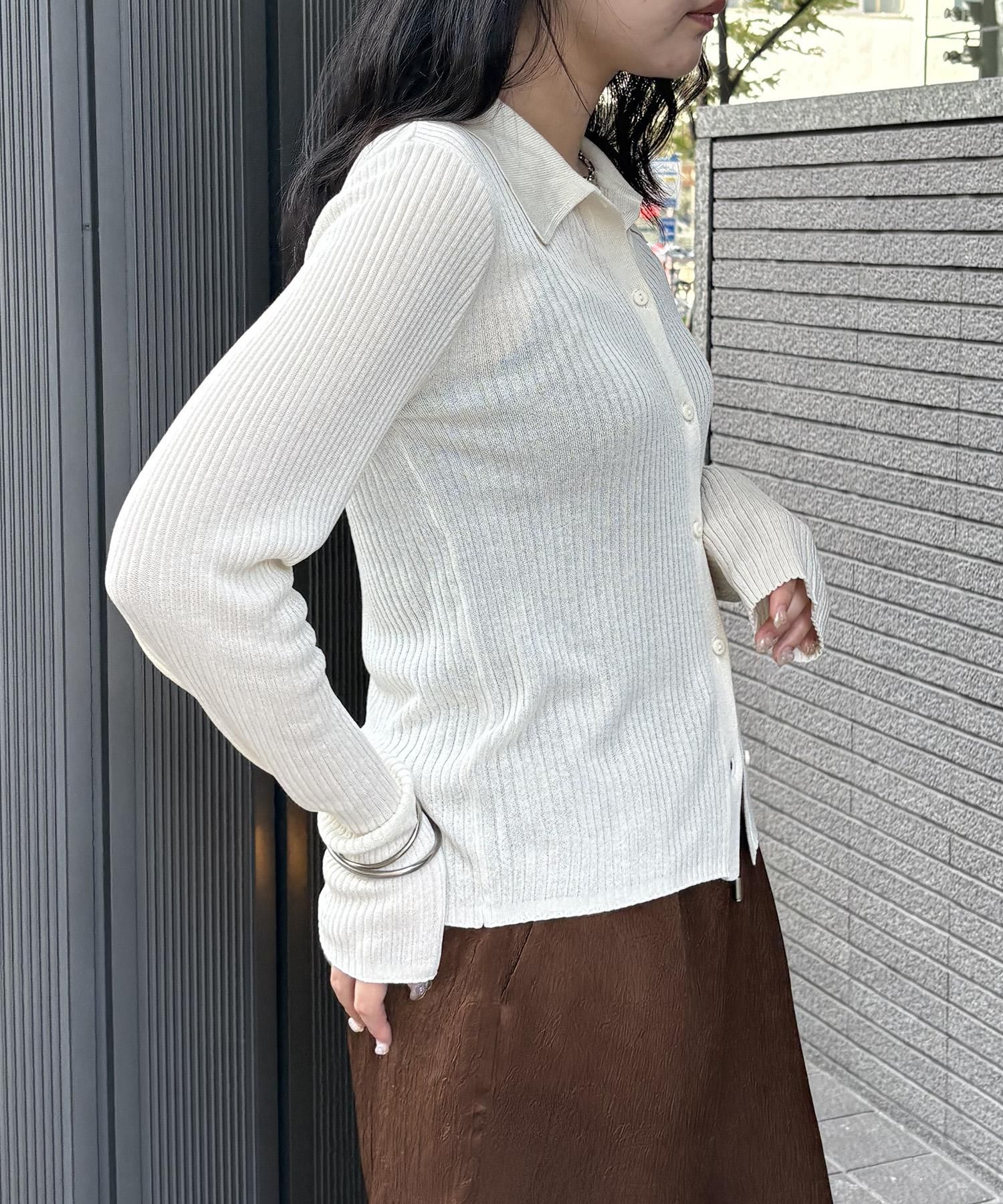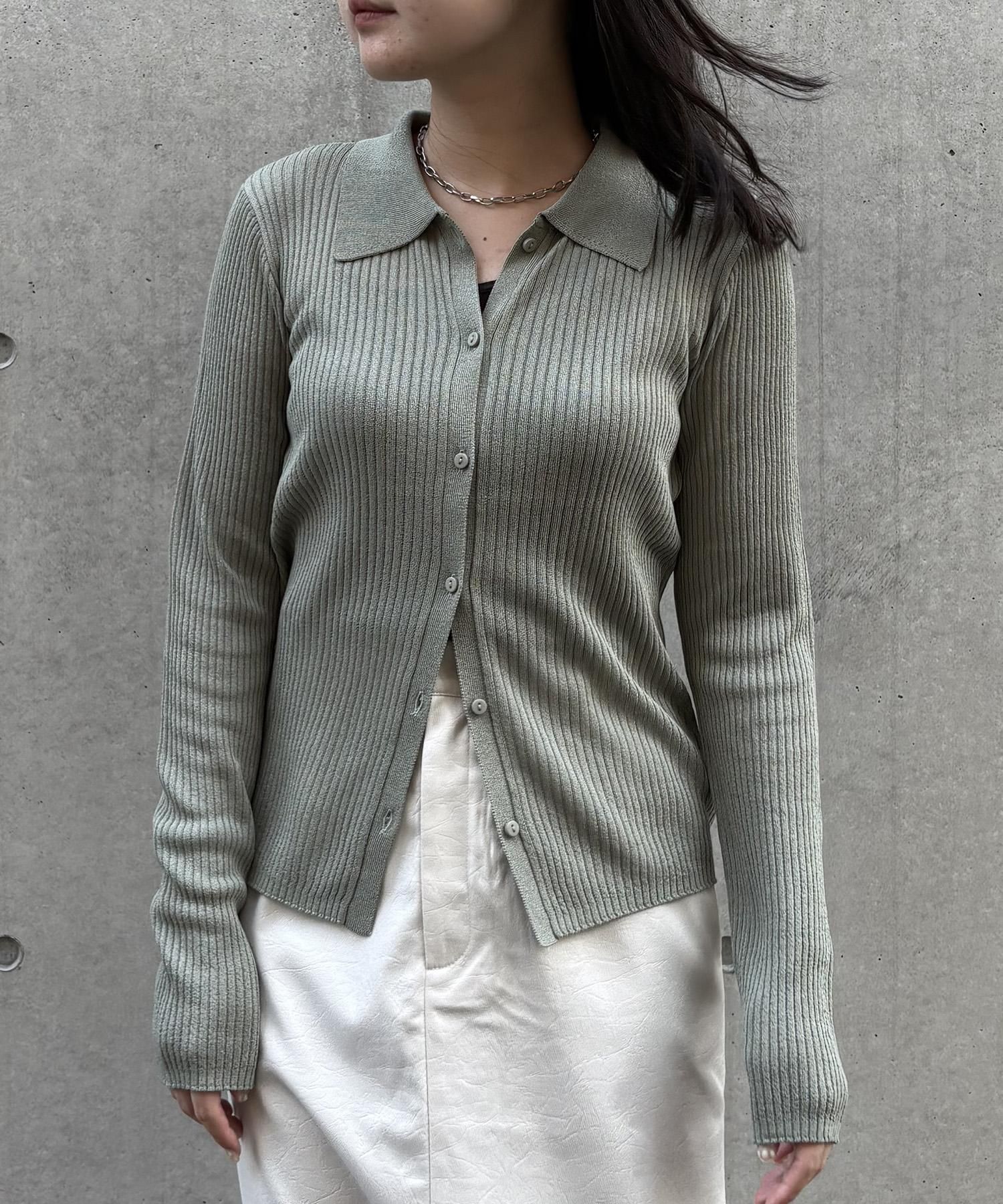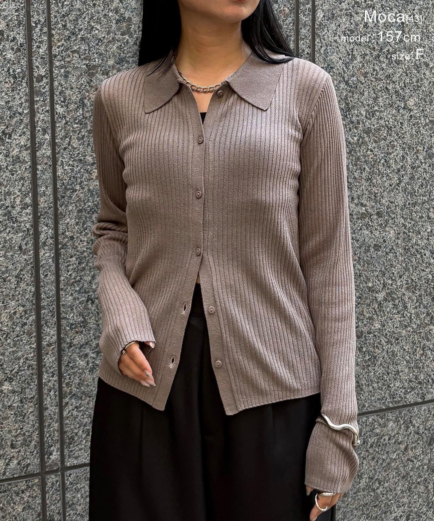 リブ編みのすっきりとした表情と控えめな輝きが、大人っぽい雰囲気を演出します。