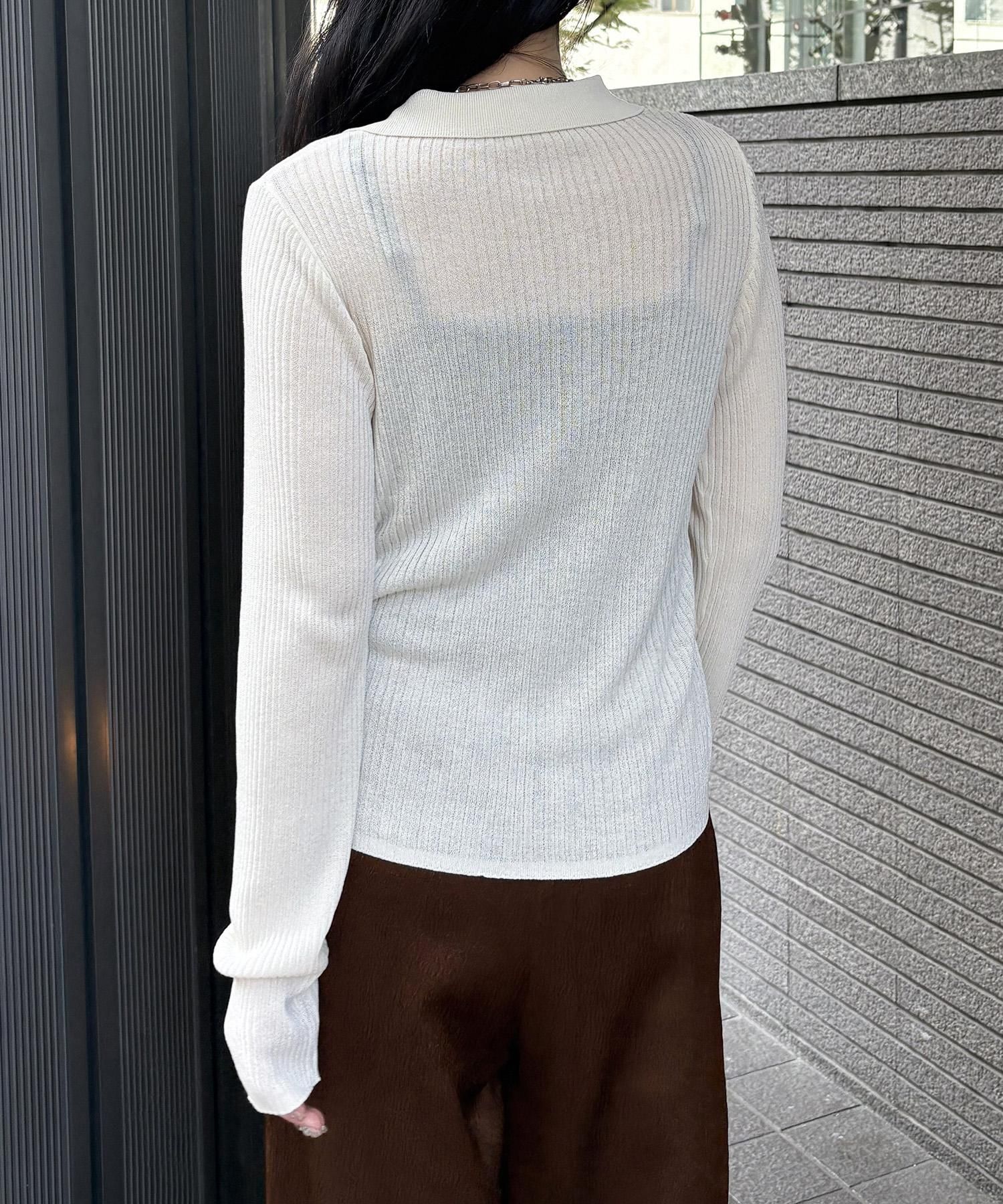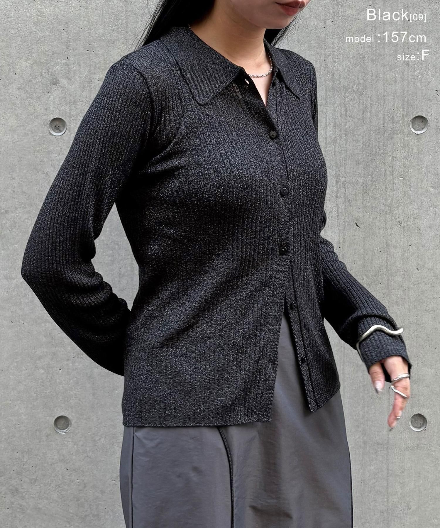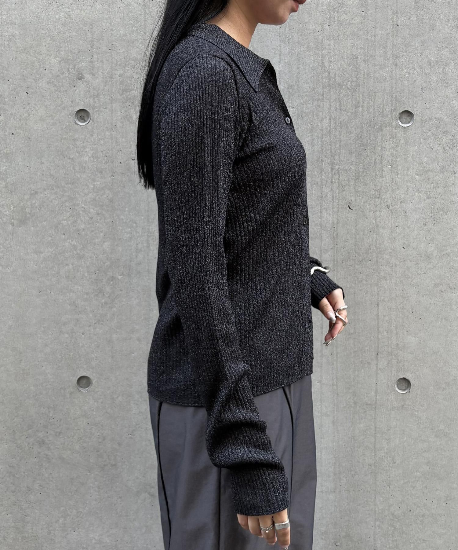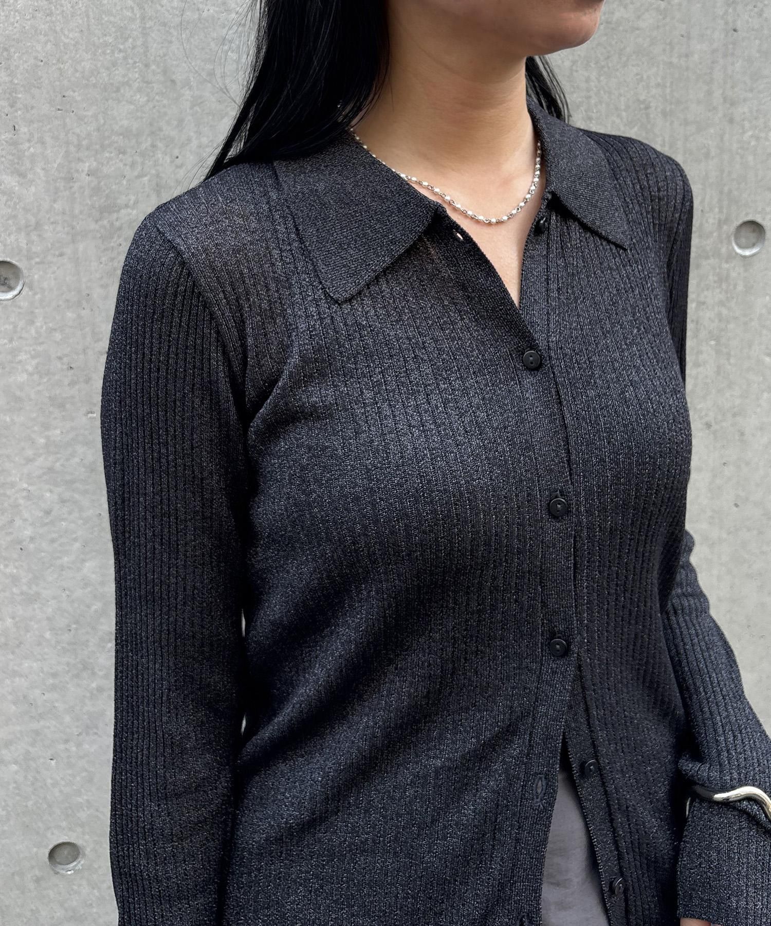 繊細なラメがさりげなく光る、大人のシアーポロニット