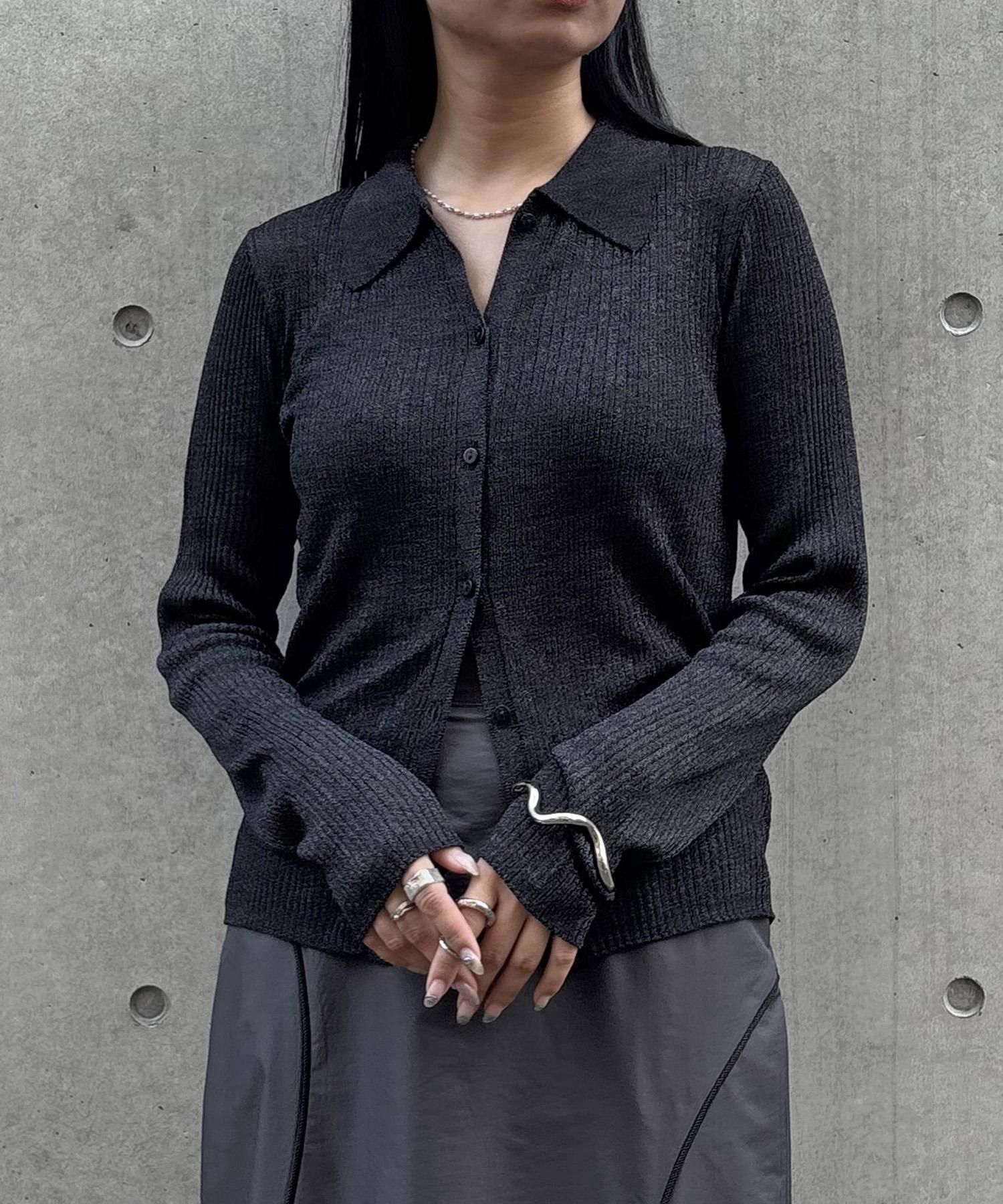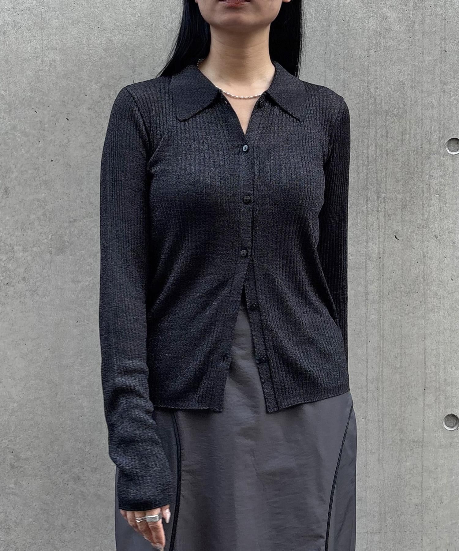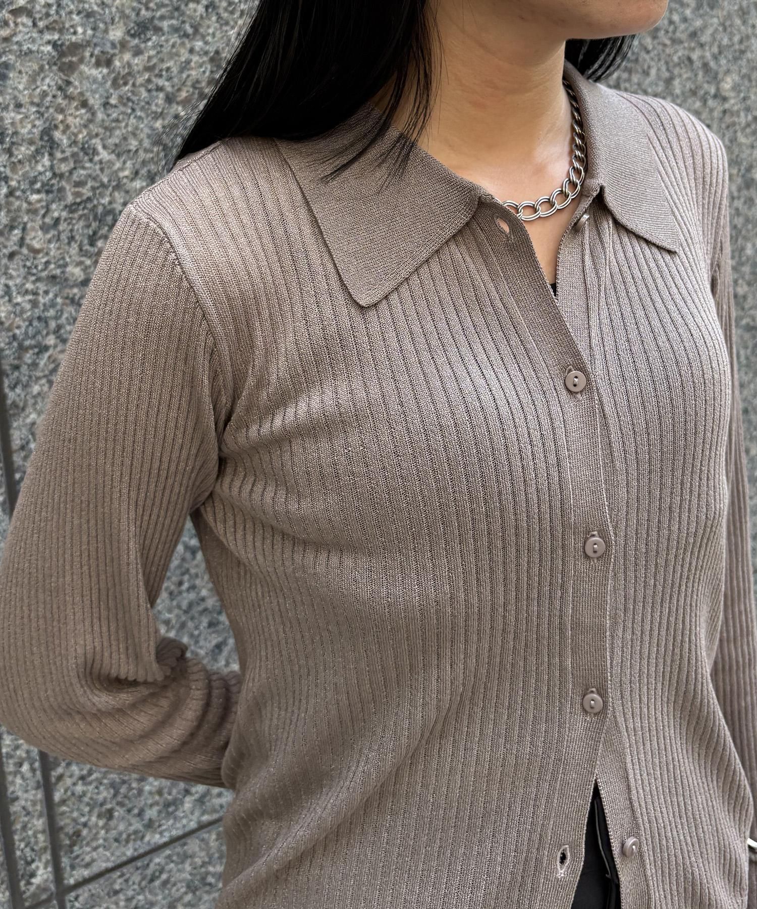 繊細なラメがさりげなく光る、大人のシアーポロニット