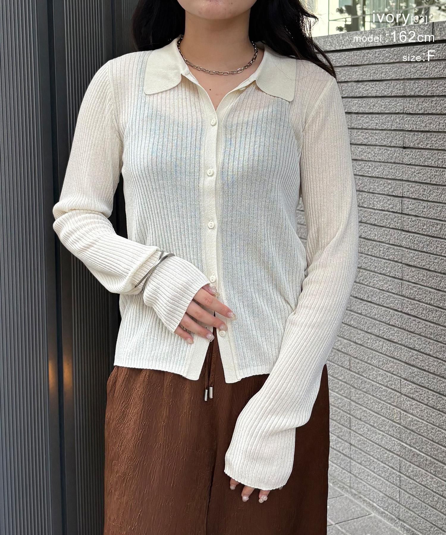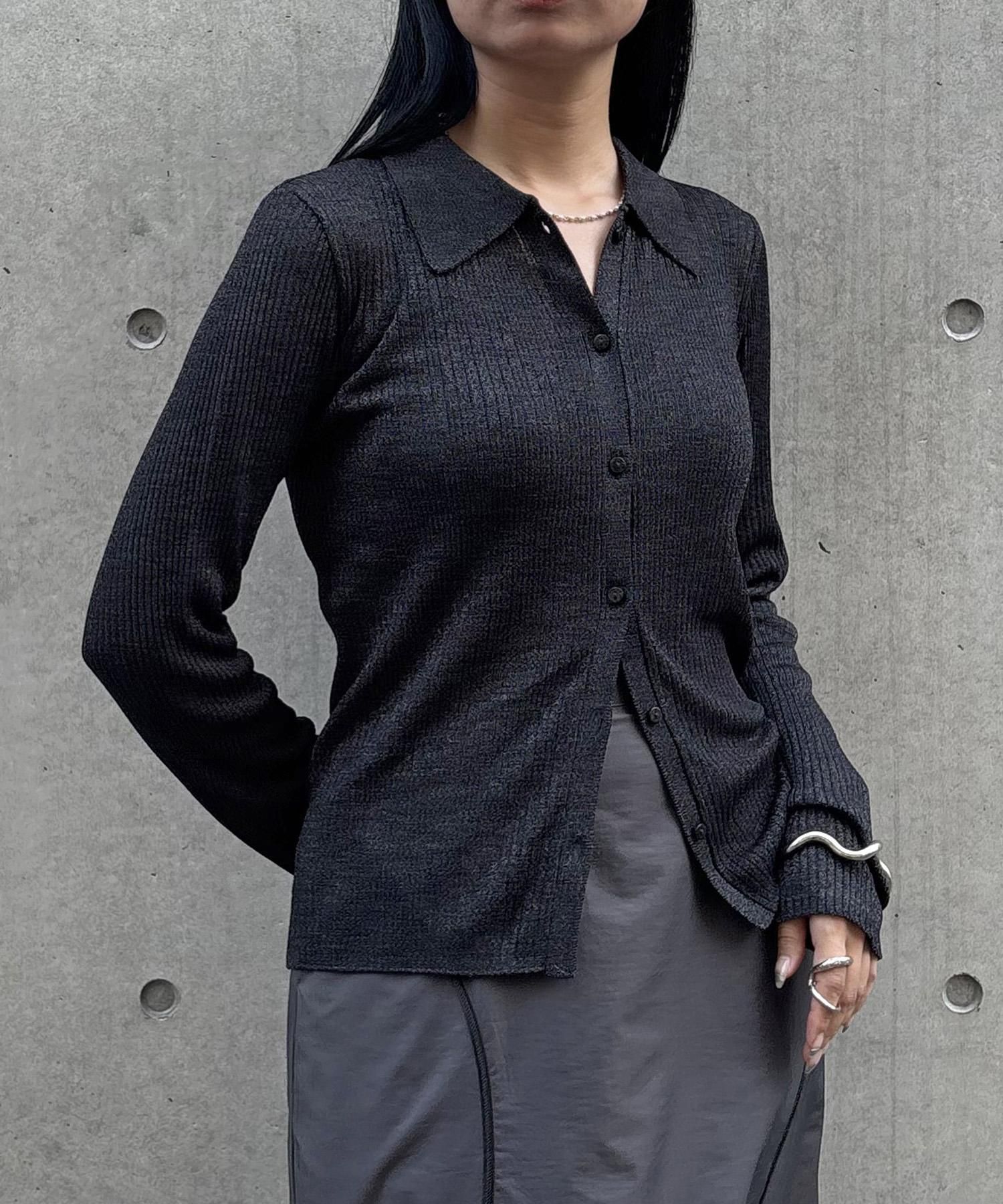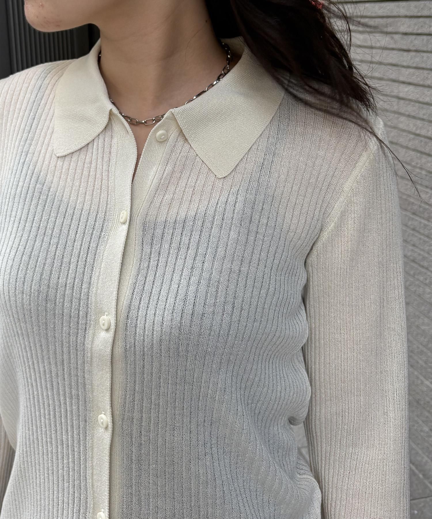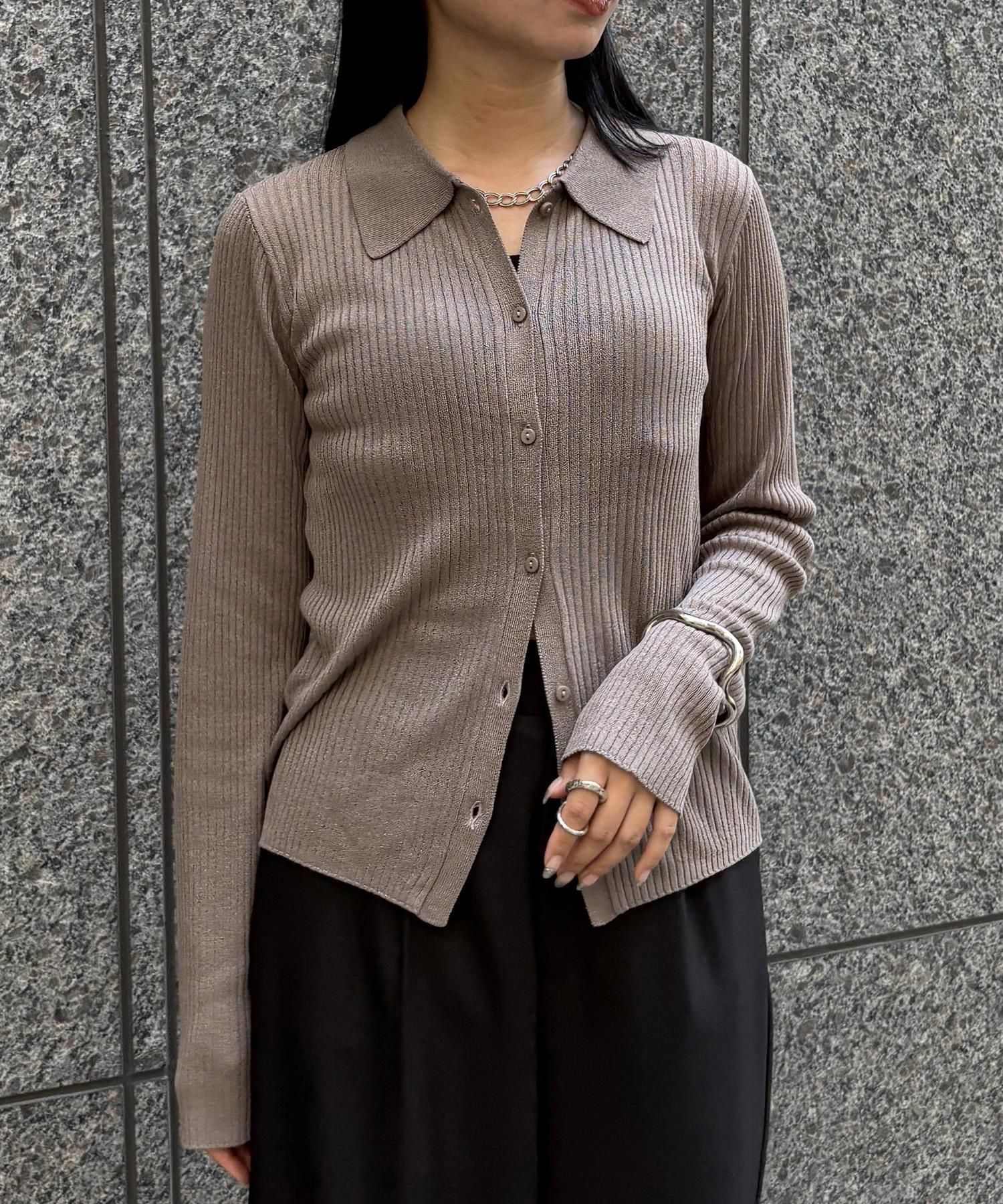 繊細なラメがさりげなく光る、大人のシアーポロニット