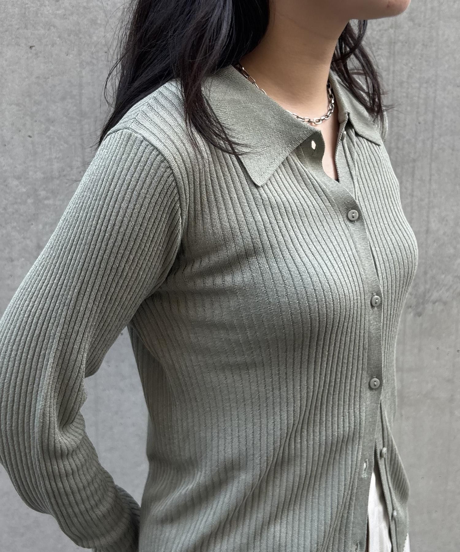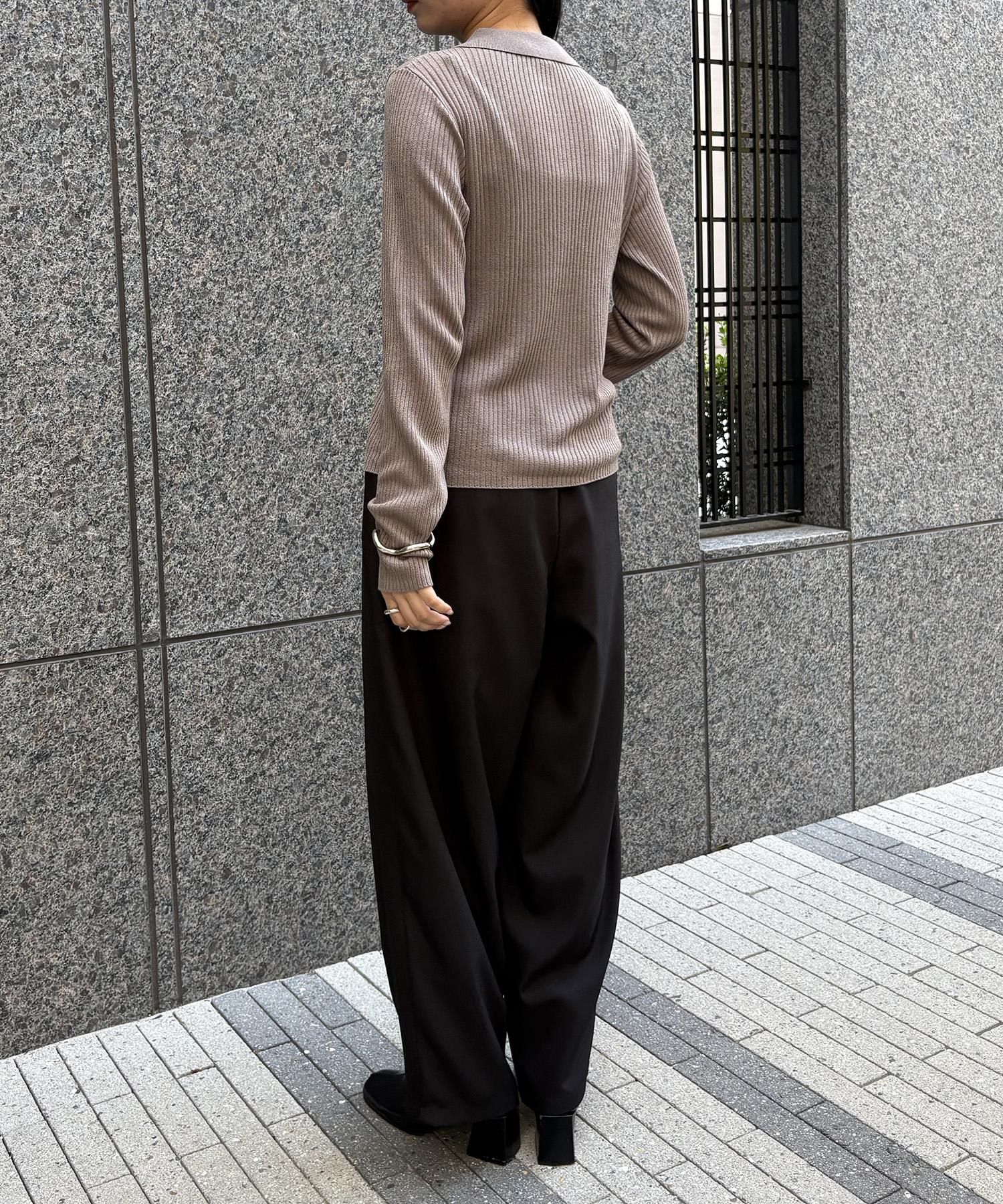 さらりとした肌触りで、季節の端境期から活躍。衿付きデザインなので、カジュアルになりすぎず上品な印象に。