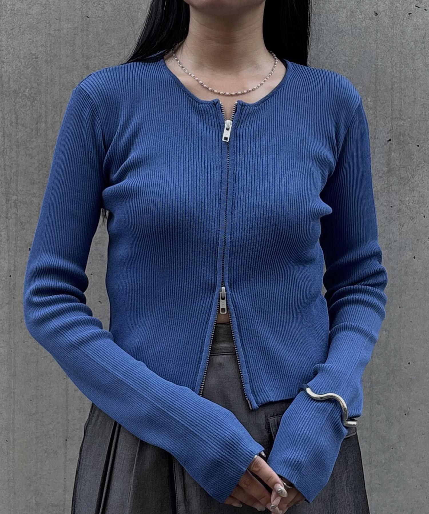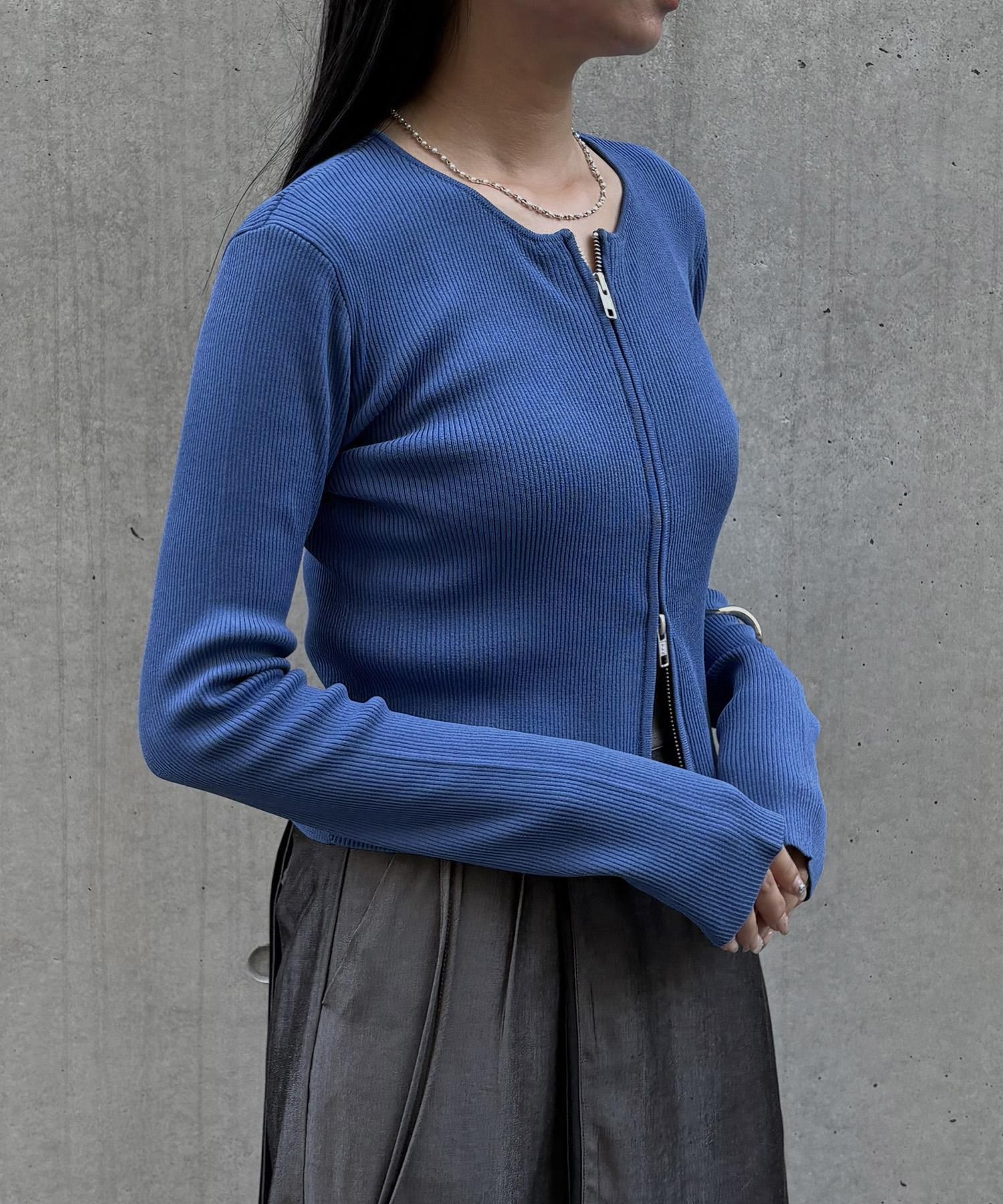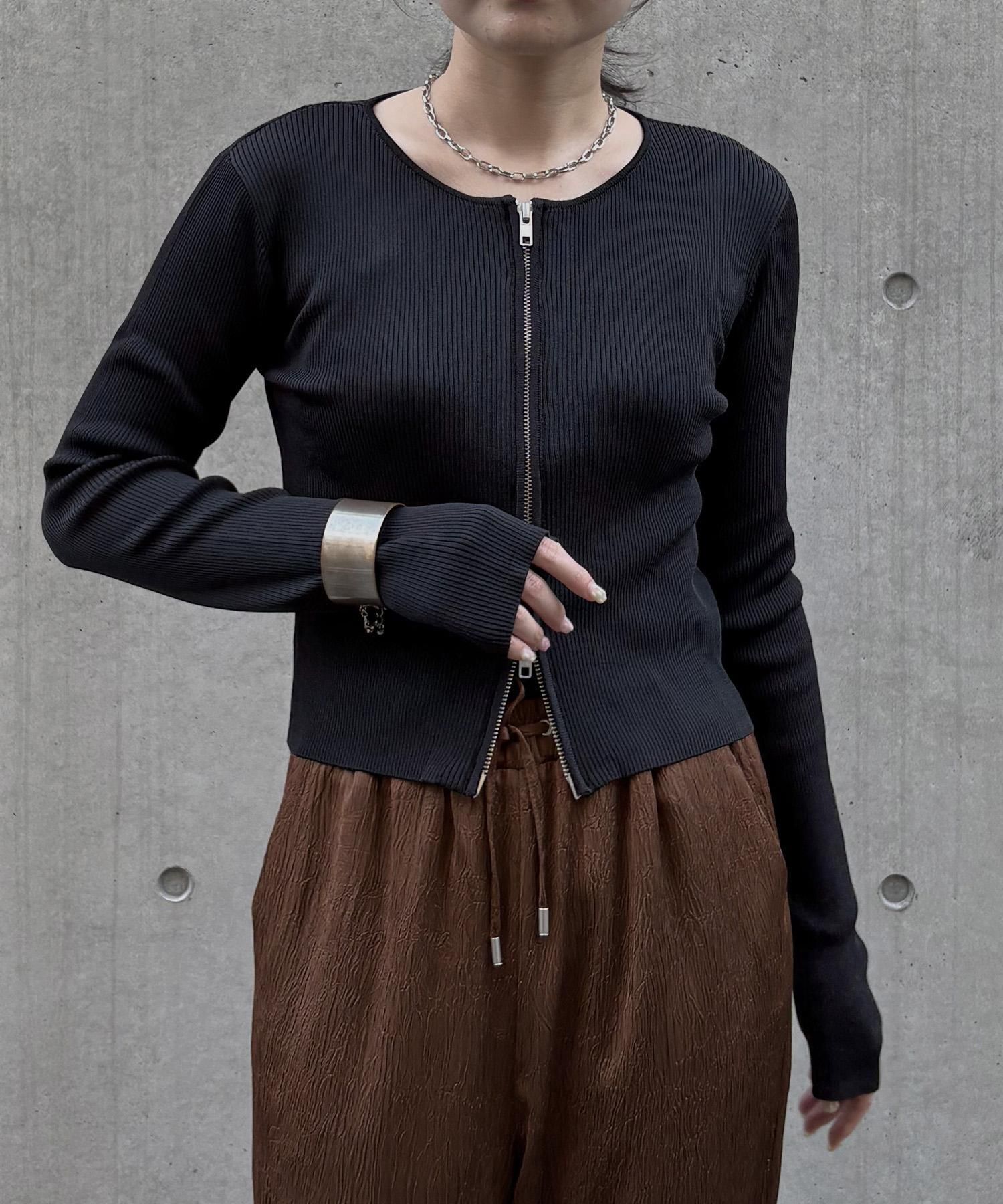 Wジップを下から少し開けて、抜け感をプラスするスタイリングもおすすめです。