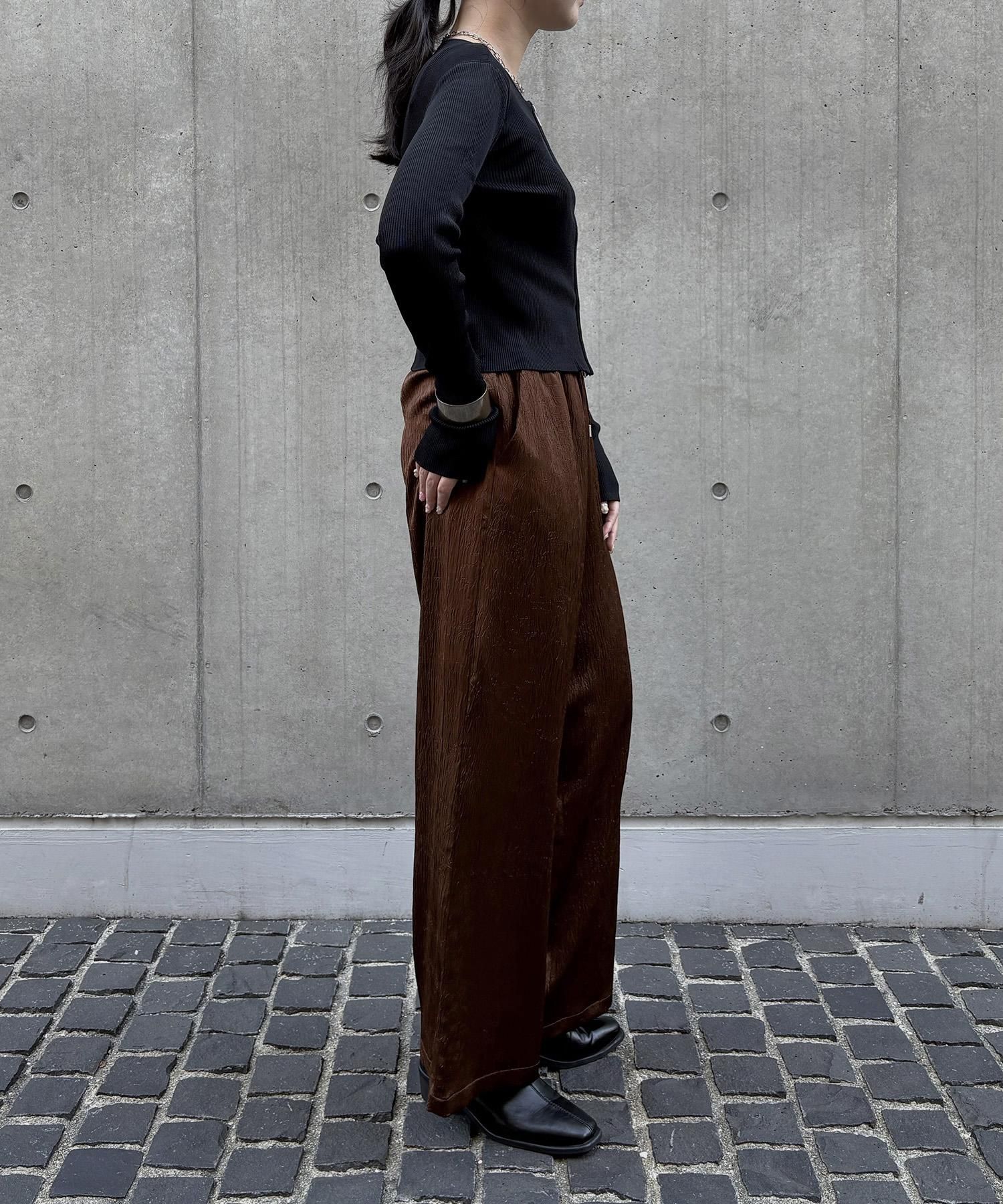 ワイドパンツやタイトスカートはもちろん、ワンピースの上からも相性抜群。