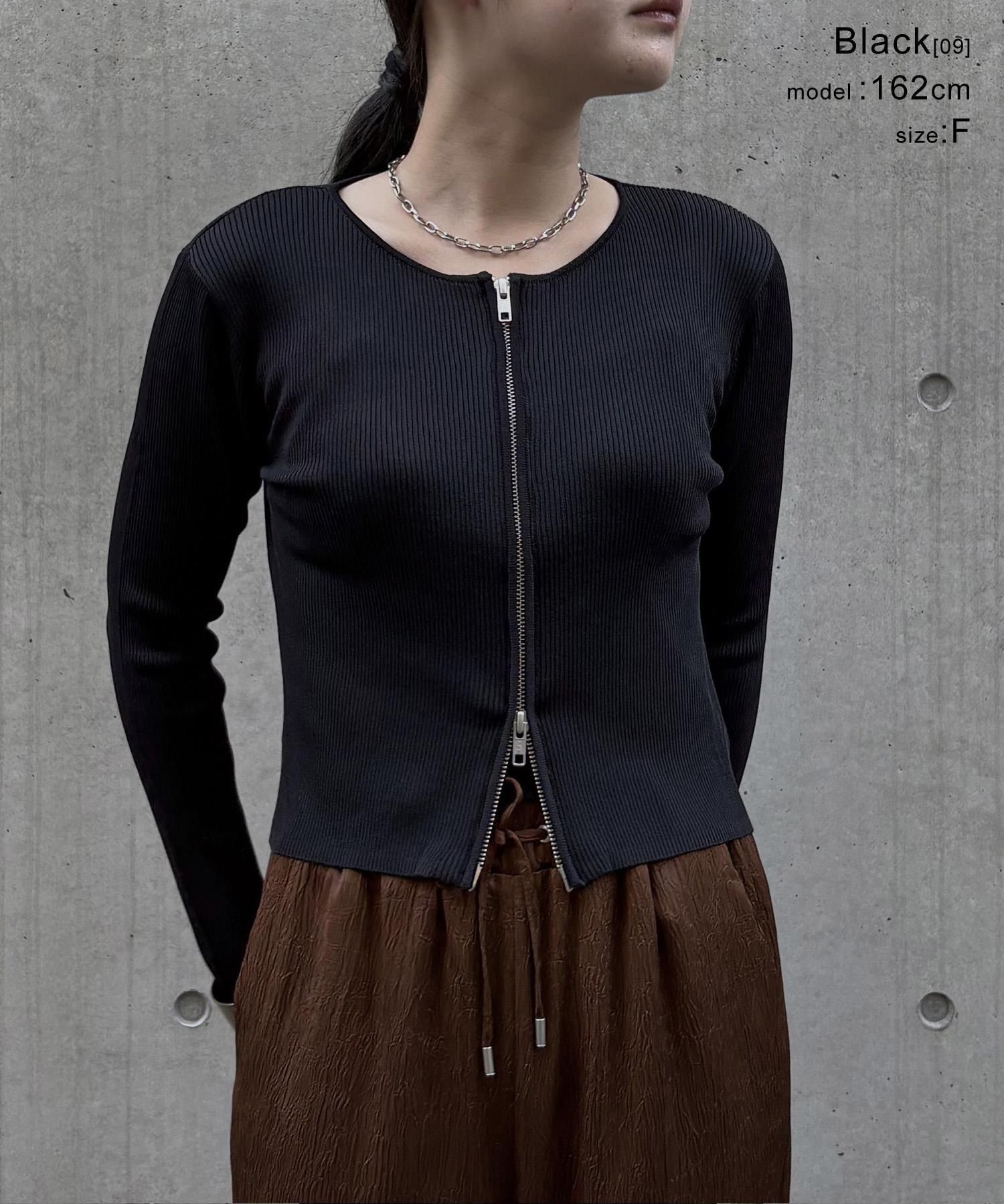 前を閉じてトップスとして、開けて羽織りとして着られる2WAY仕様。