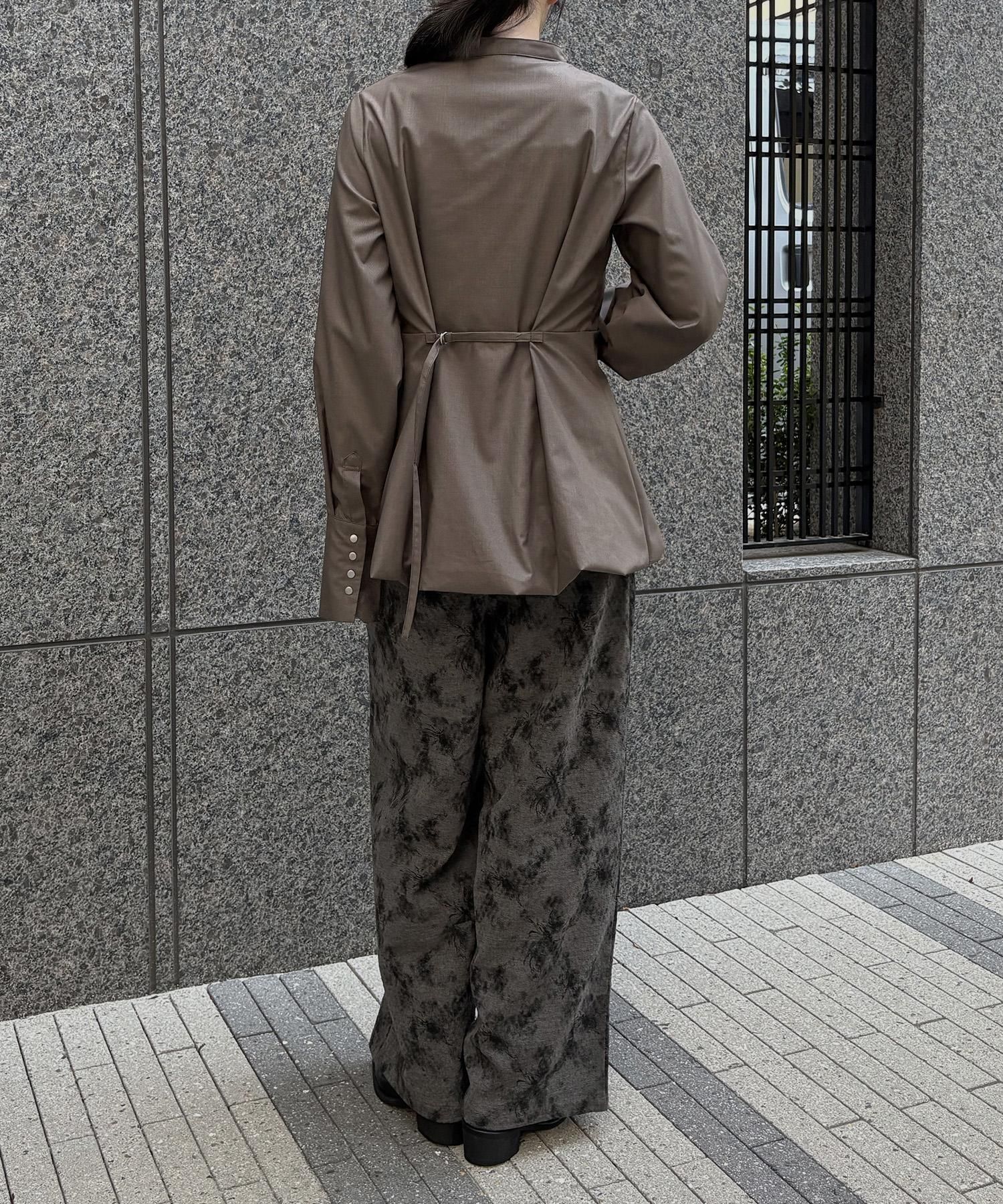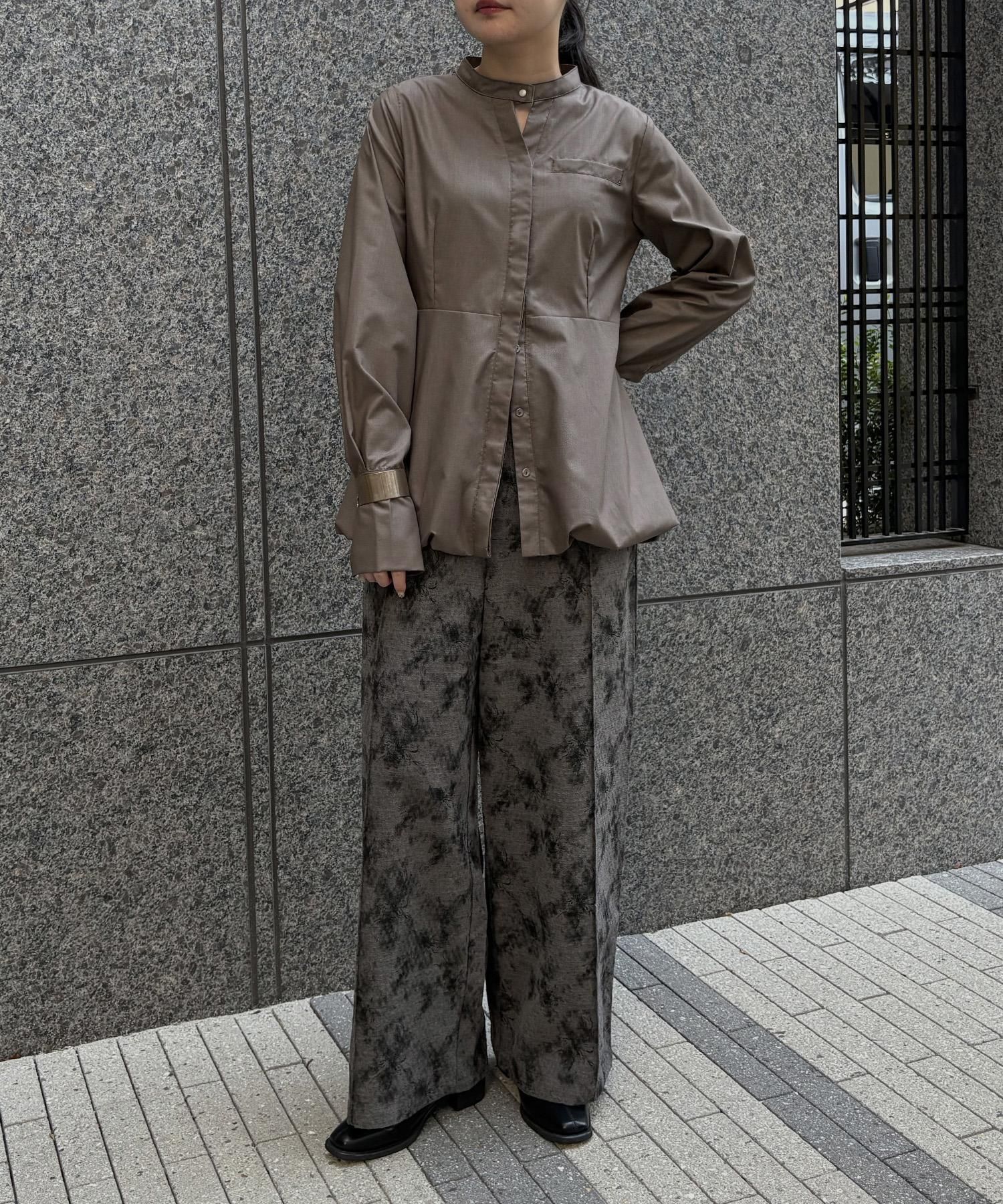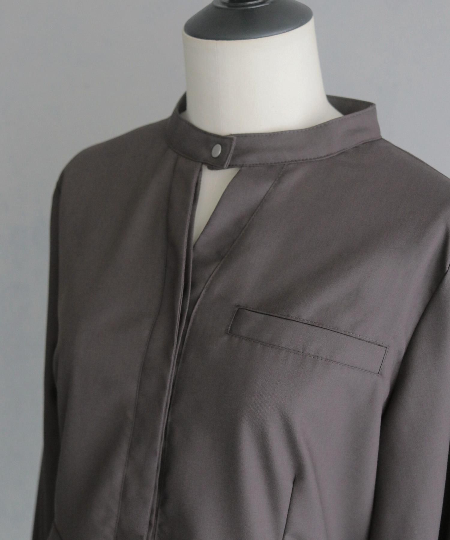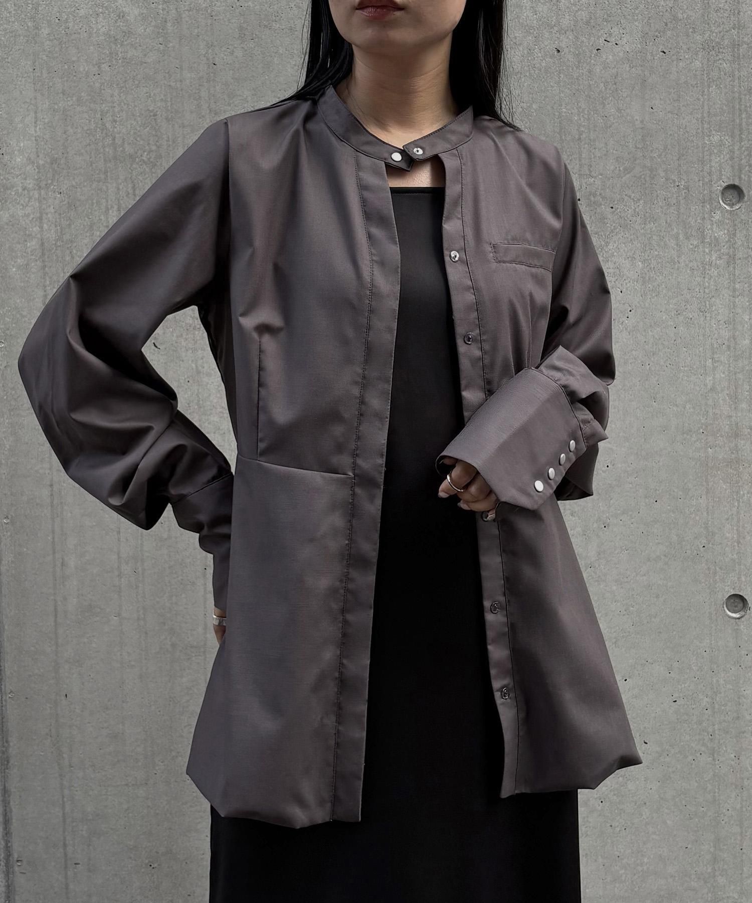 落ち感のある柔らかな素材を使用しているため、ブラウスとしても羽織としても活躍する万能アイテムです。