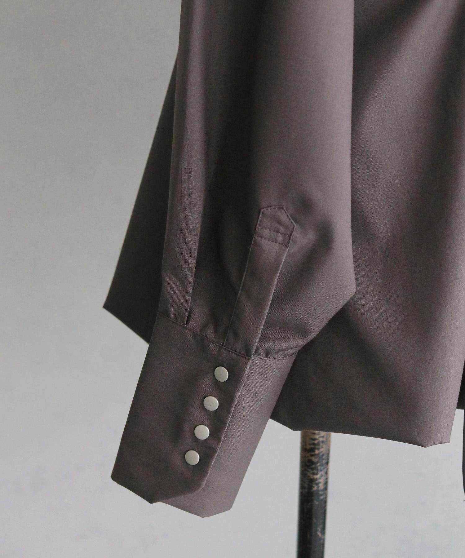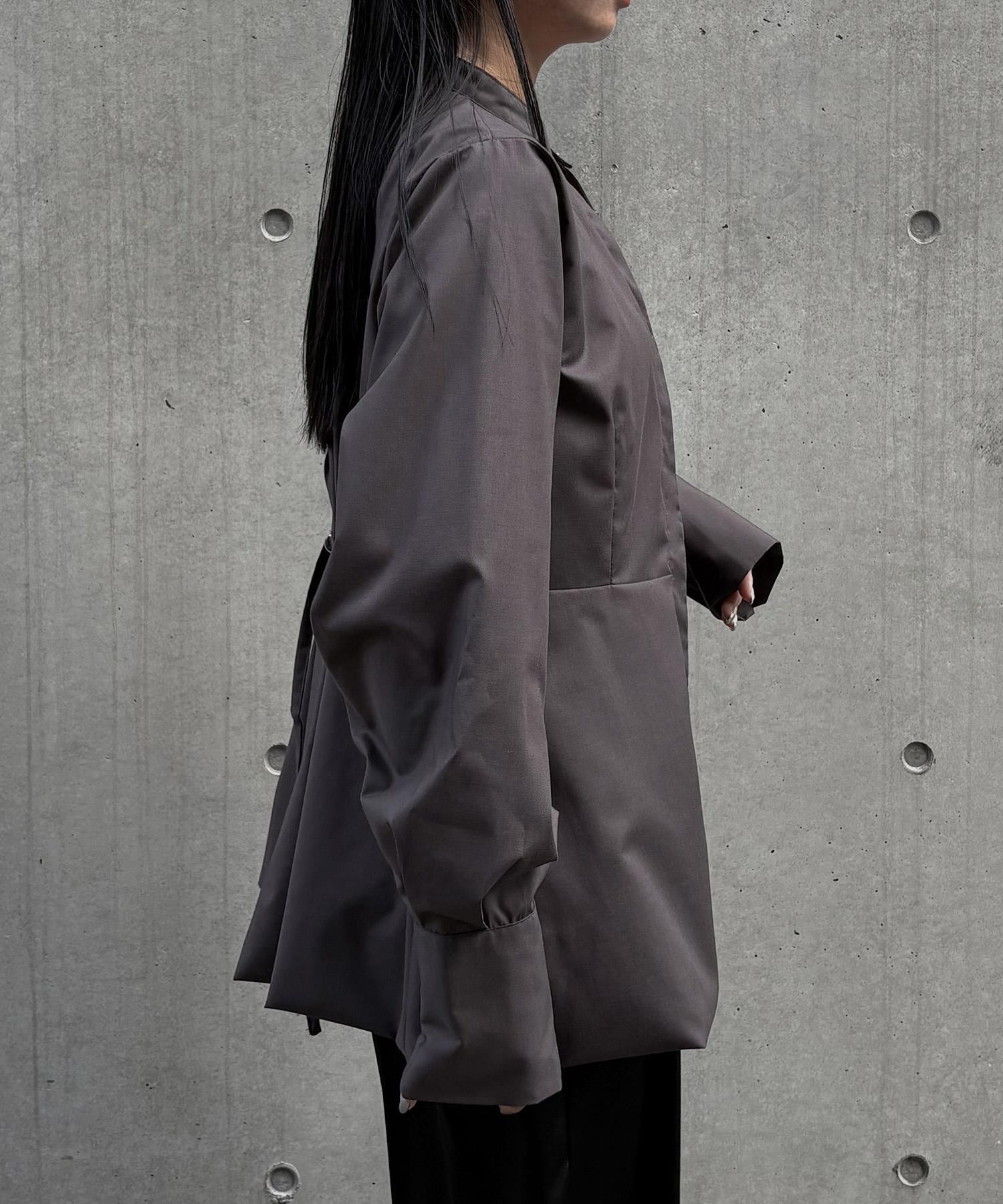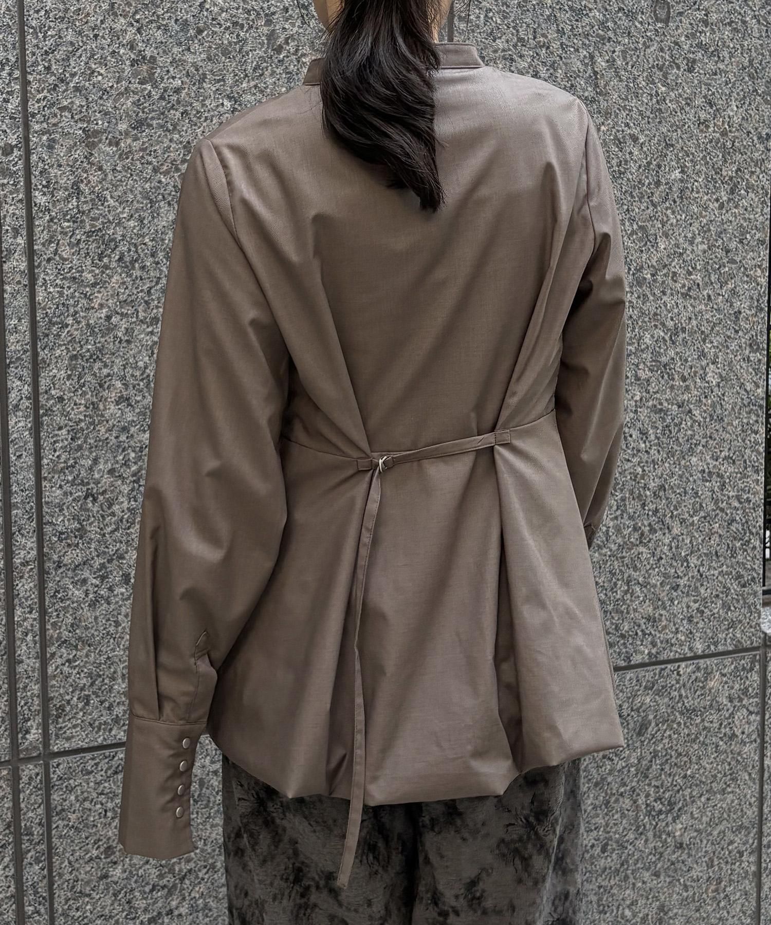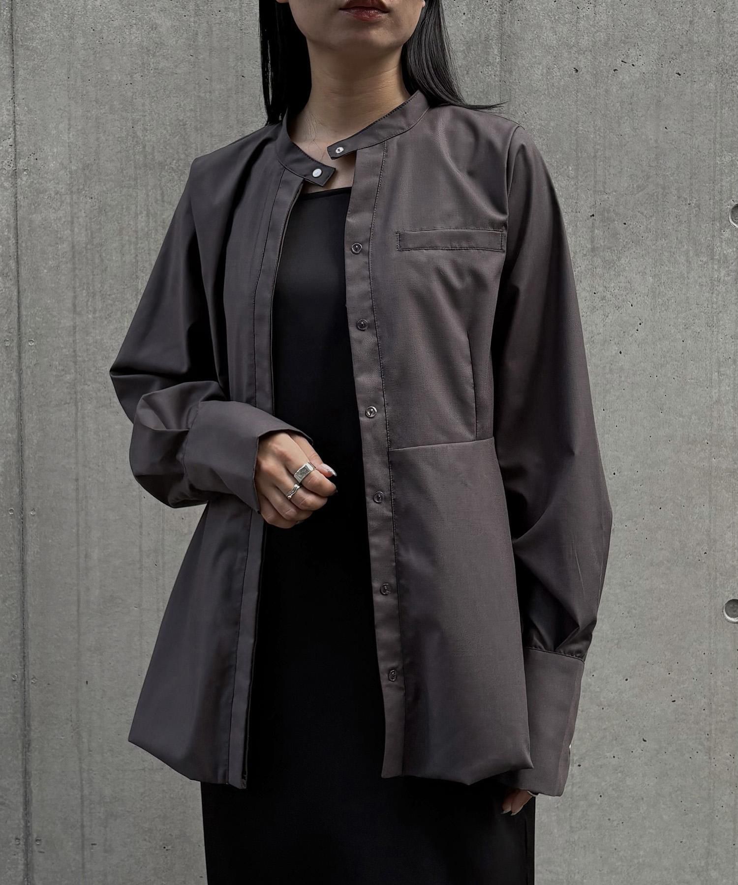 落ち感のある柔らかな素材を使用しているため、ブラウスとしても羽織としても活躍する万能アイテムです。