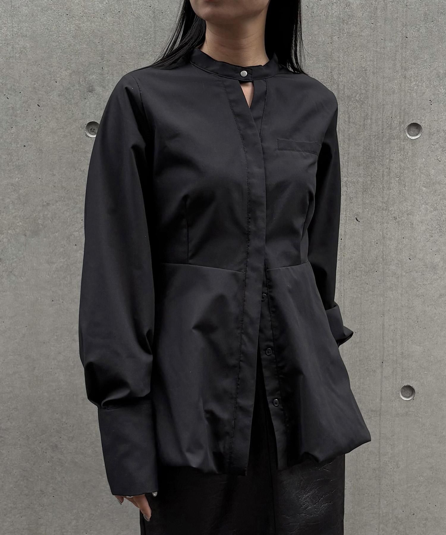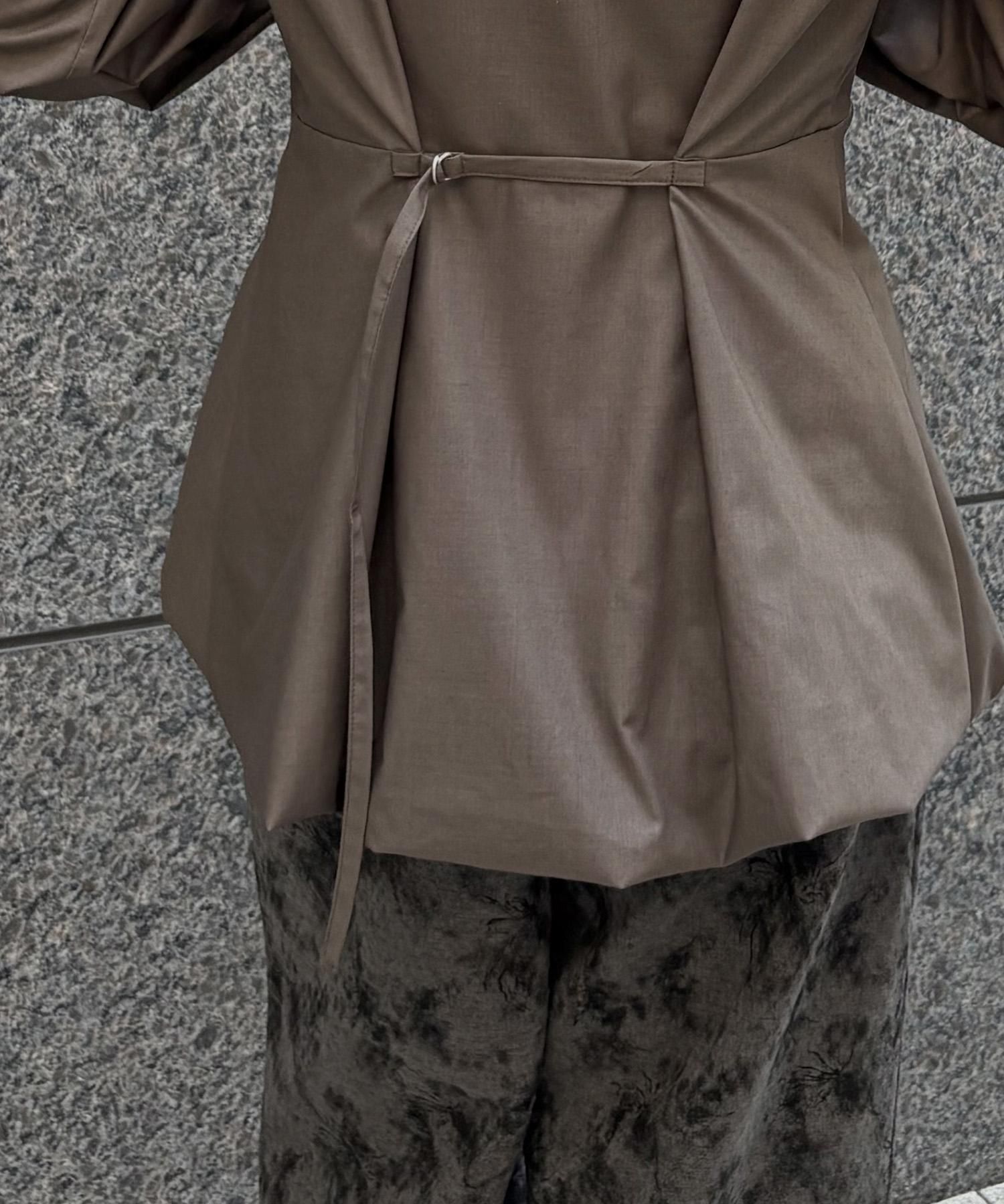 シンプルながらも、裾のバルーンやウエスト切替などシルエットにこだわった一枚。