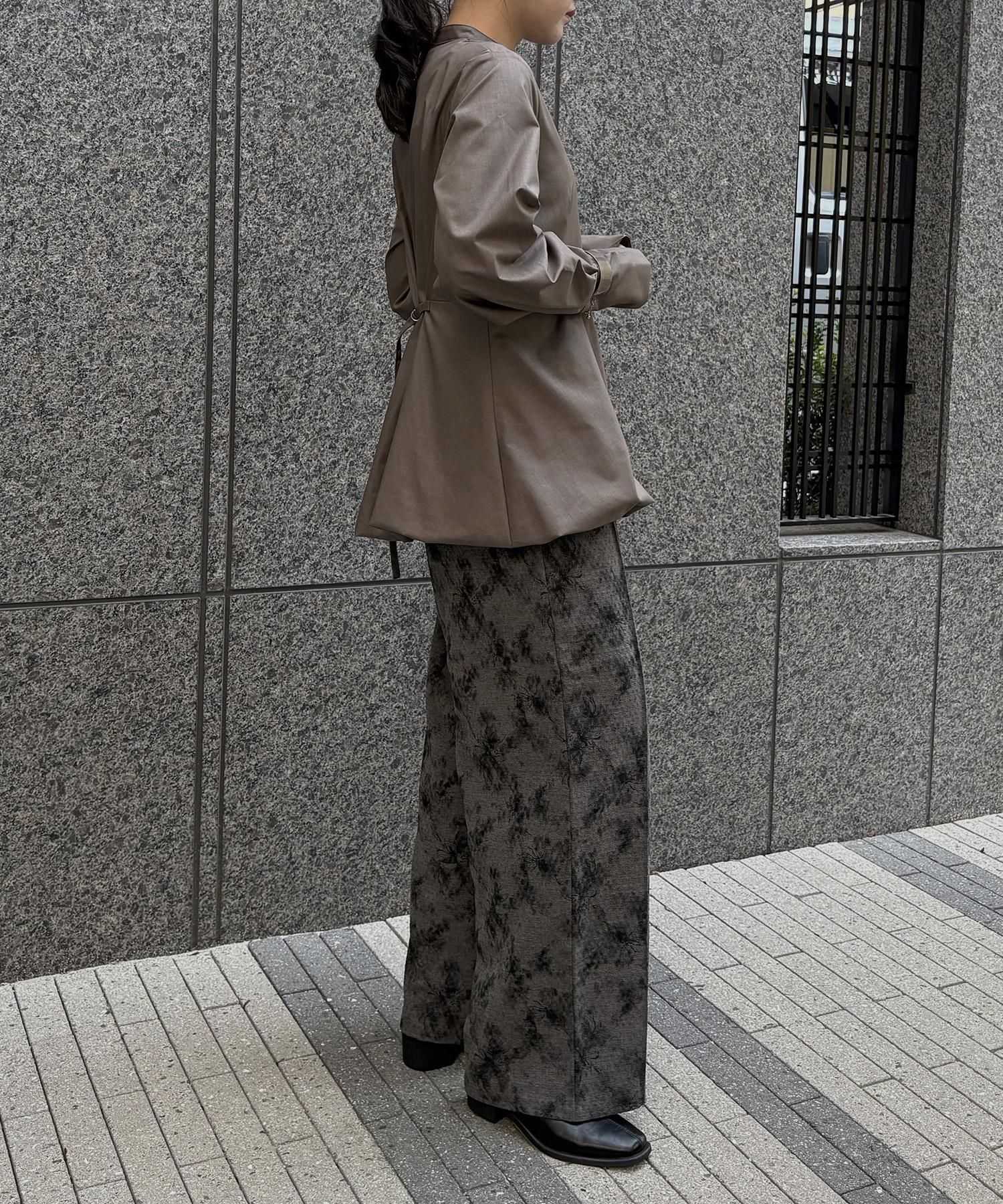 ウエスト切替は前下がりのデザインでスタイルアップを叶え、裾は広がりすぎないバルーンシルエットで大人な印象に仕上げました。