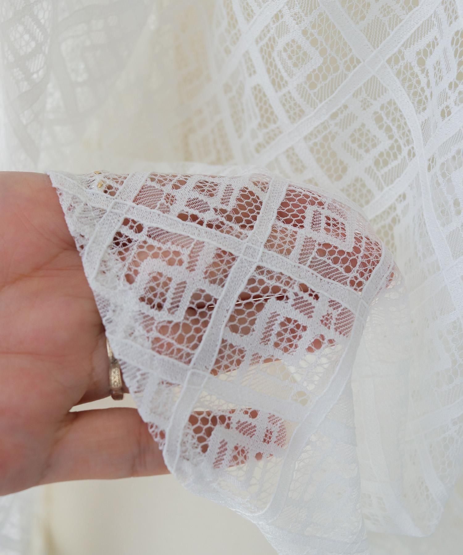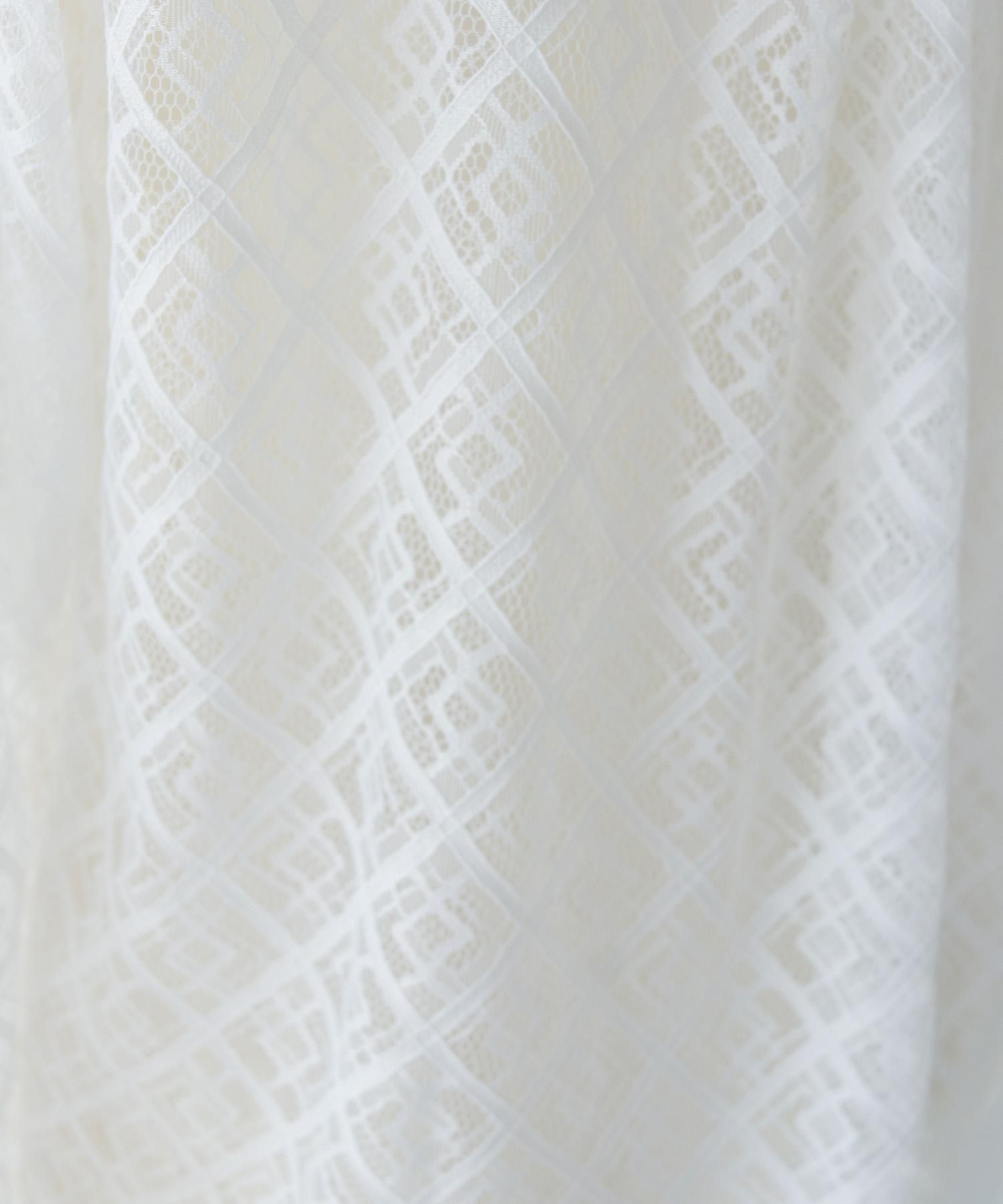 透け感のある幾何学模様のレースが上品で、程よい抜け感を演出。