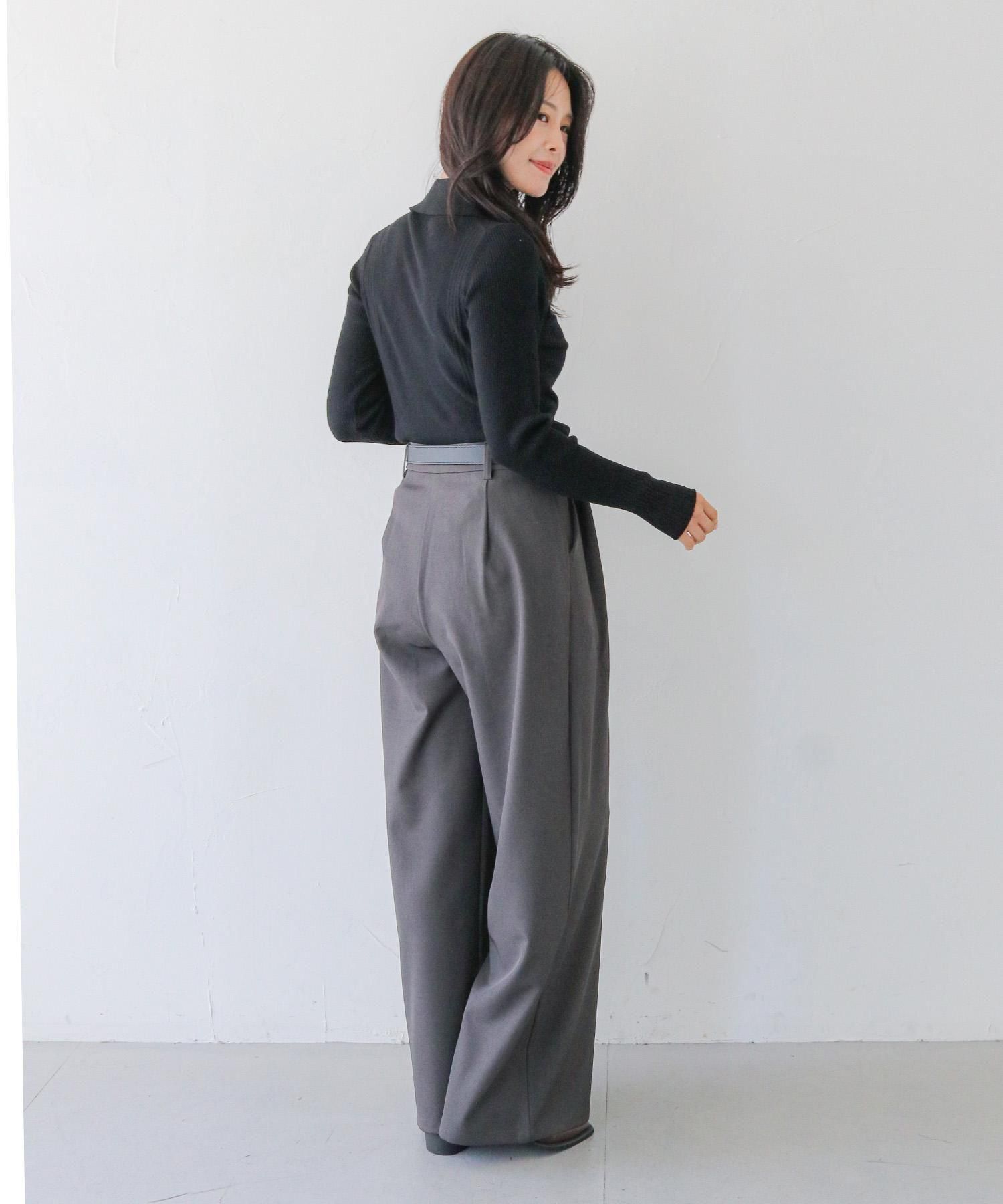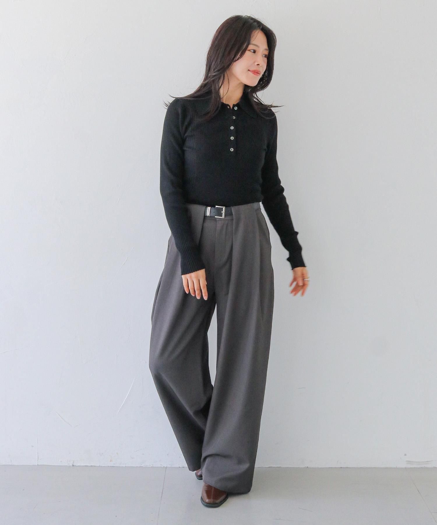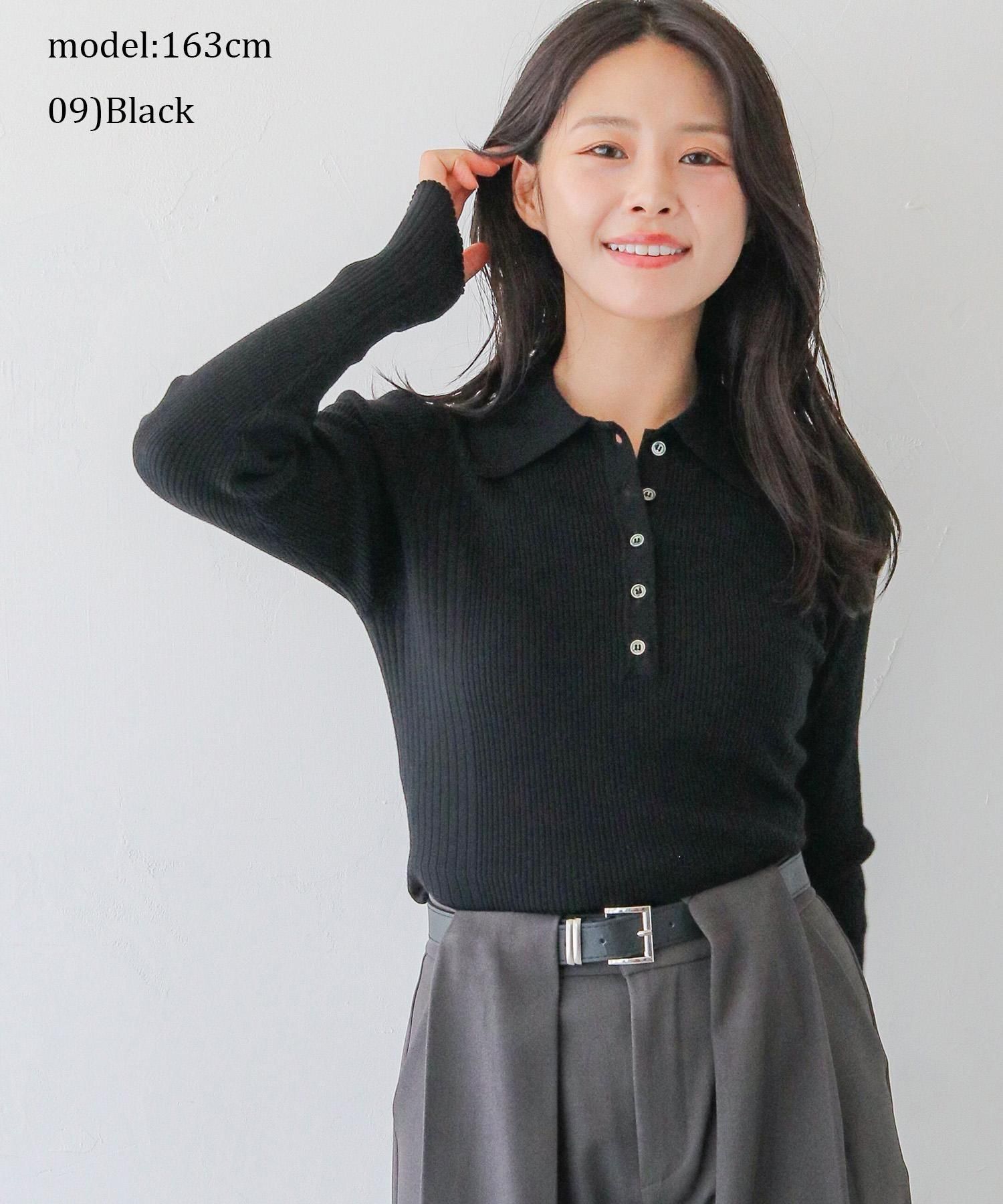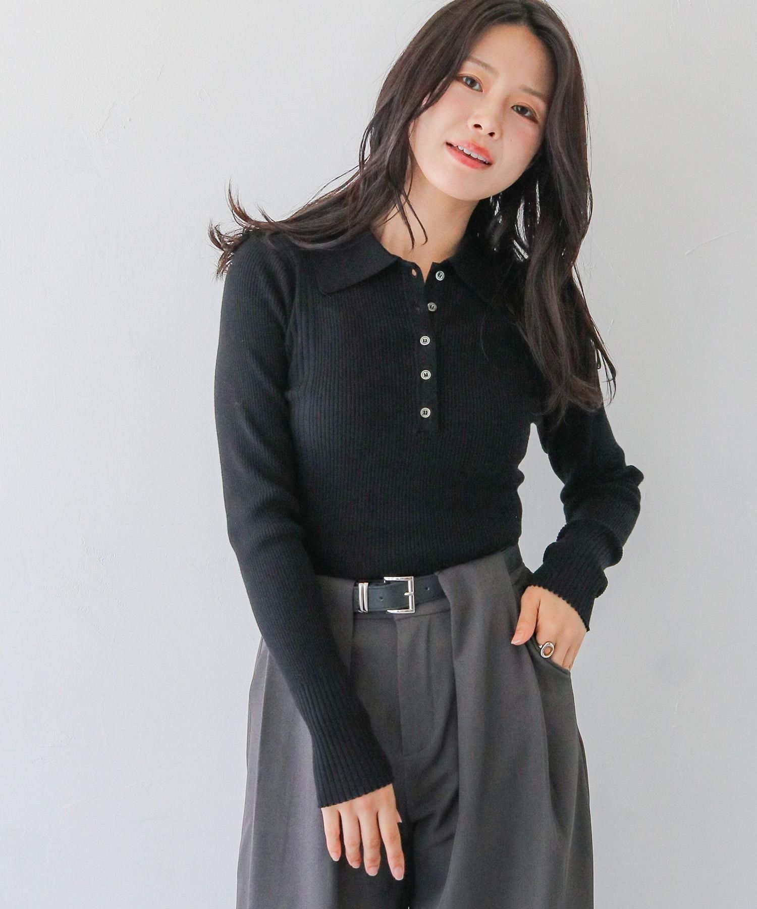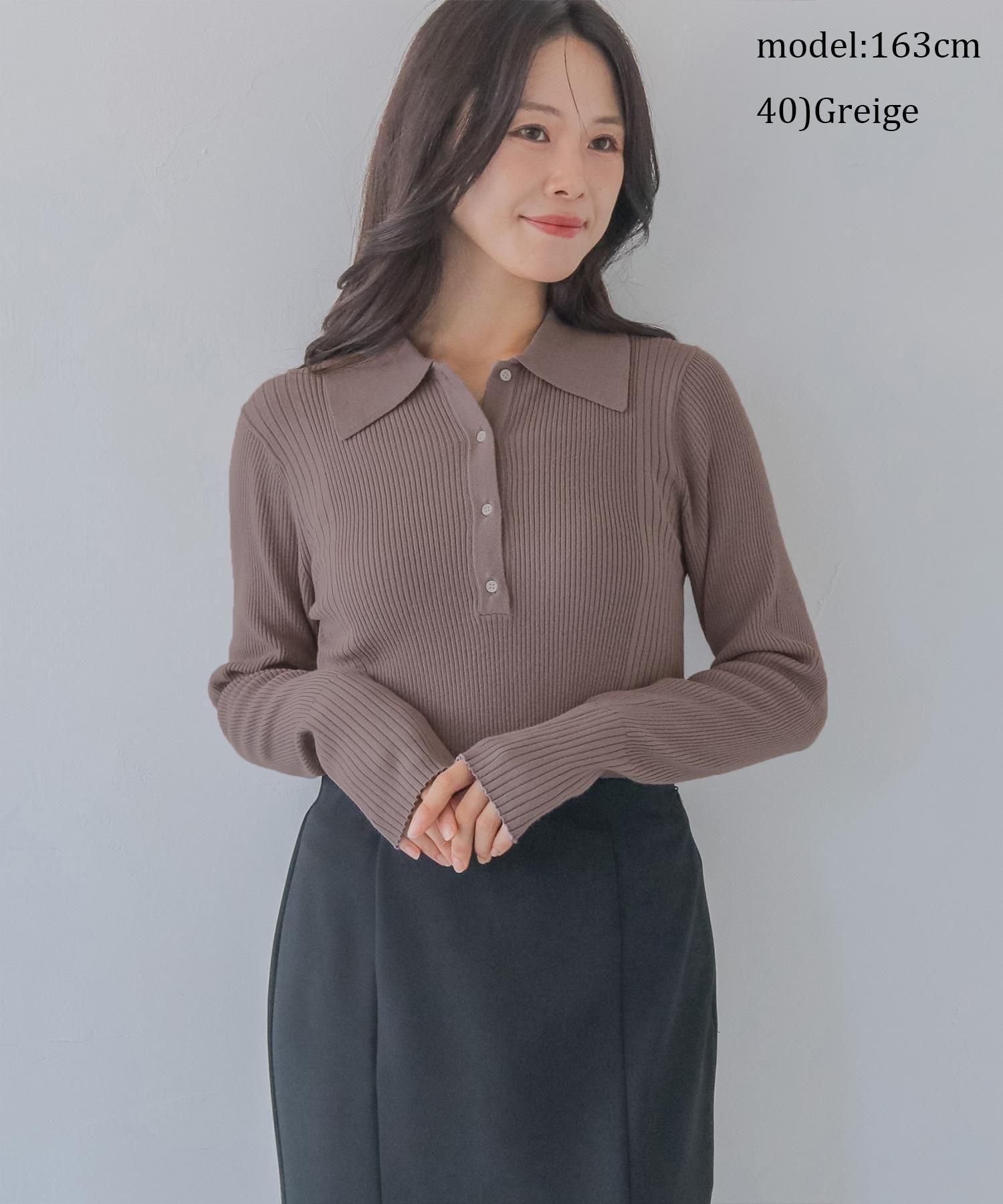 【HER CLOSET】大人のポロニット RIB KNIT POLO TOP/986-14703