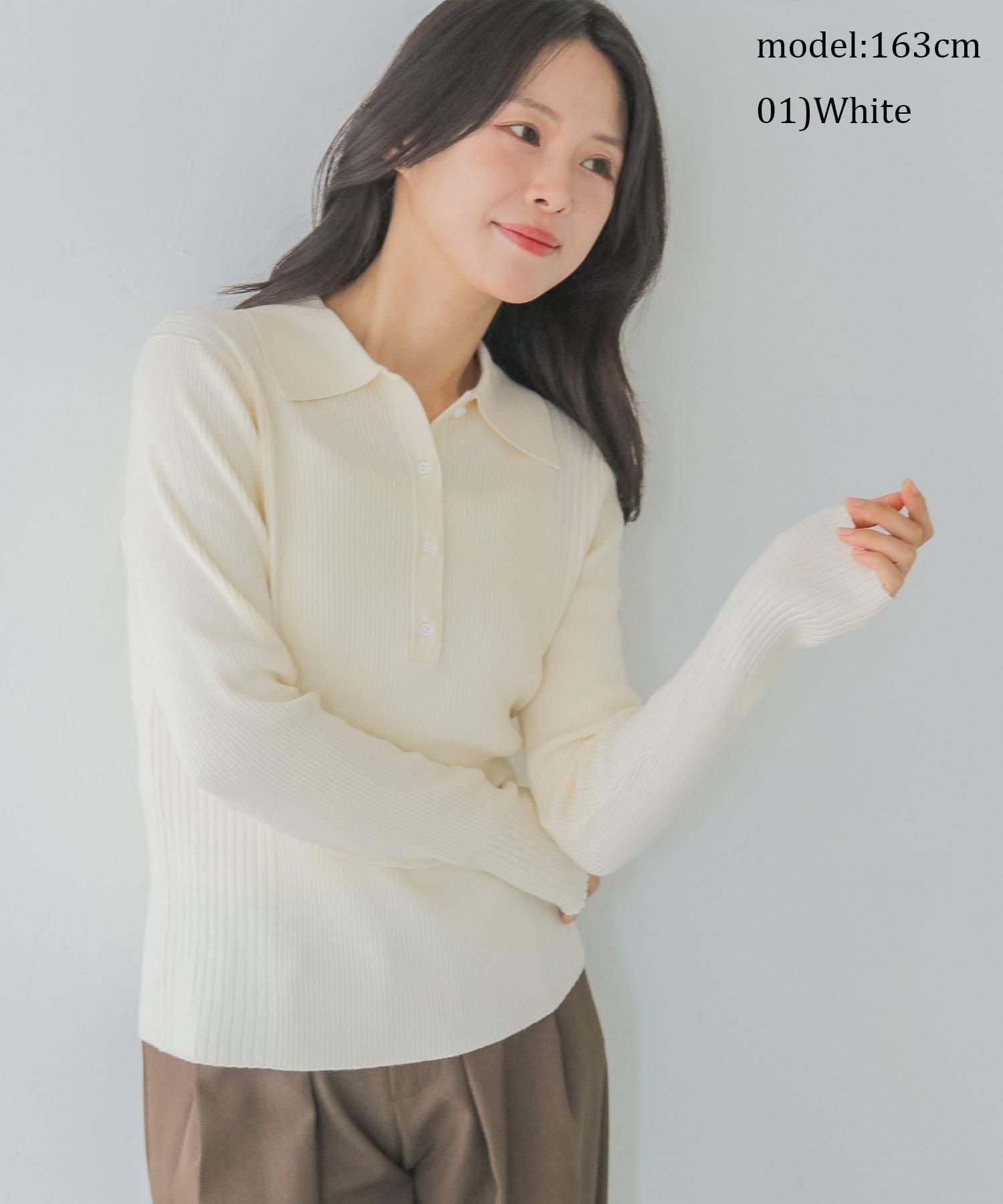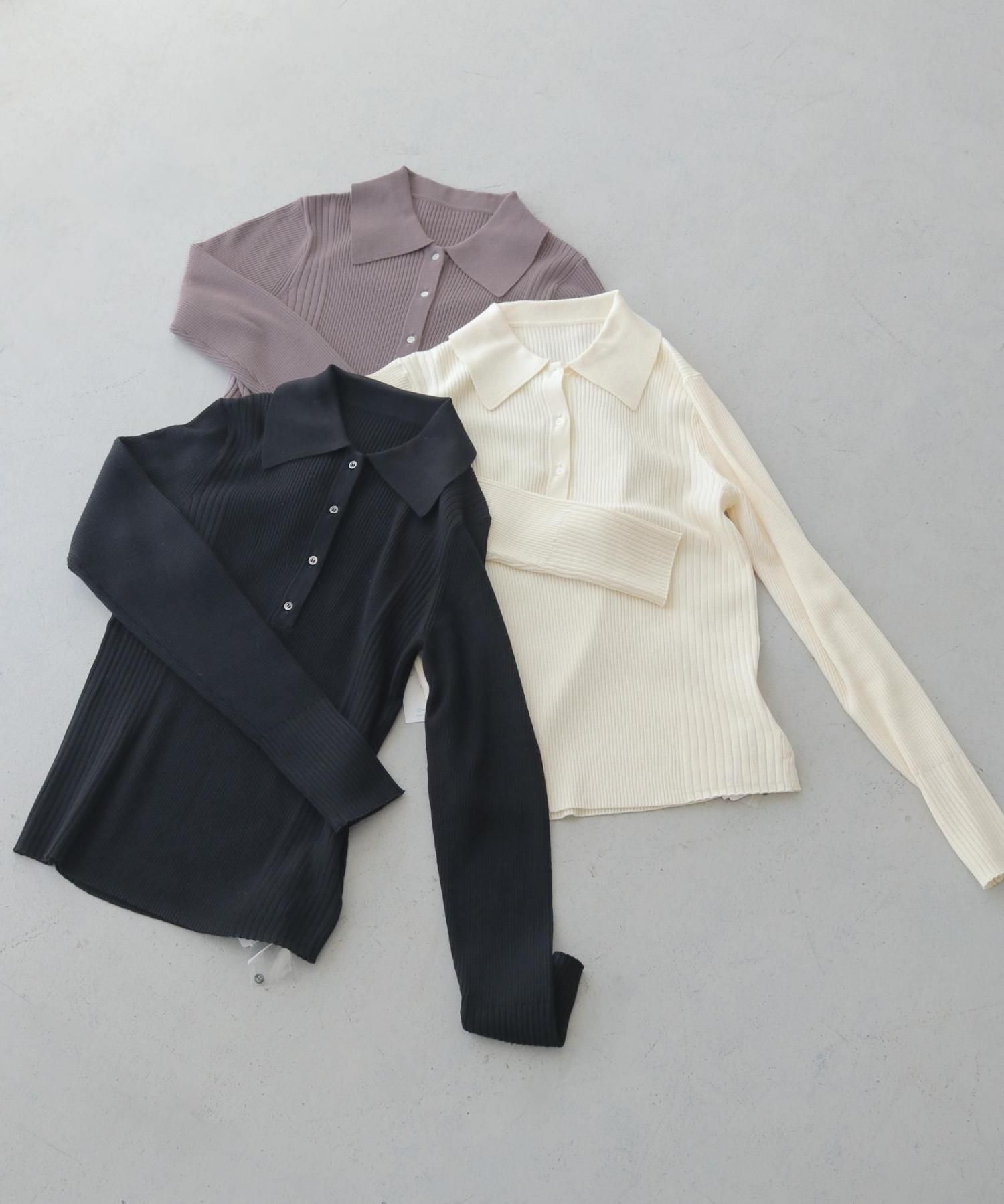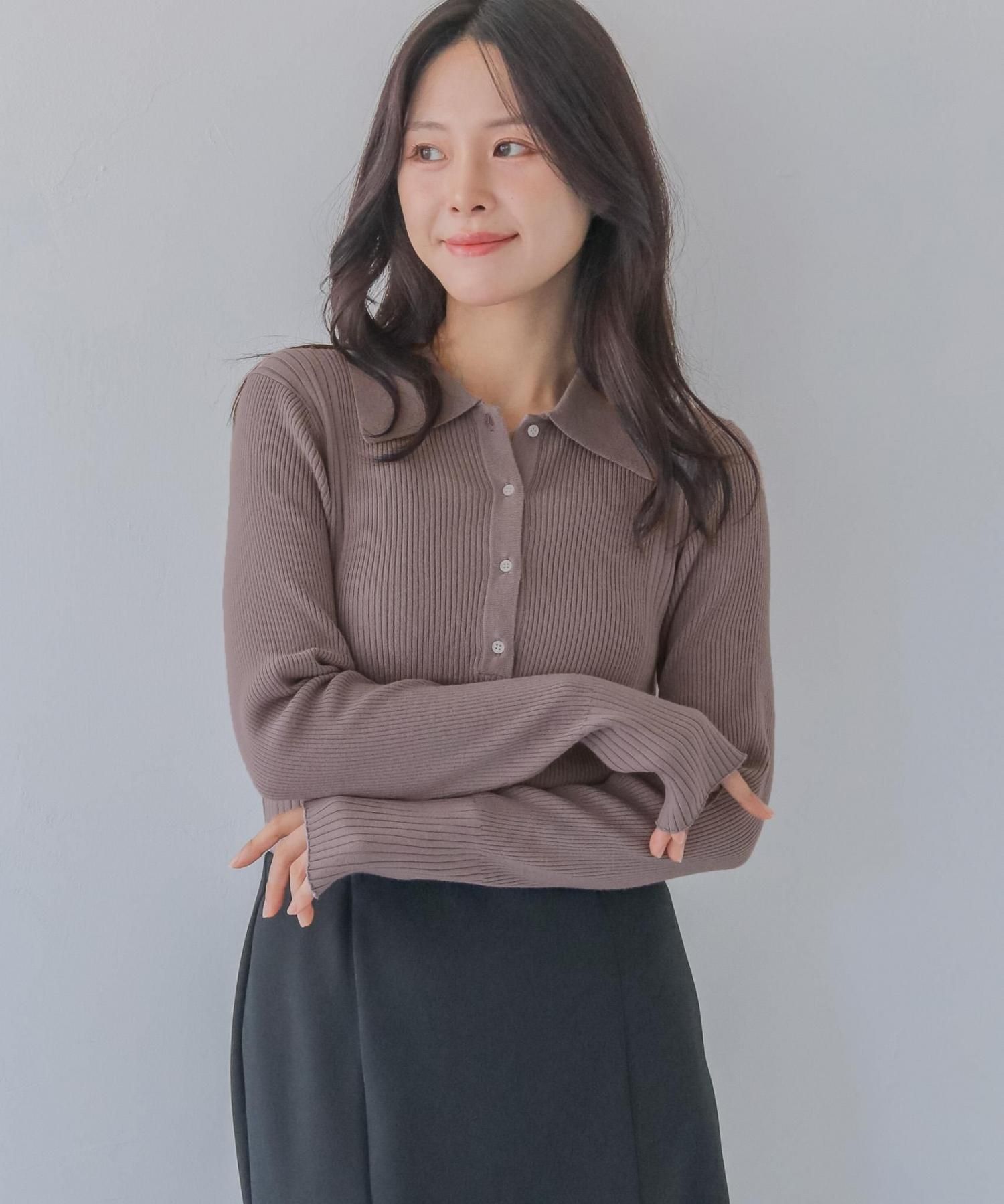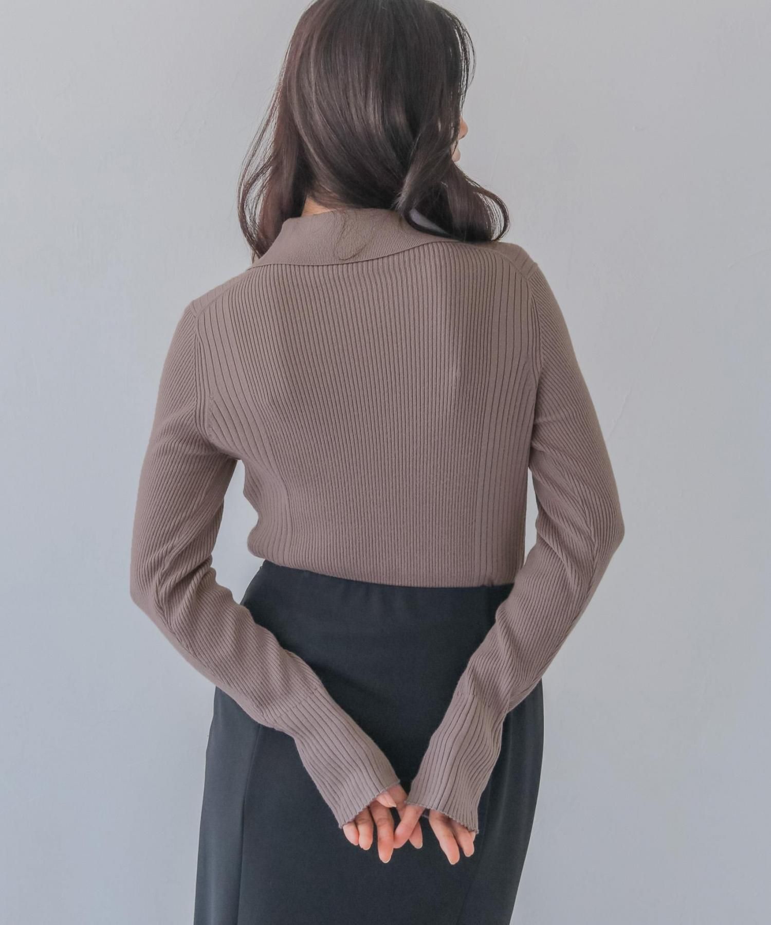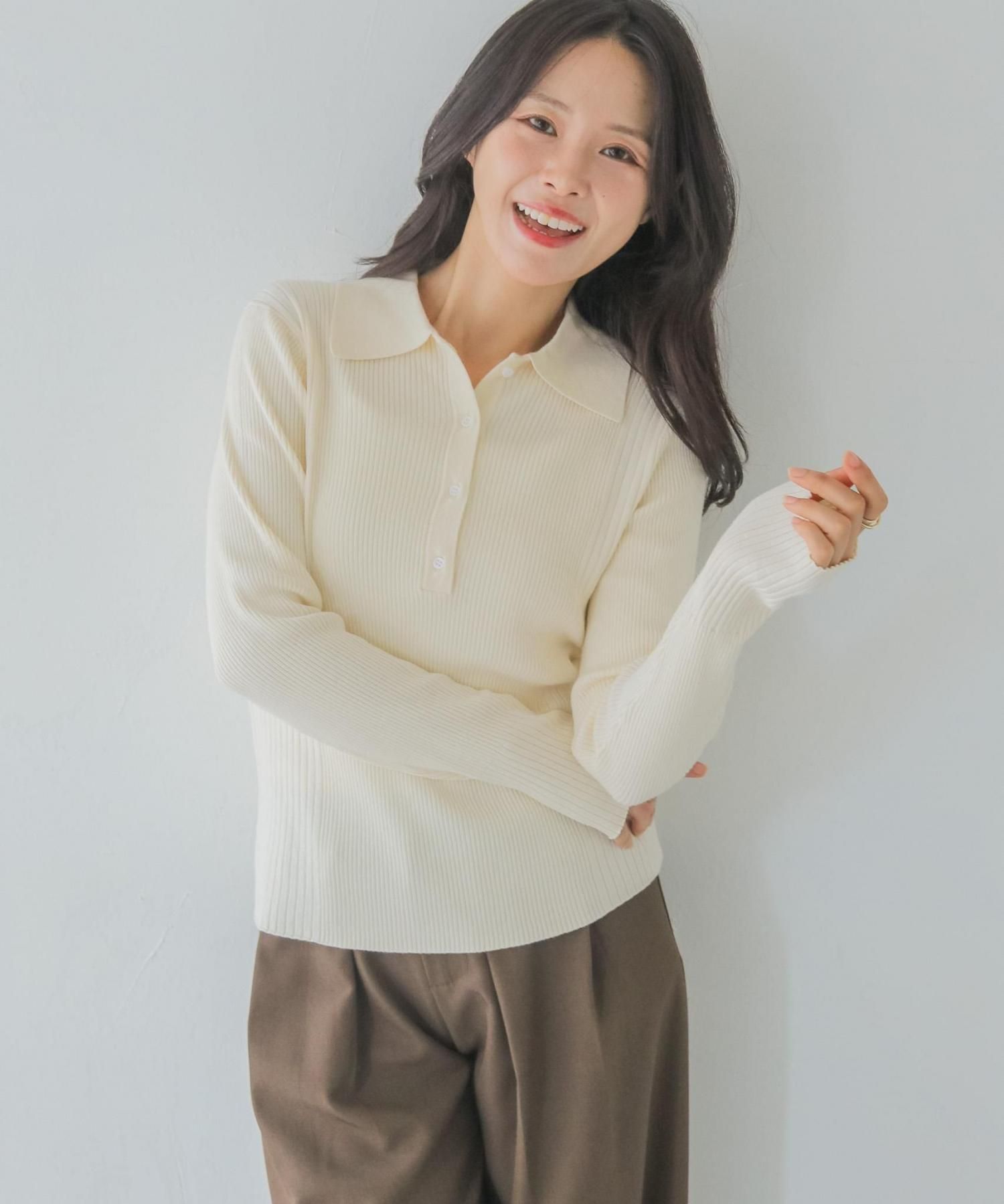 きちんと感と着心地の良さを両立した、リブ編みポロニット。