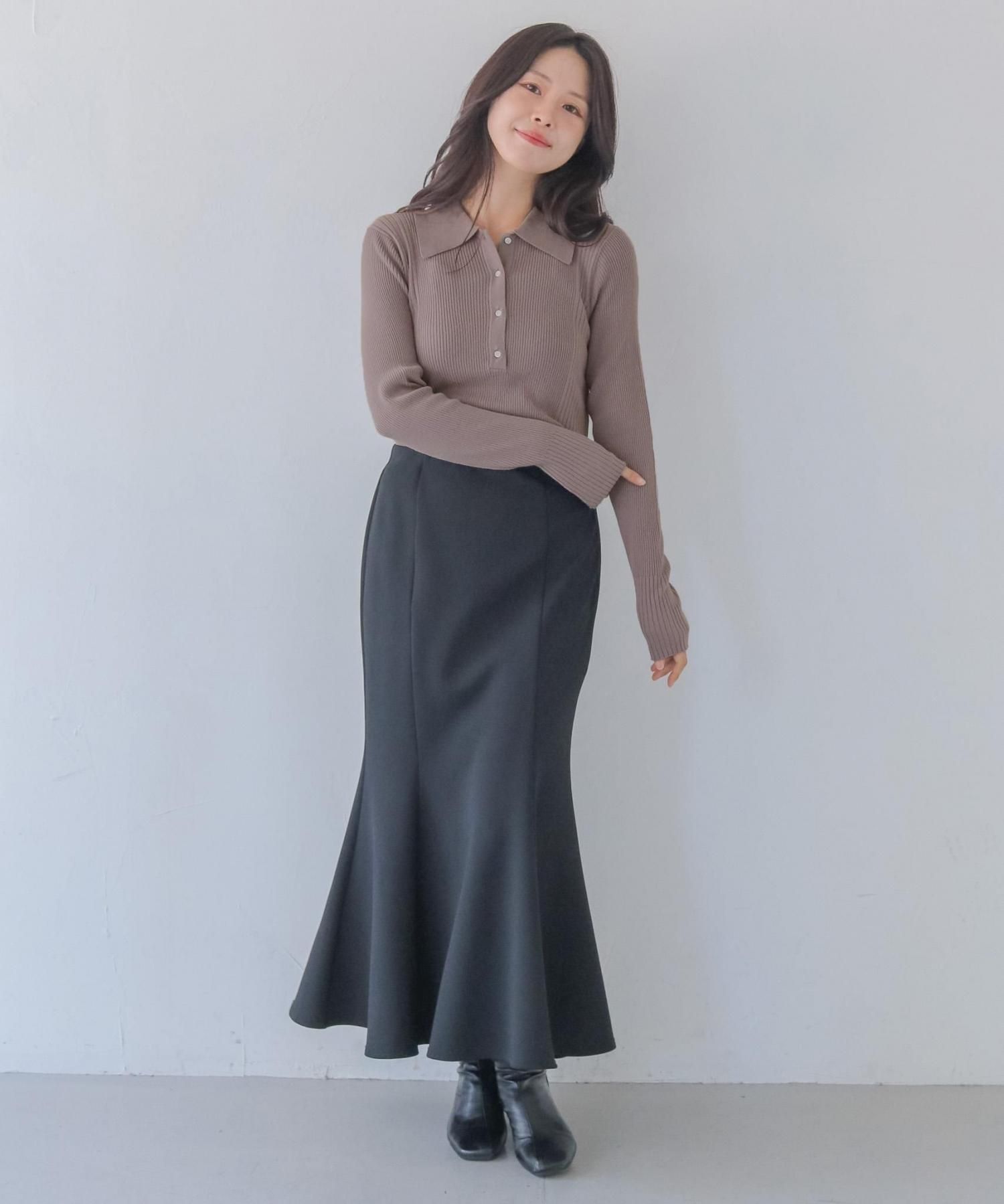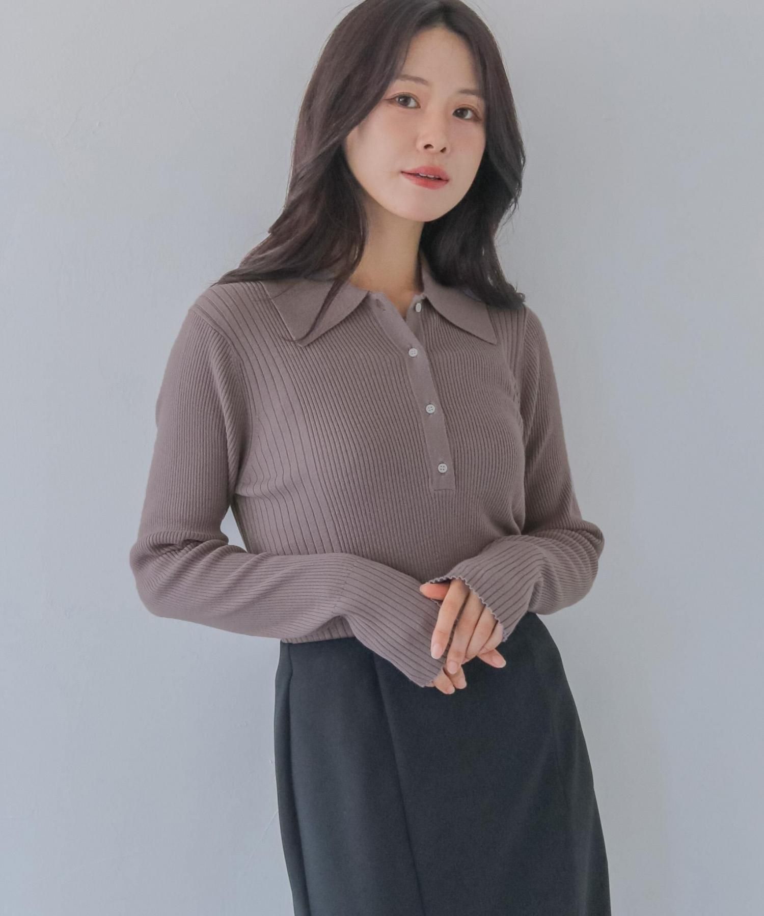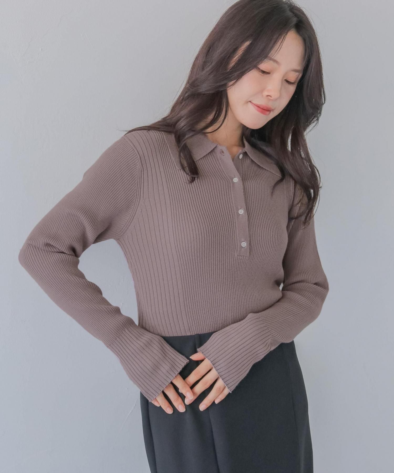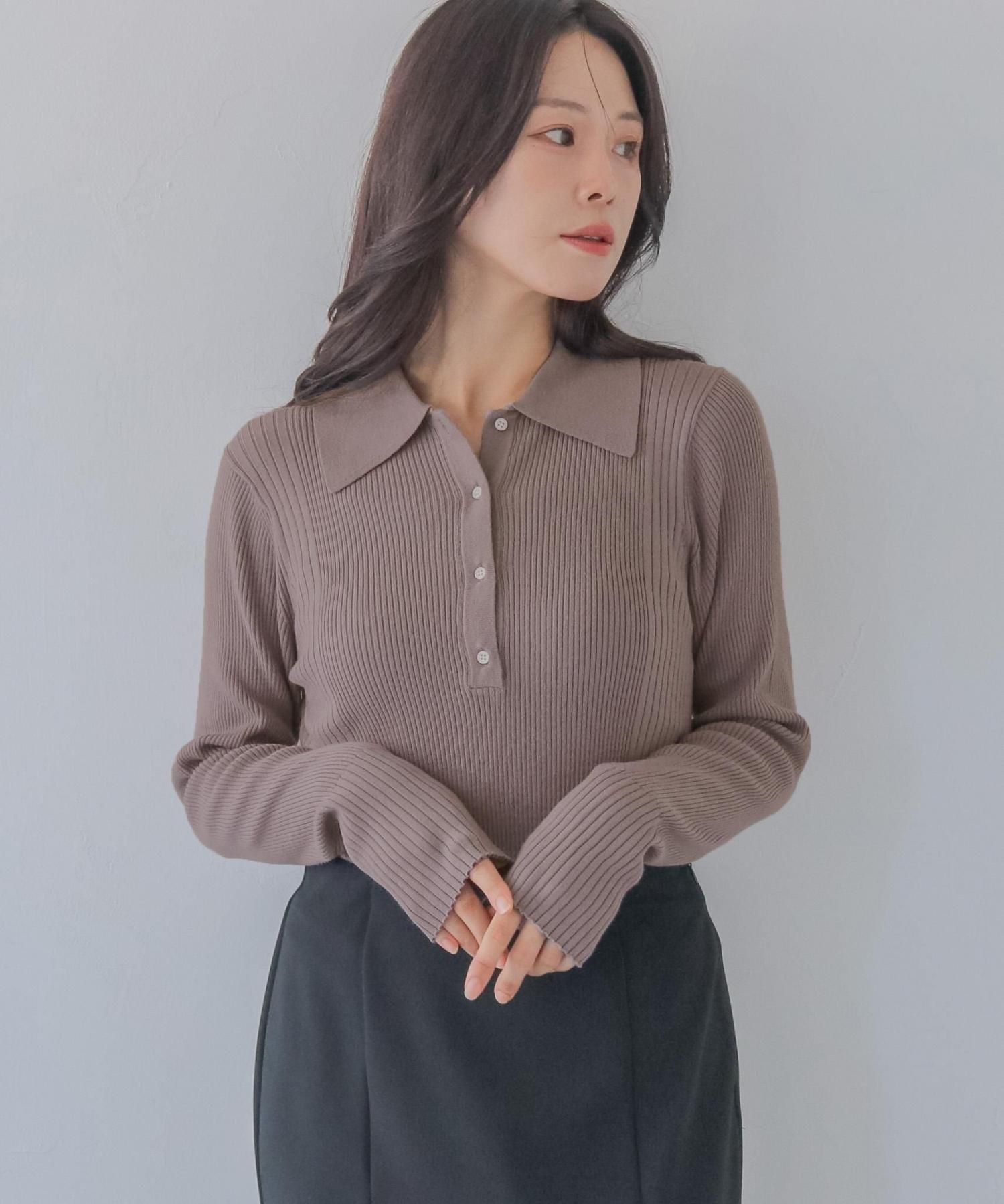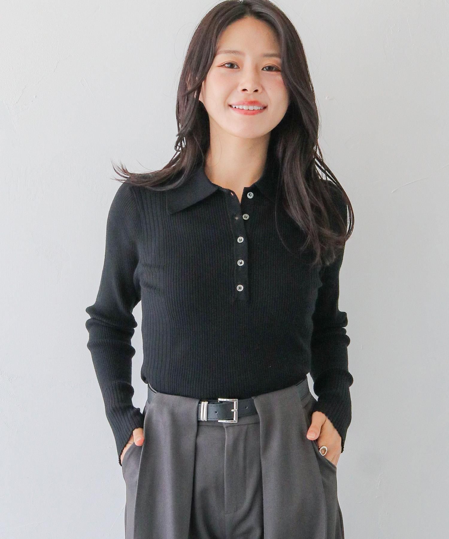 きちんと感と着心地の良さを両立した、リブ編みポロニット。