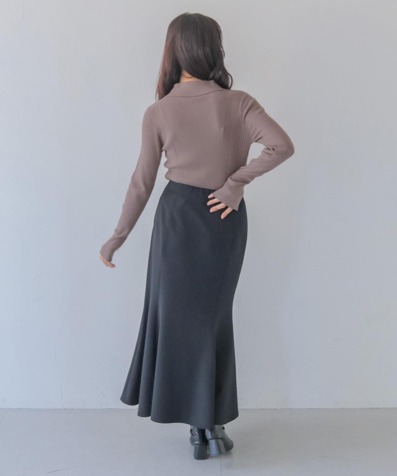・伸縮性のあるリブニットで、長時間のオフィスワークも快適な着心地