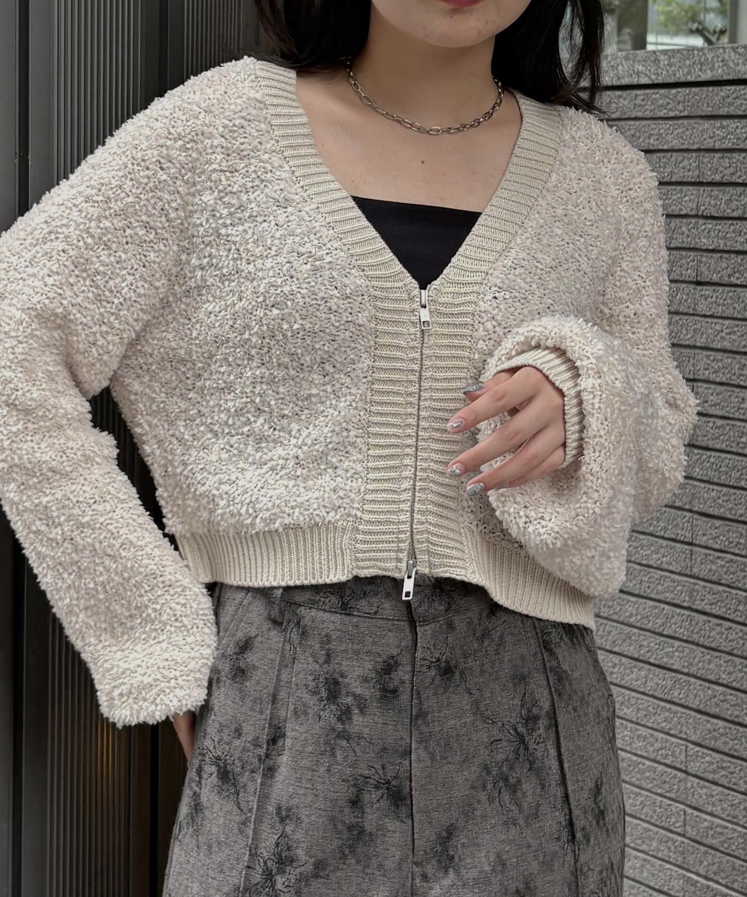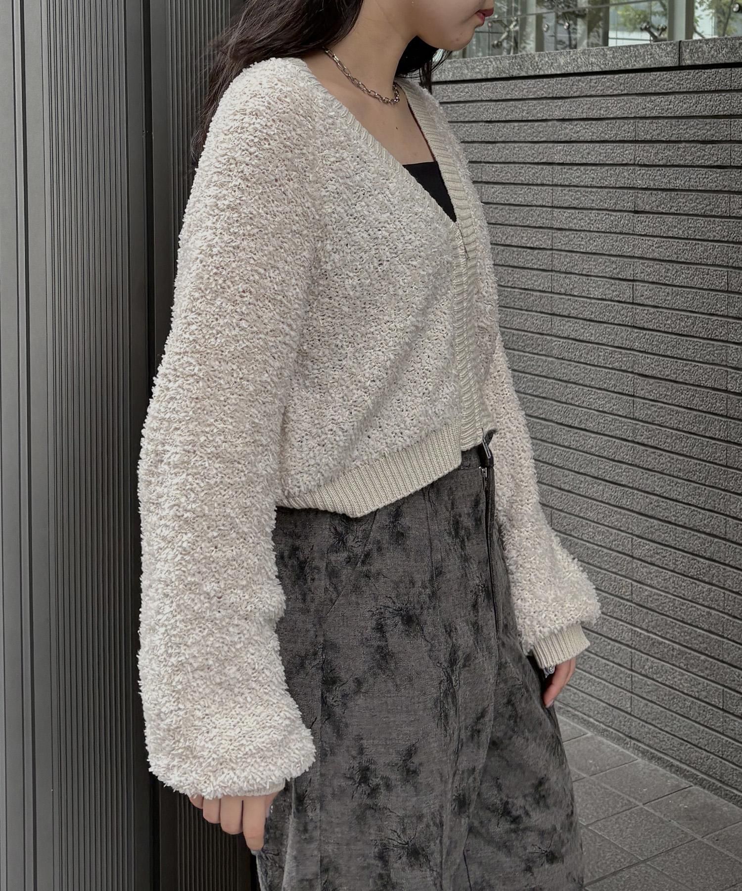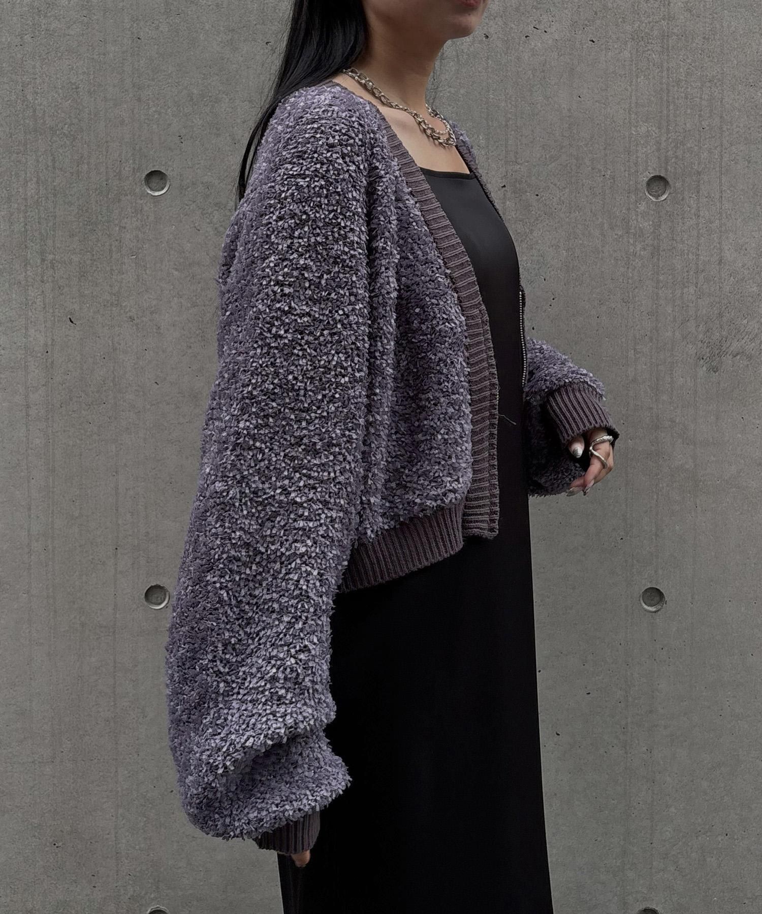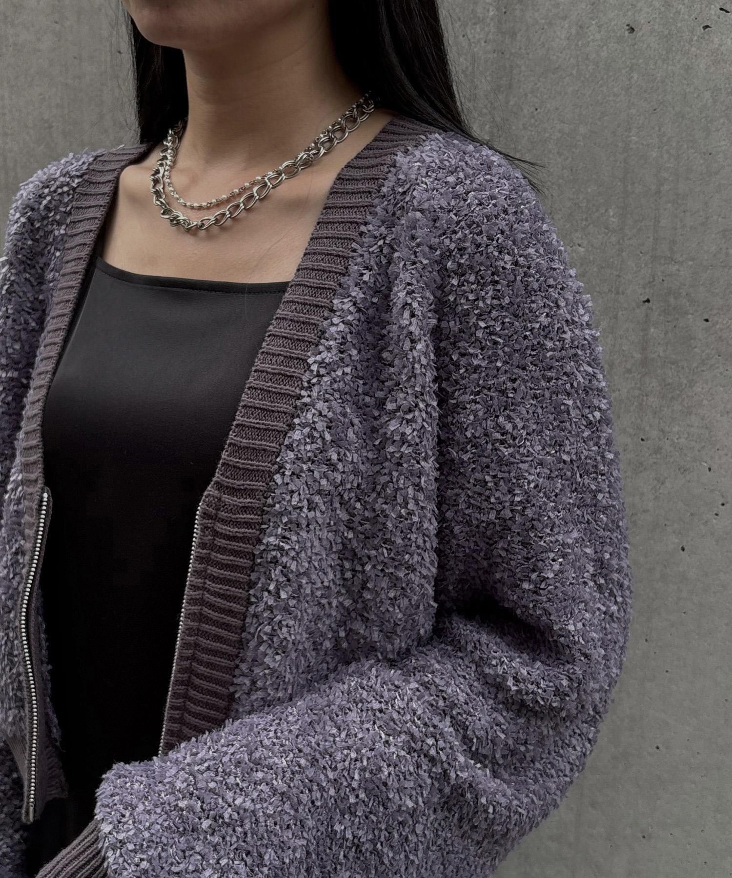 秋冬らしいボリューム感が可愛い、テープヤーン素材を使用したカーディガン。