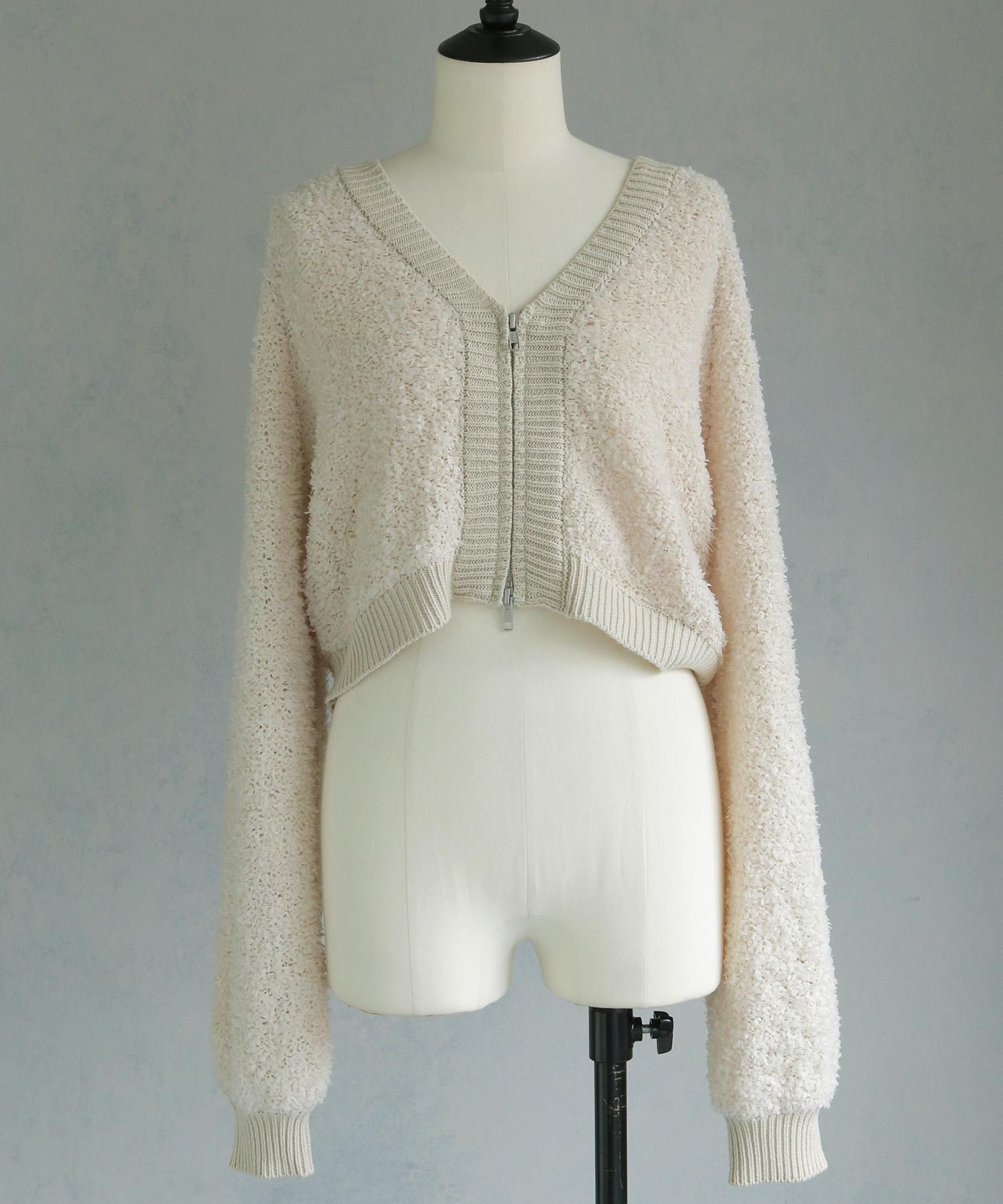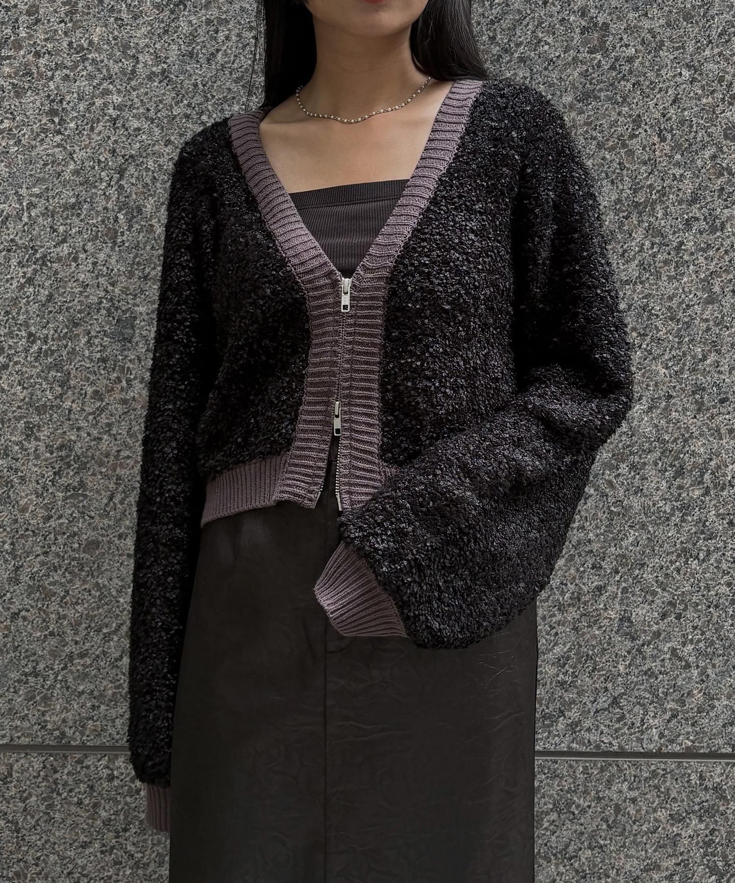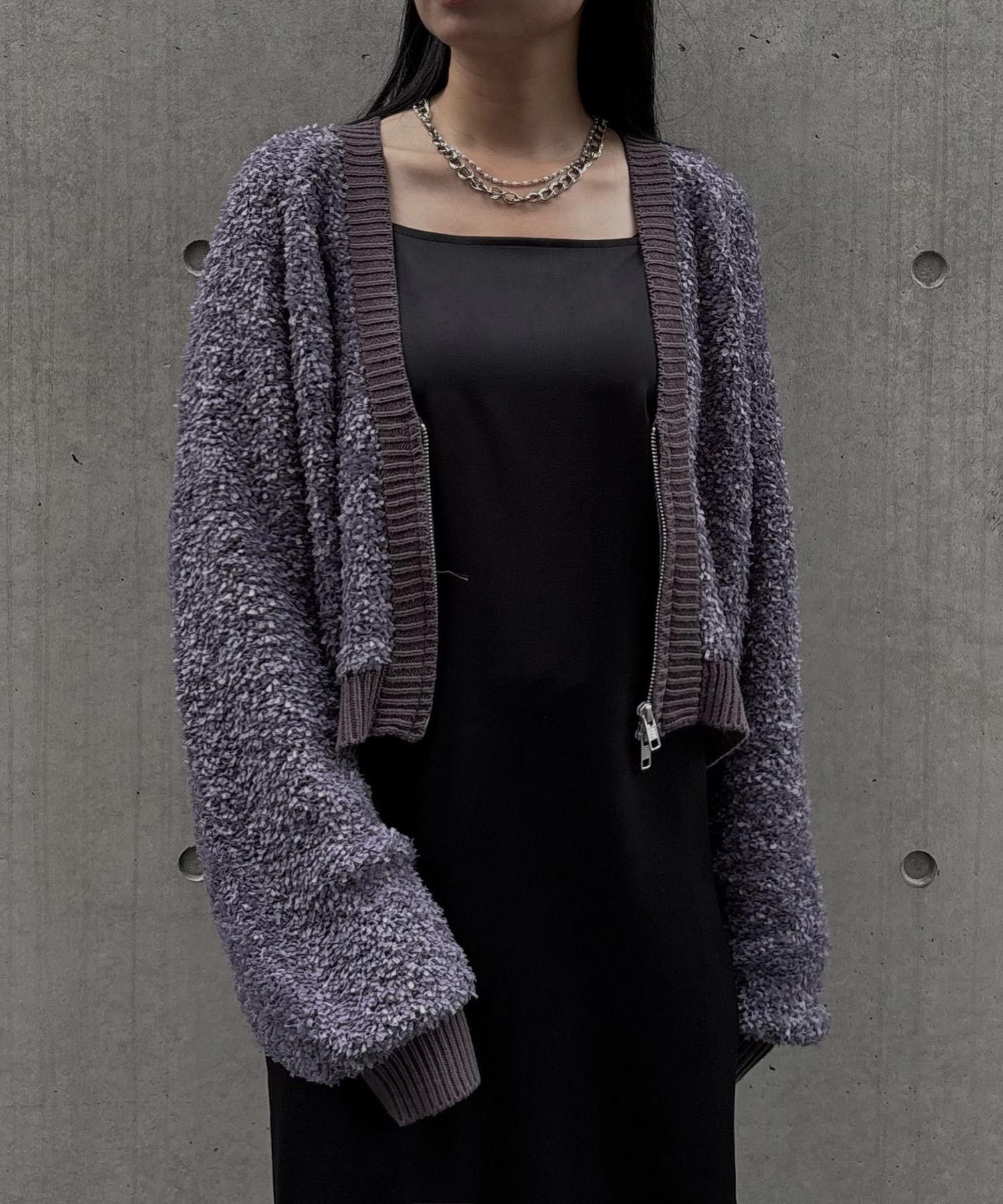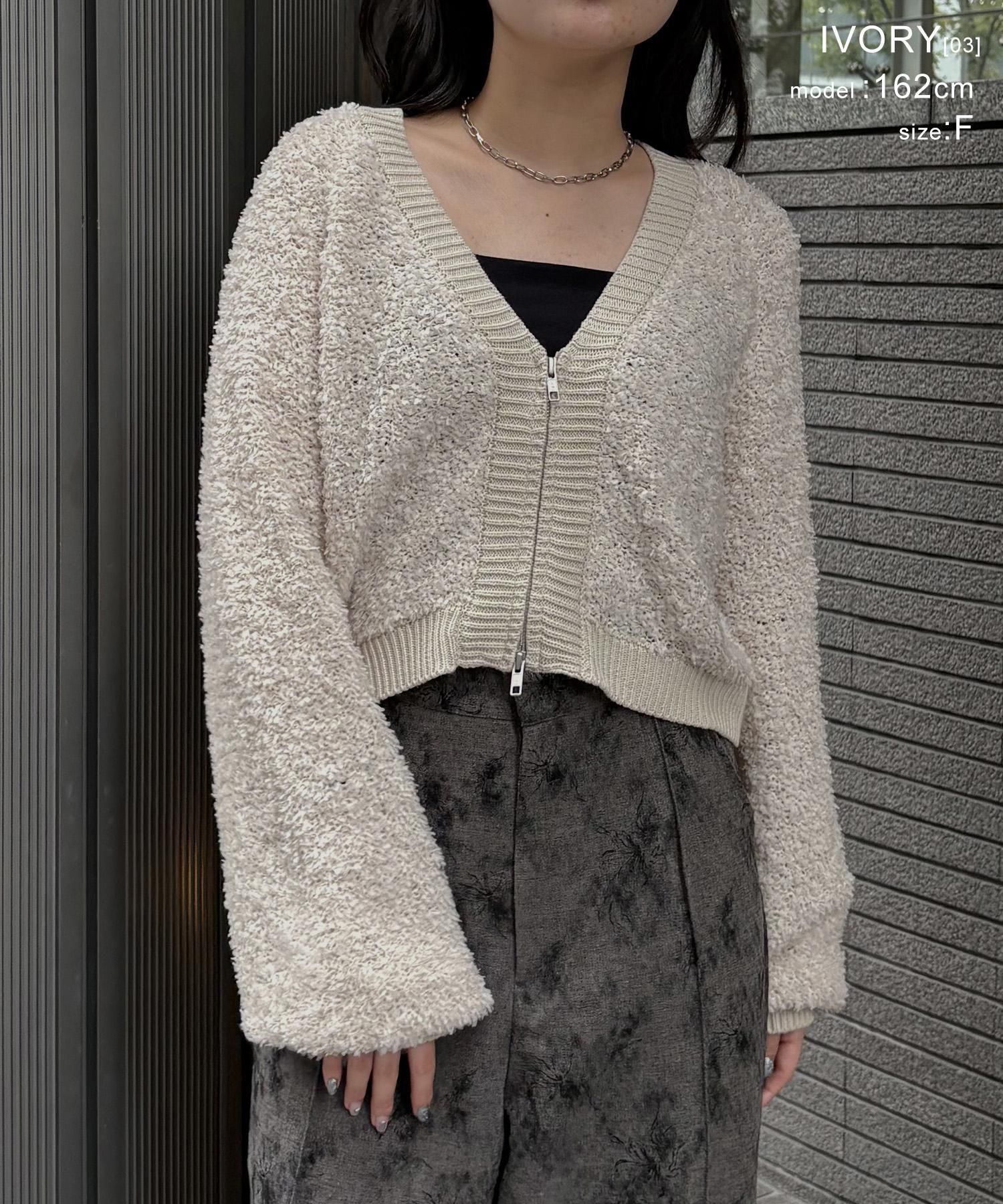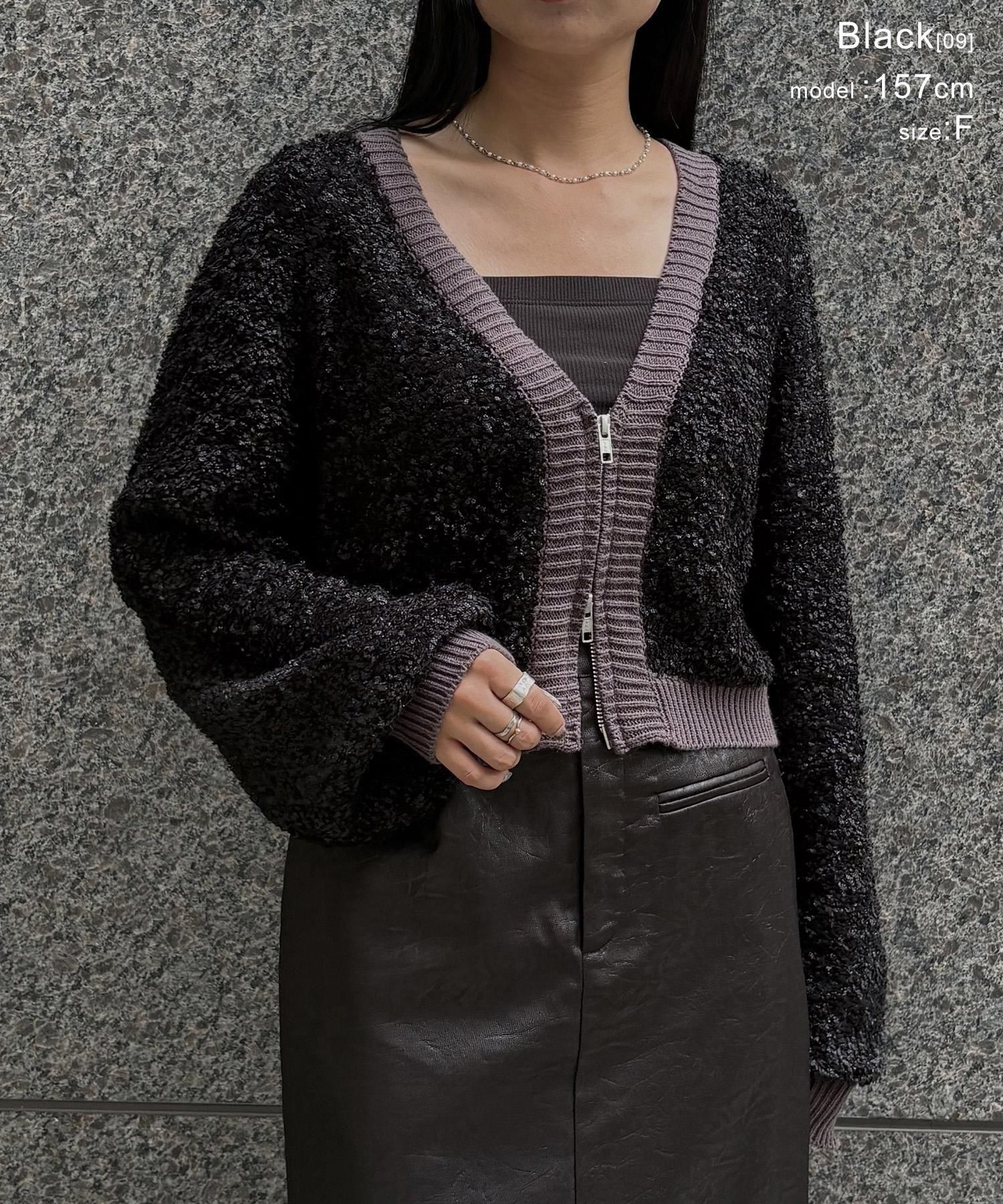秋冬らしいボリューム感が可愛い、テープヤーン素材を使用したカーディガン。