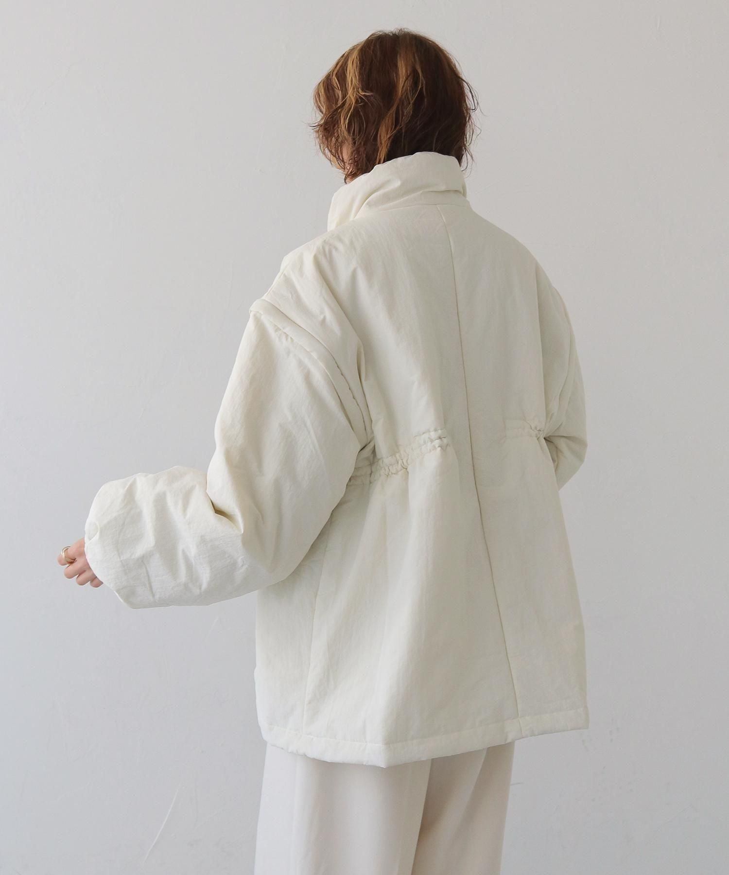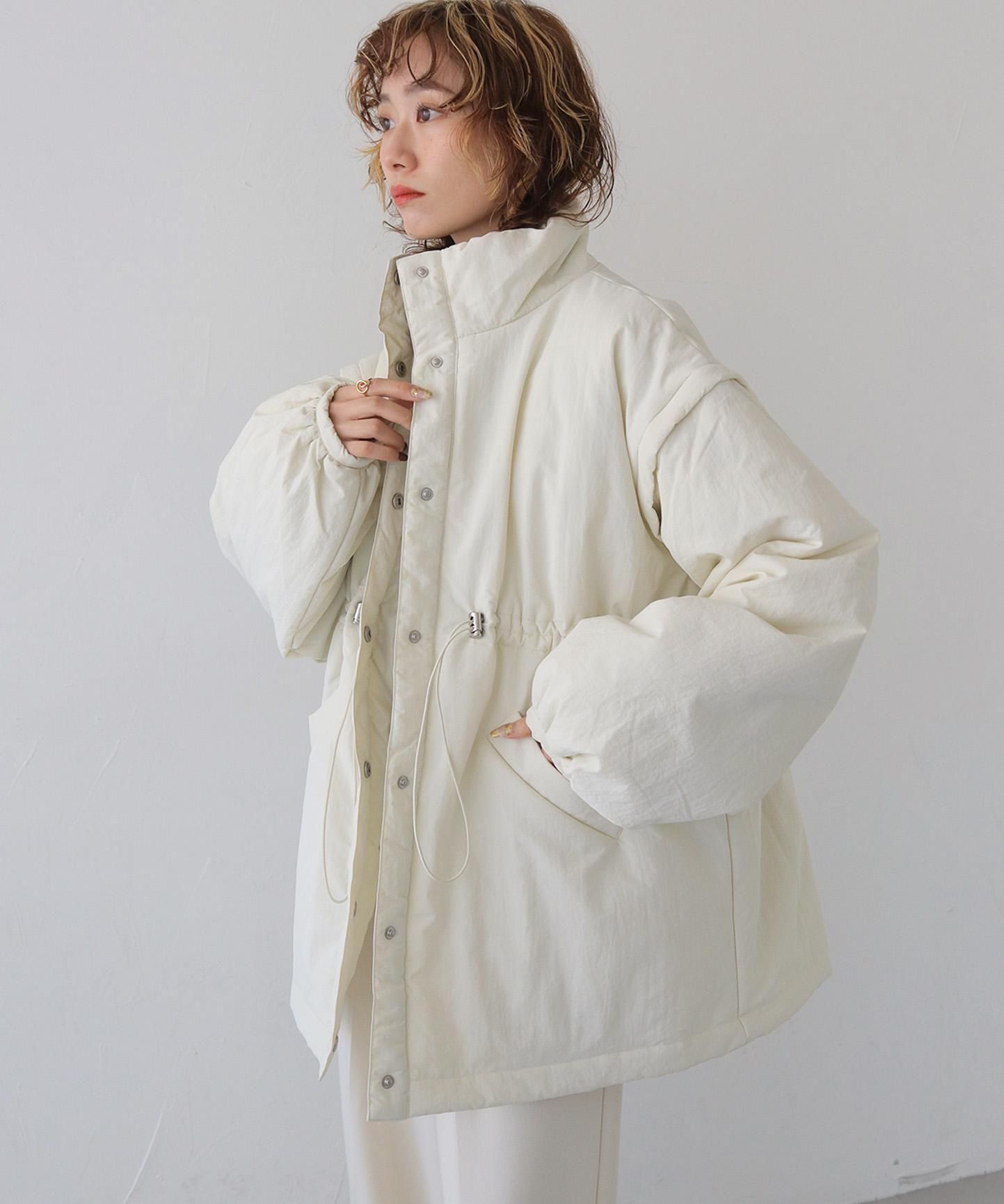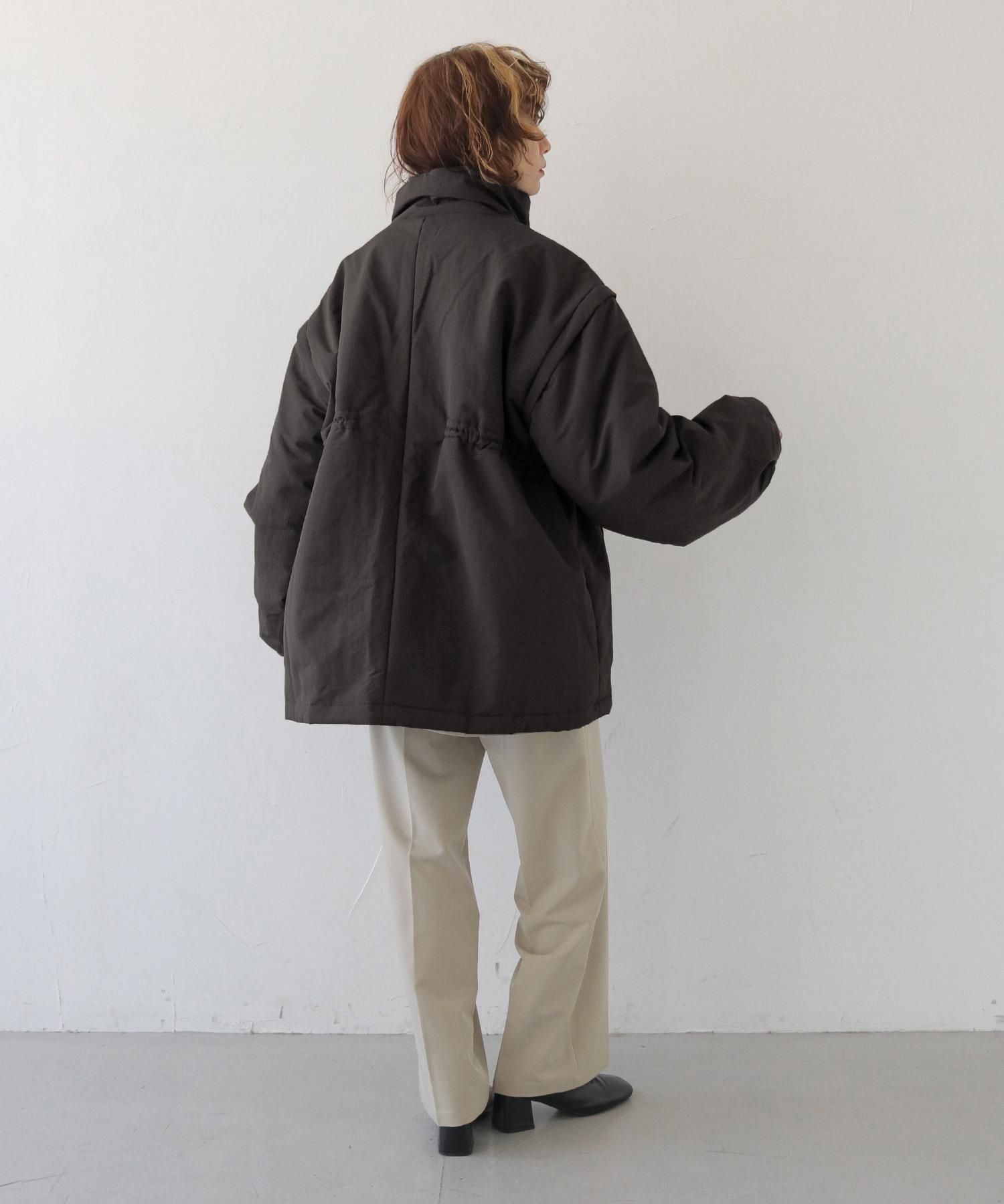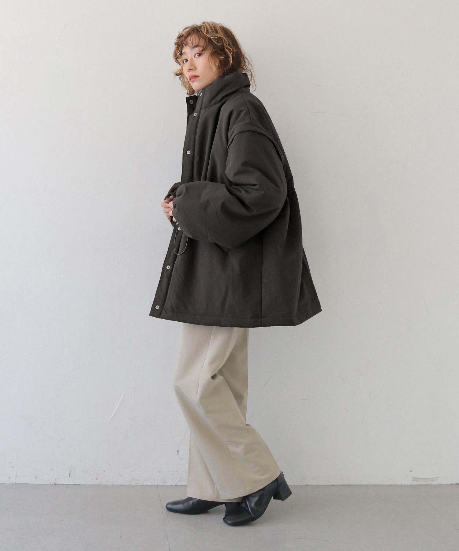 着膨れしやすい中綿アウターもすっきりとしたバランスで着用できるのが魅力。