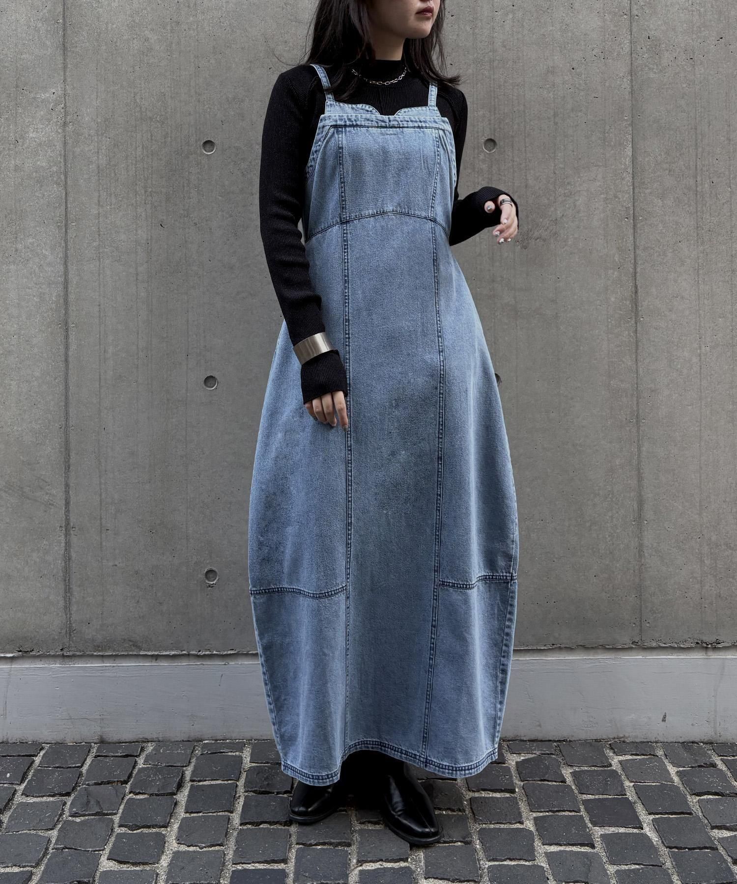 コクーンシルエットが映えるデニムワンピース