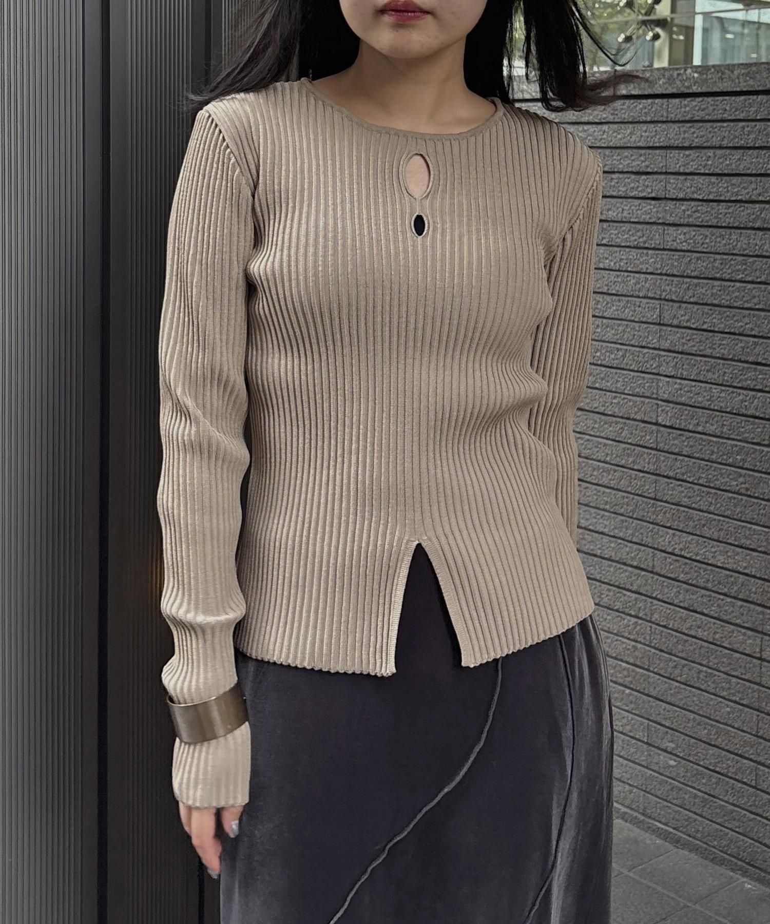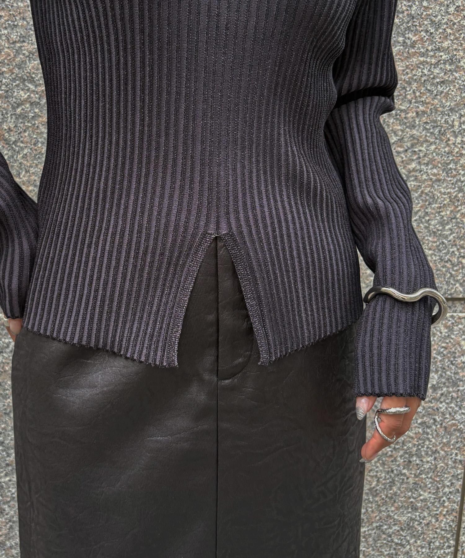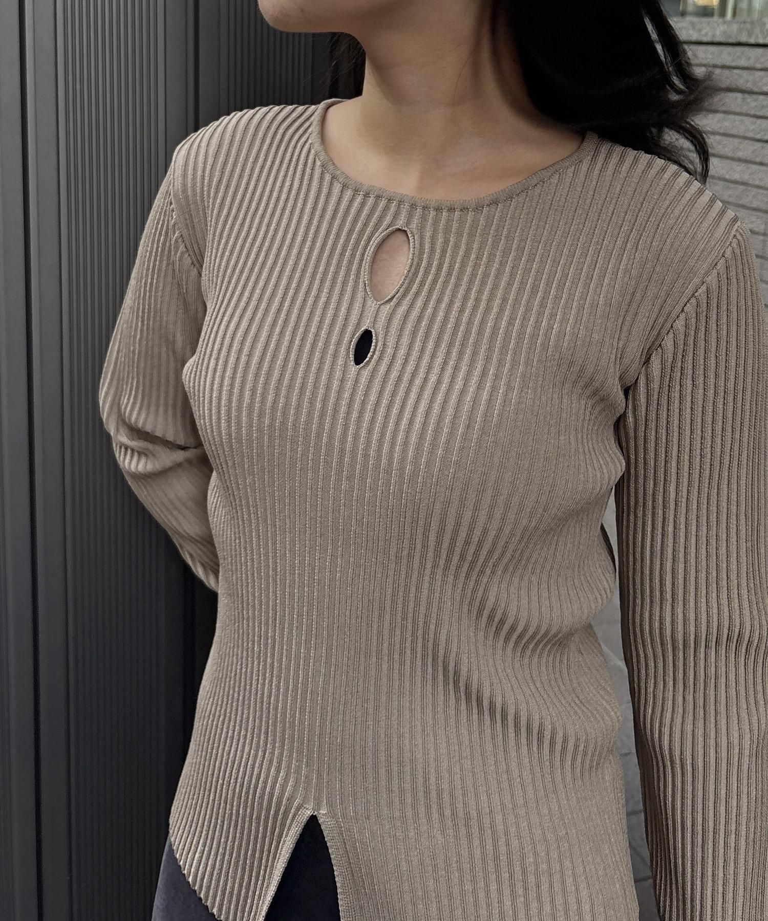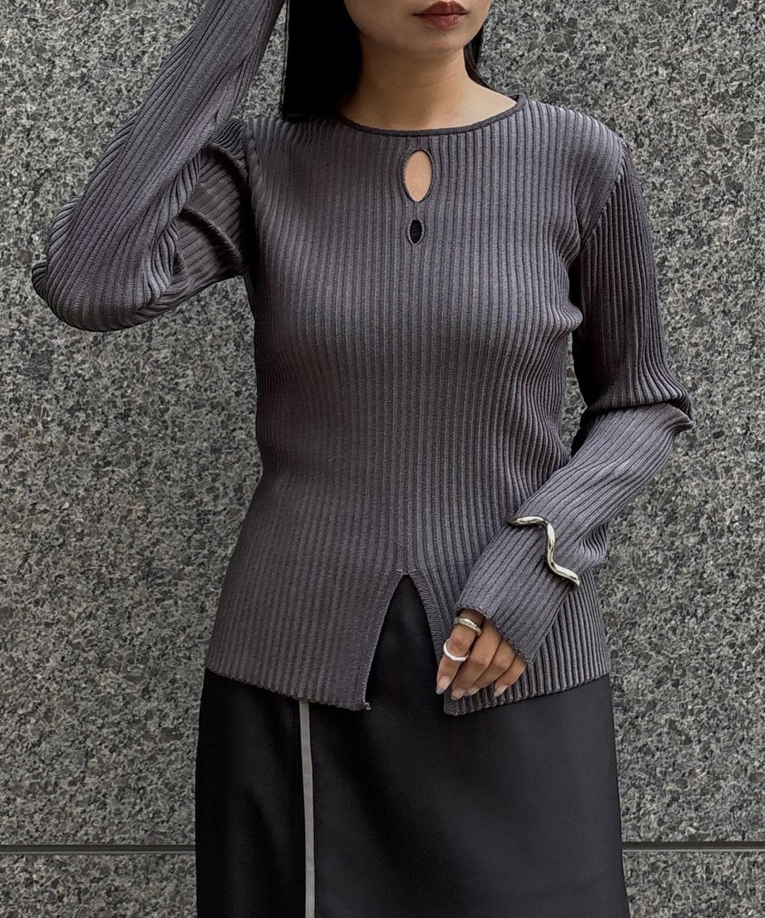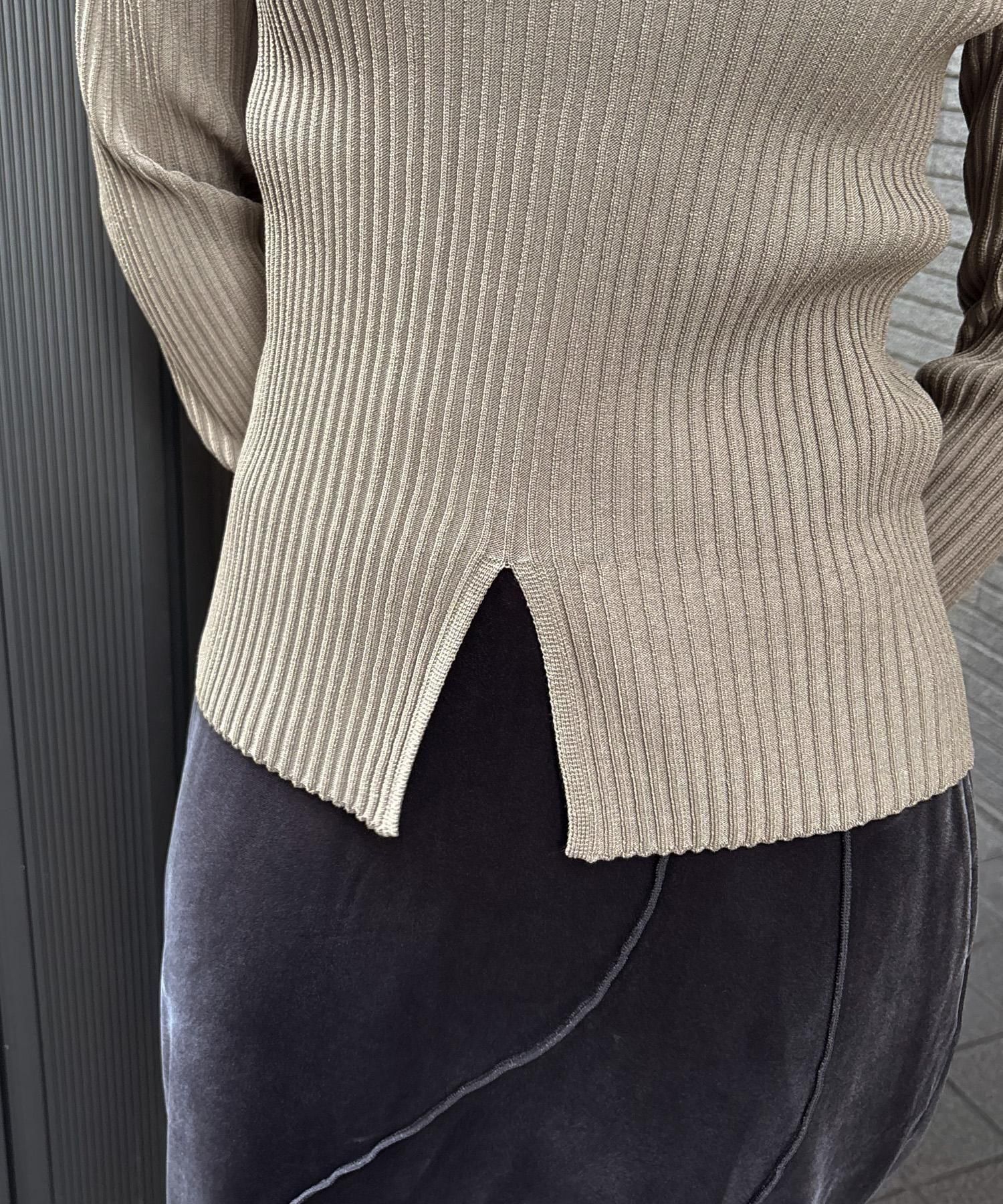 奥行き感のあるリブがポイントのスリットニット