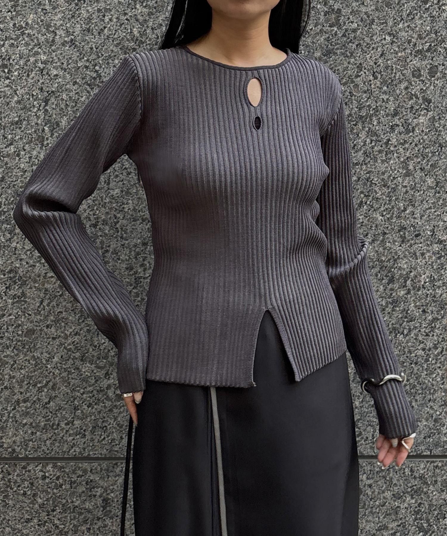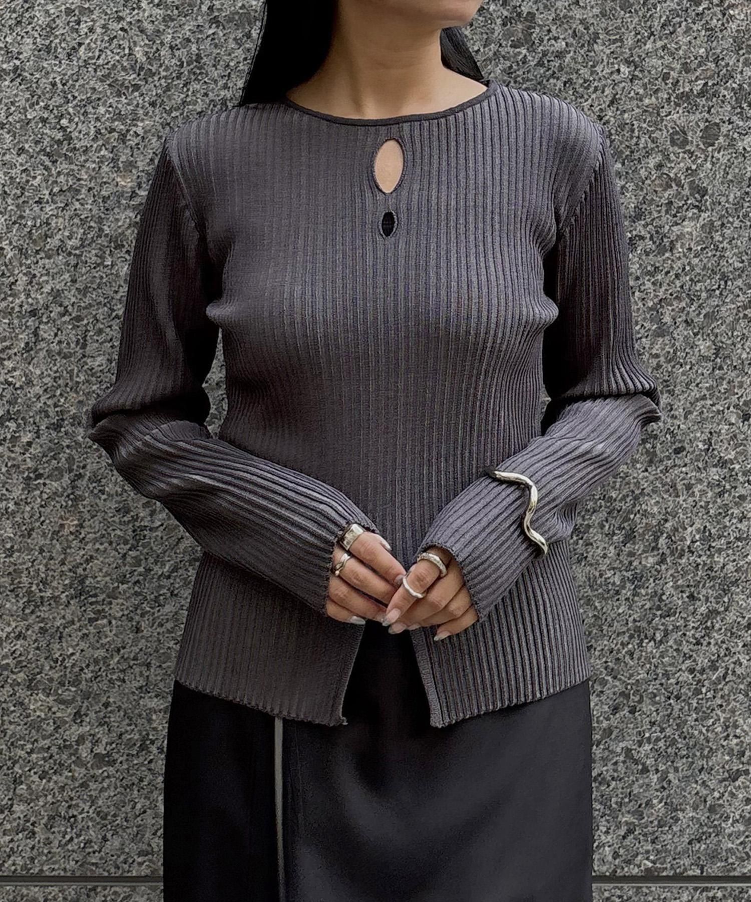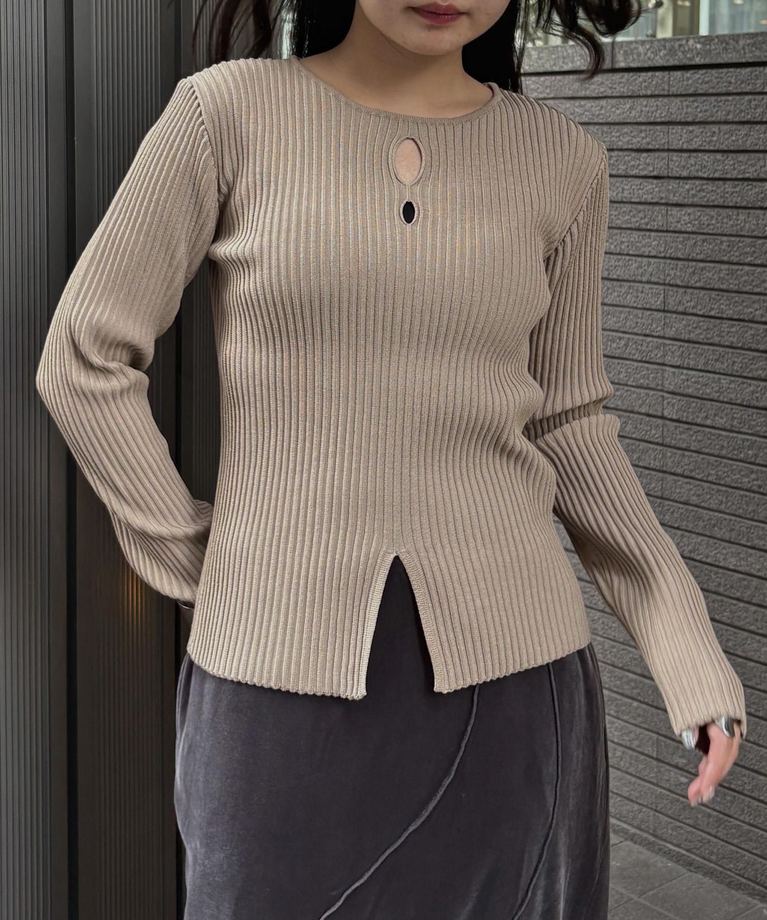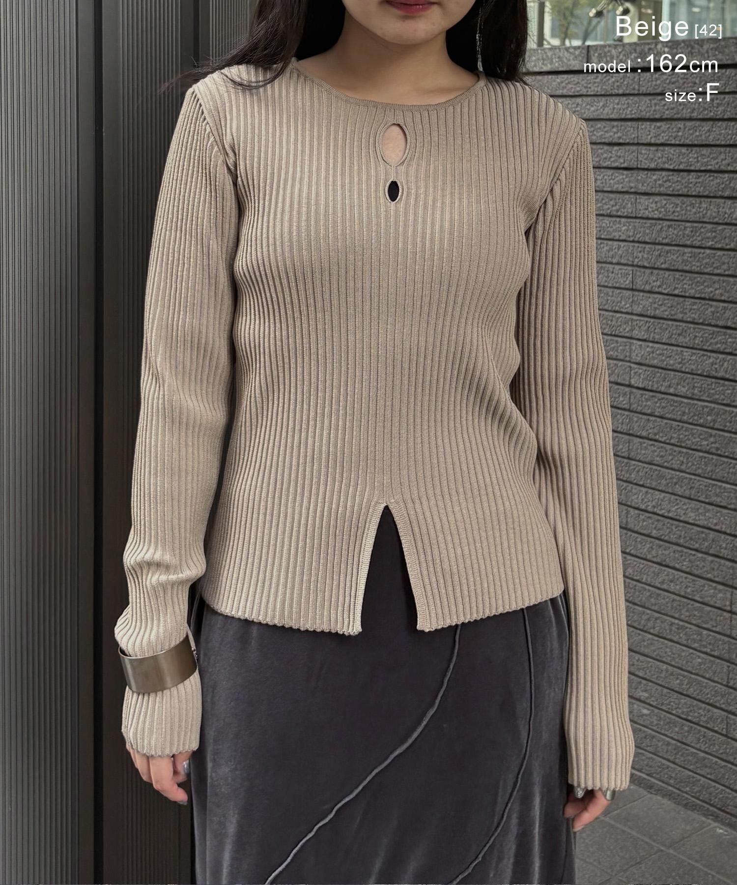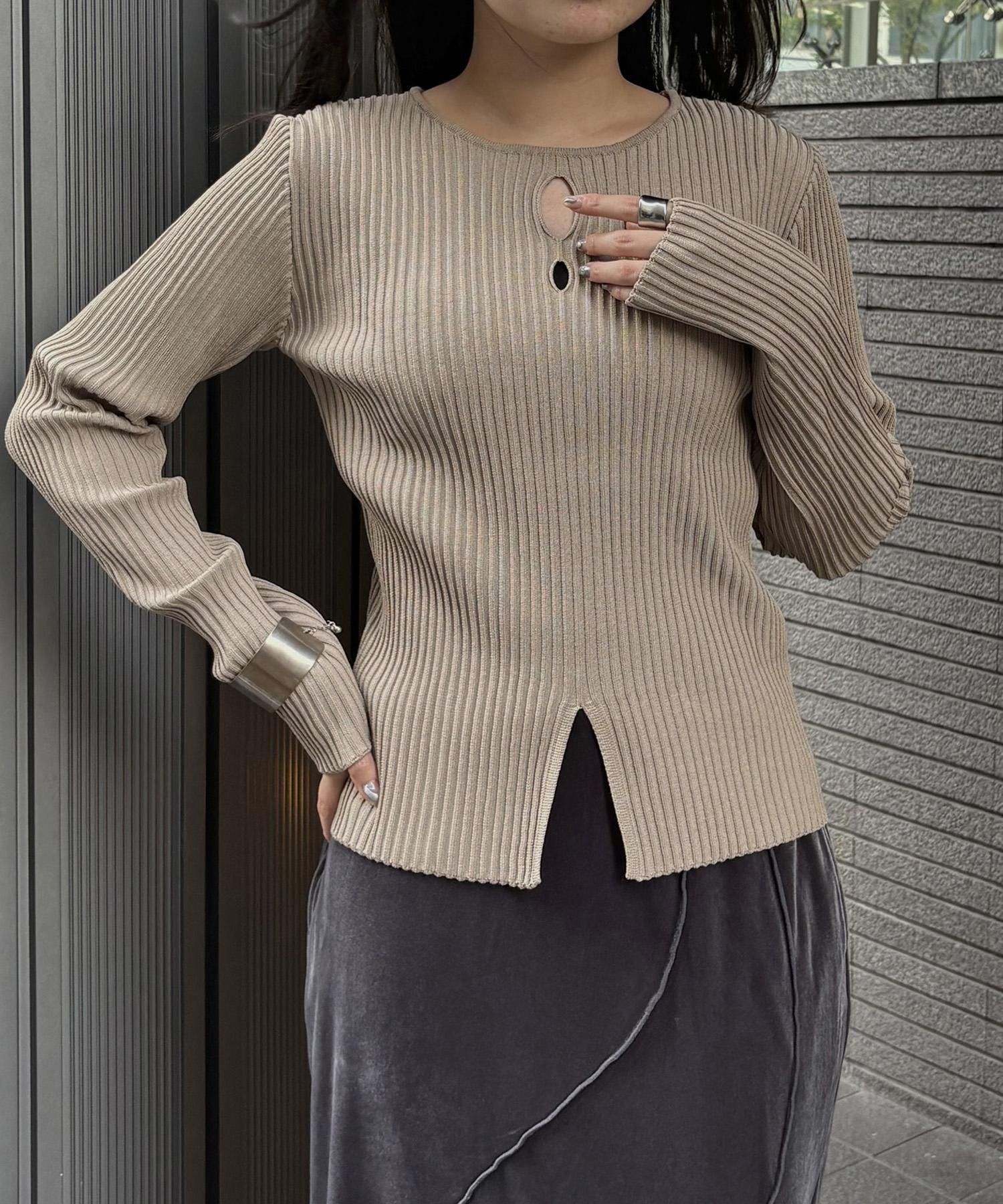 奥行き感のあるリブがポイントのスリットニット
