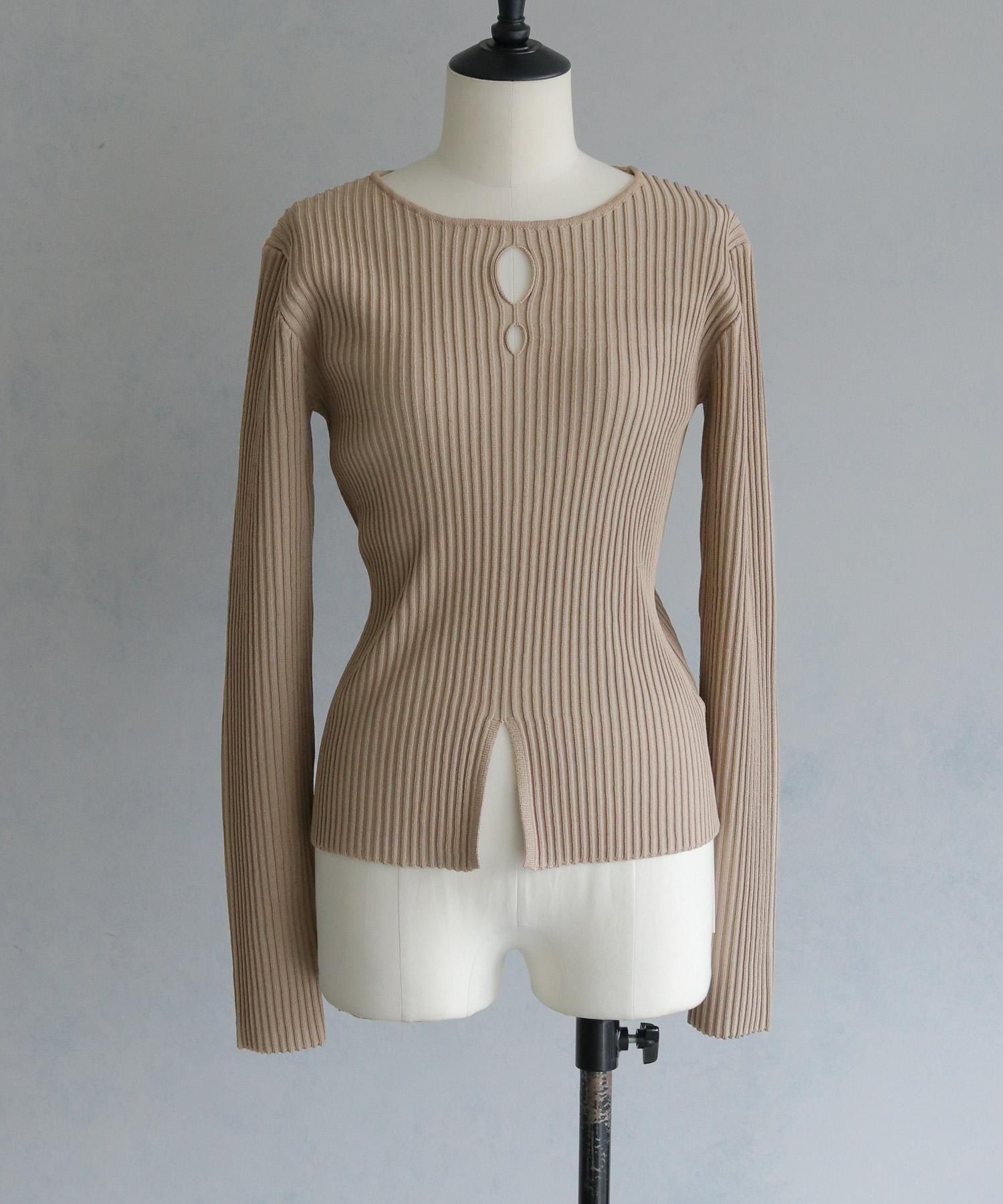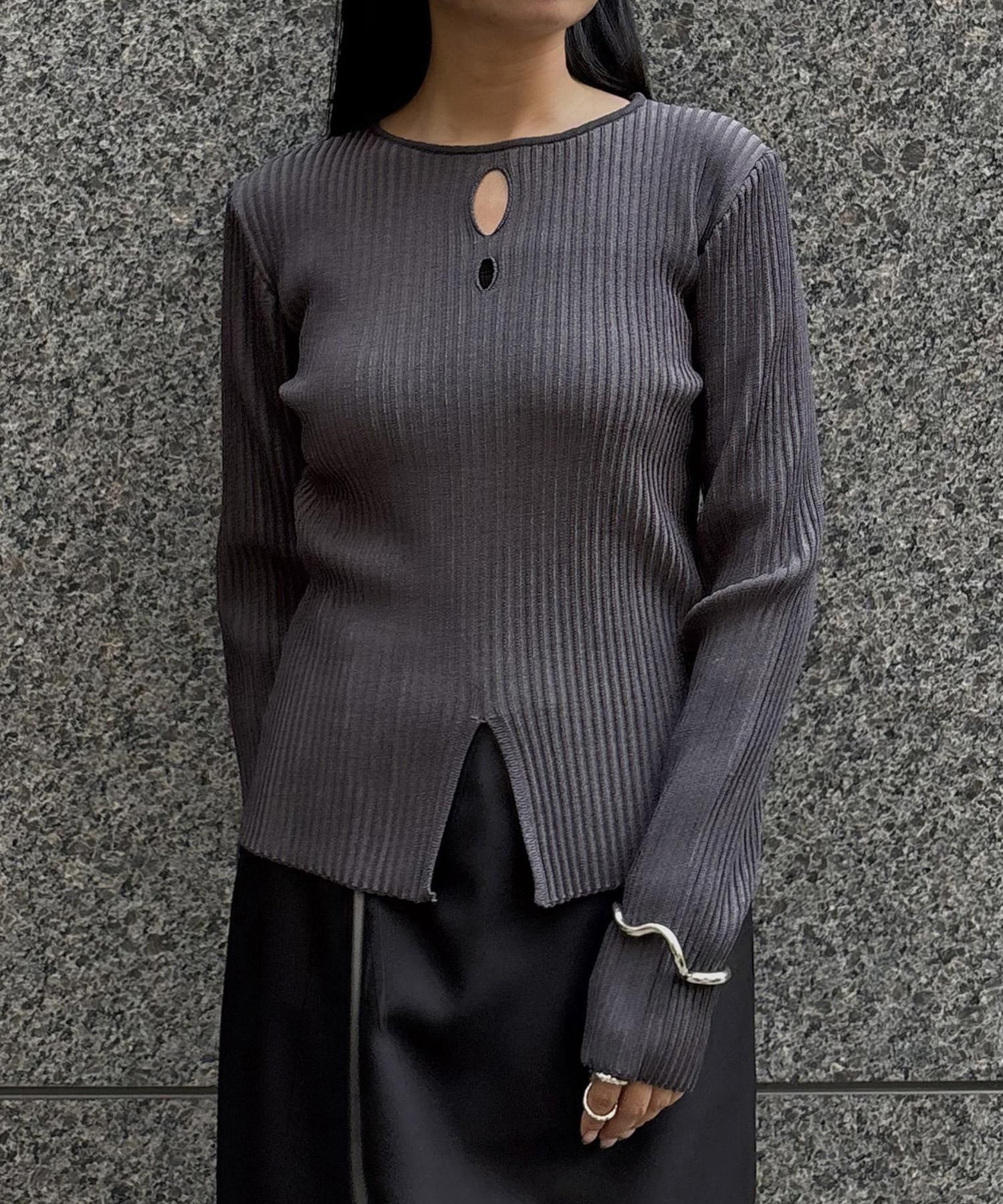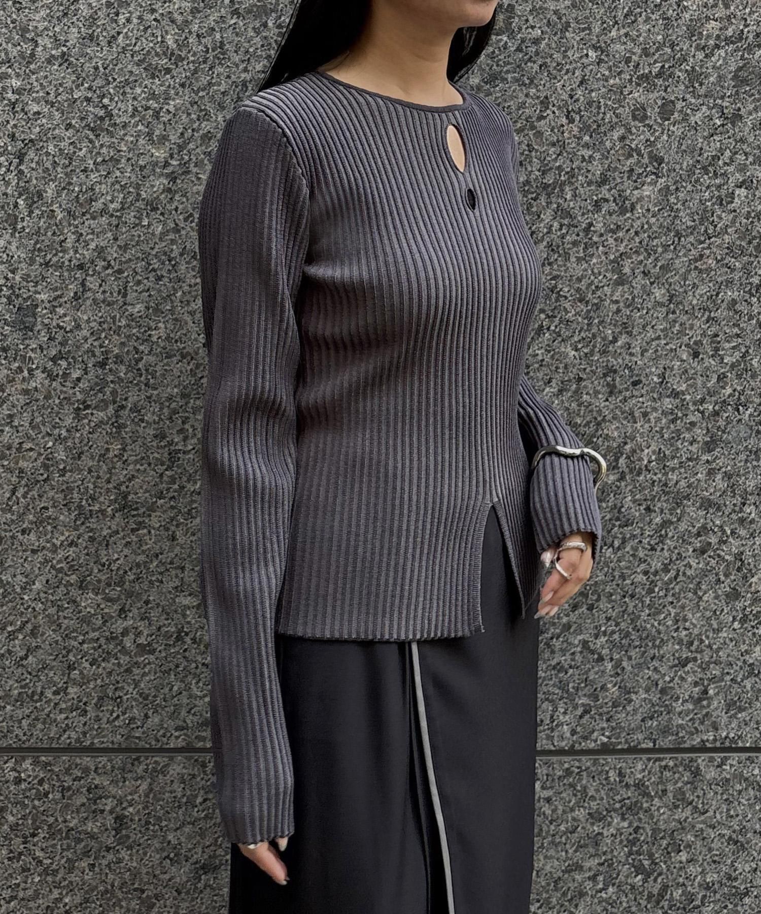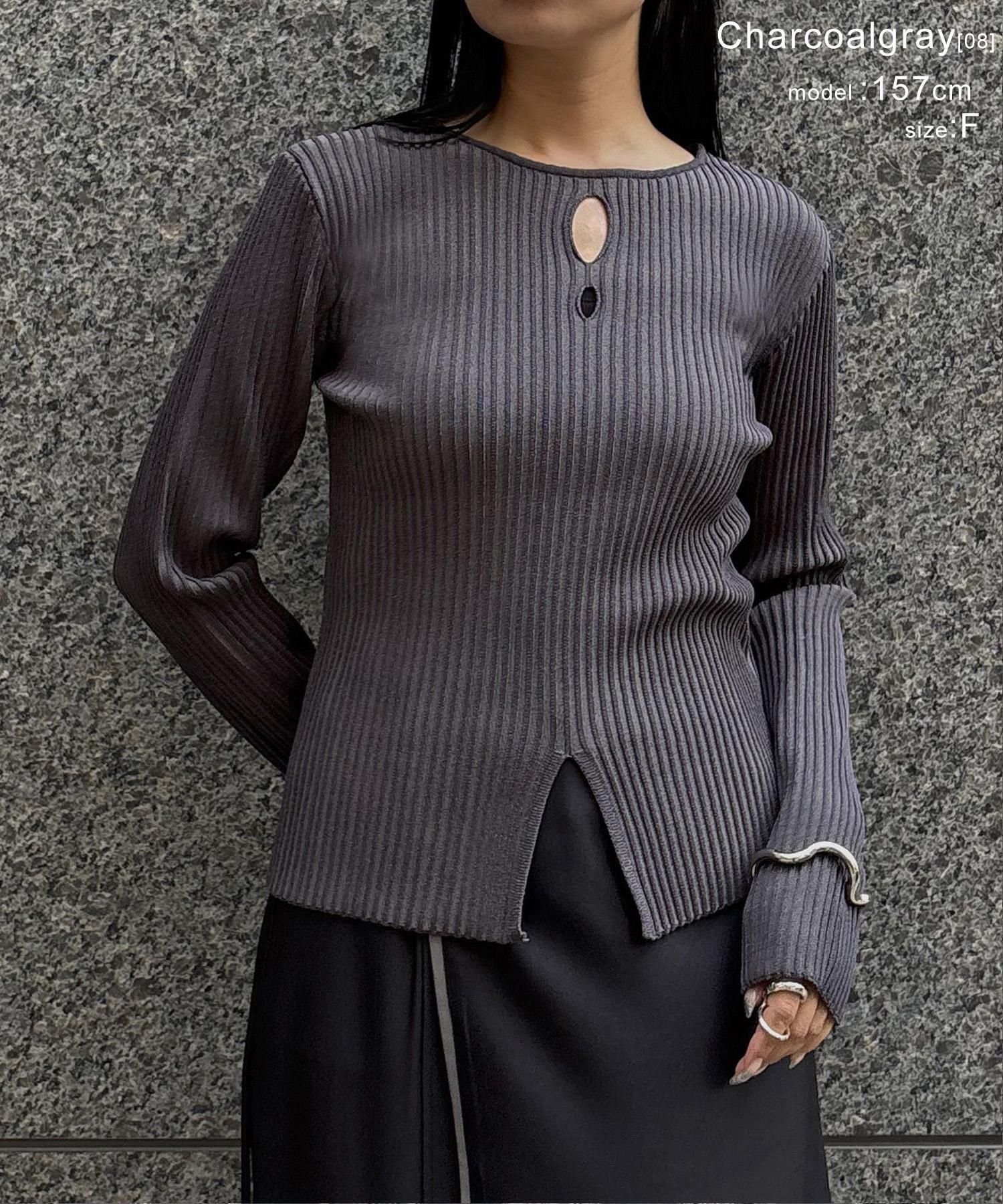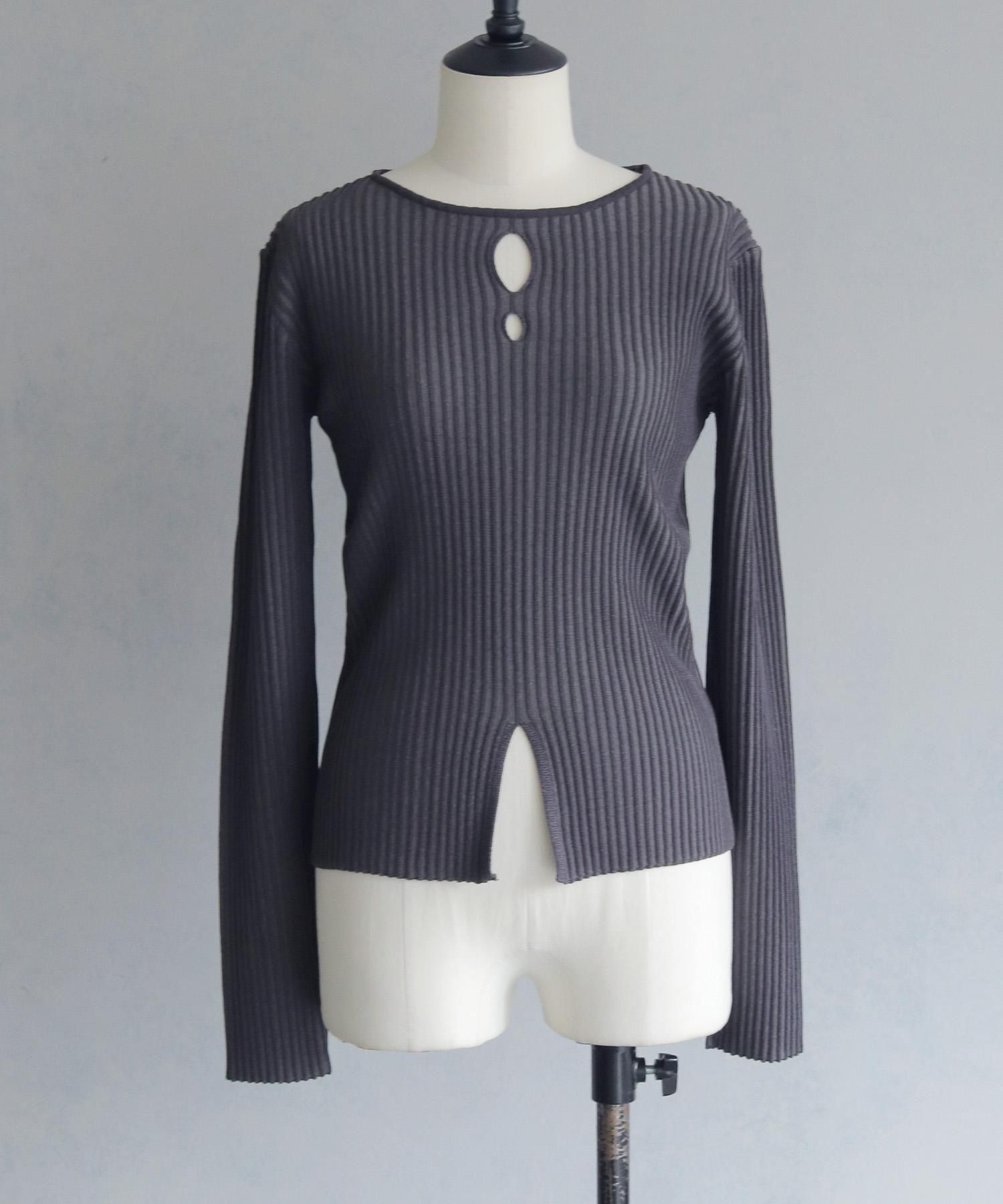 奥行き感のあるリブがポイントのスリットニット
