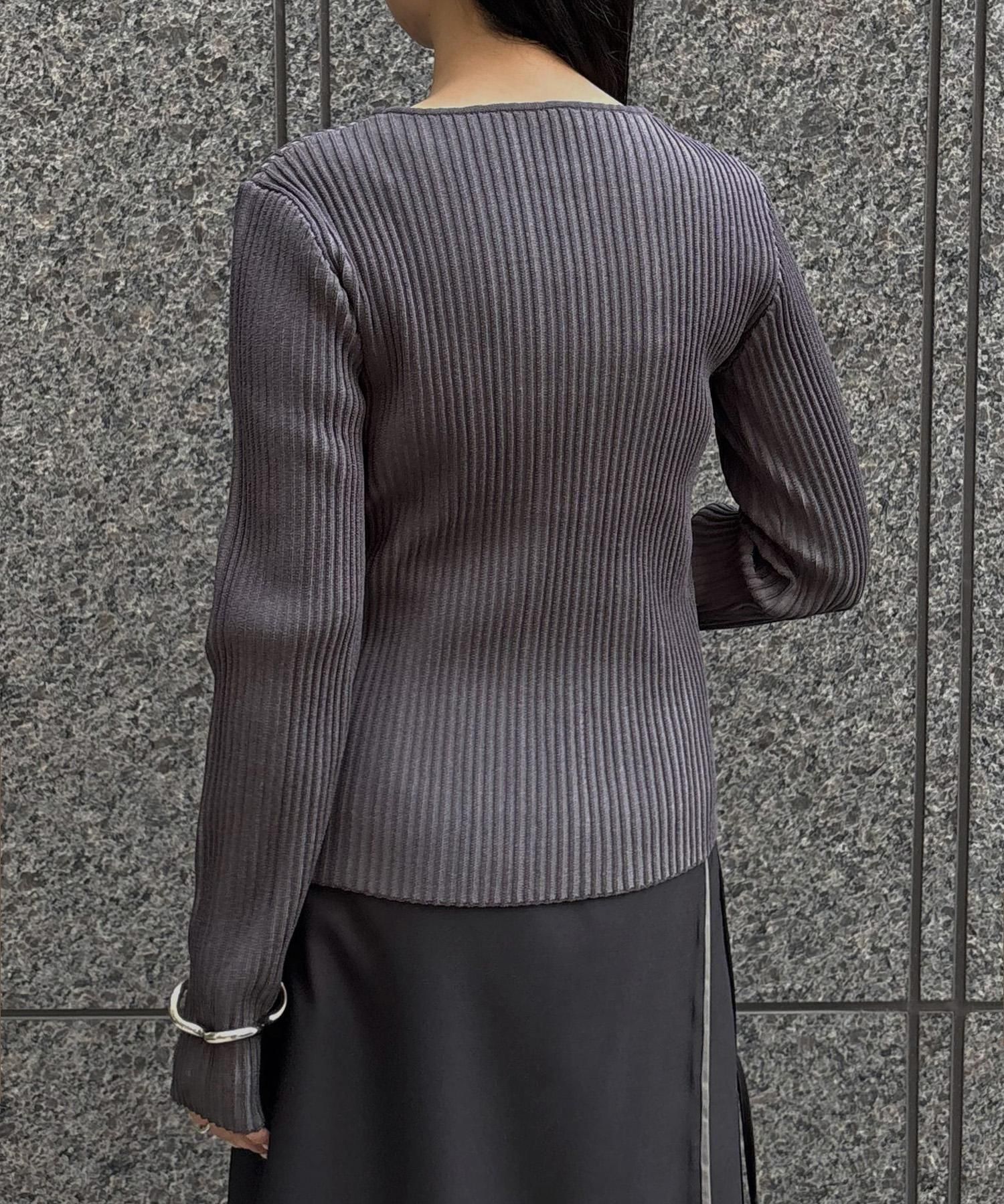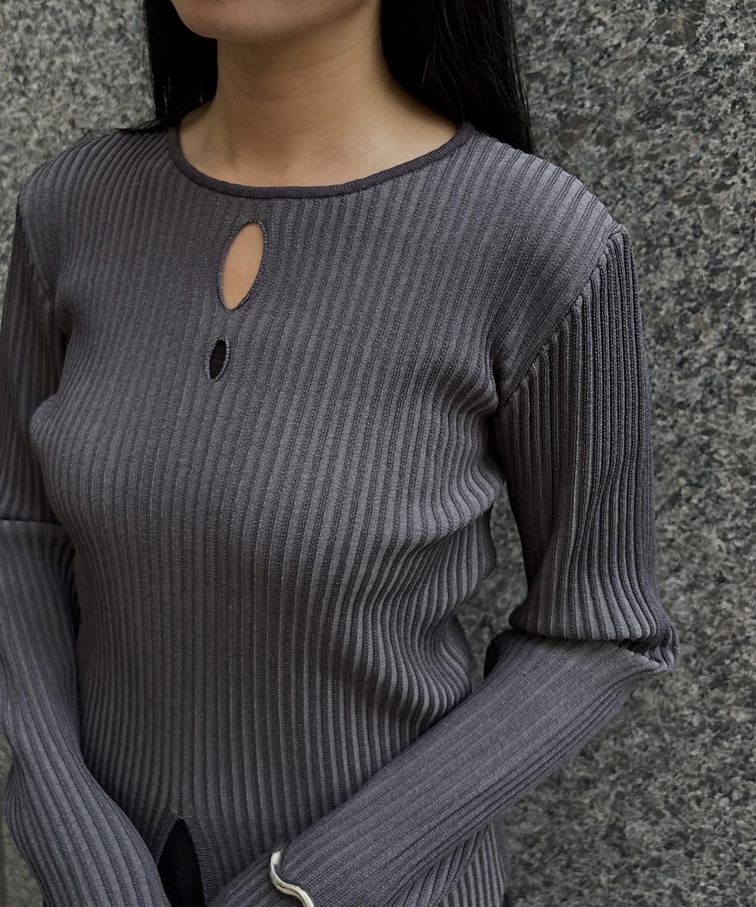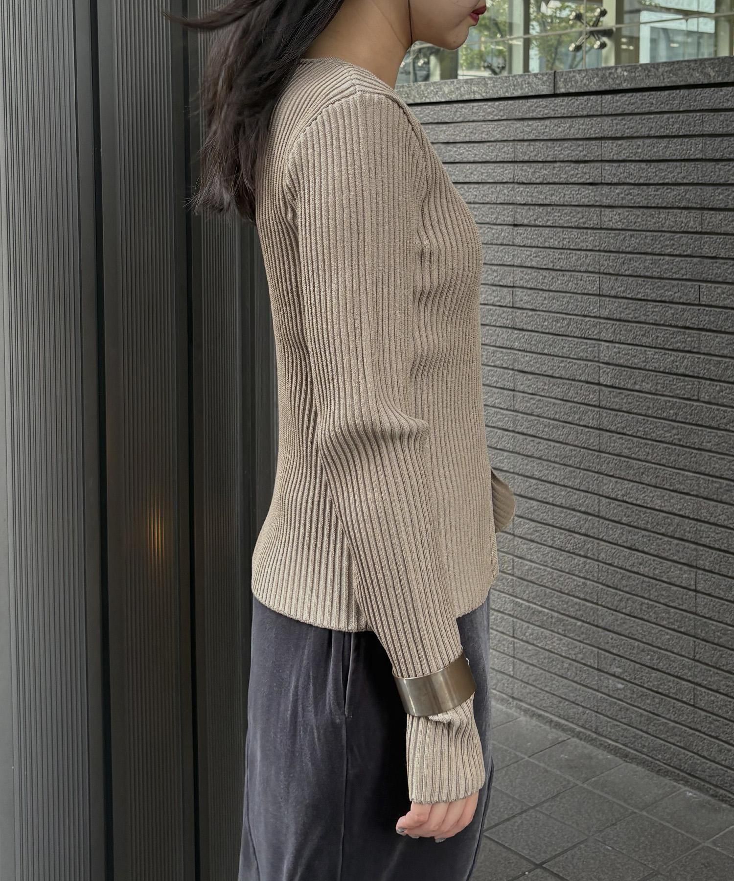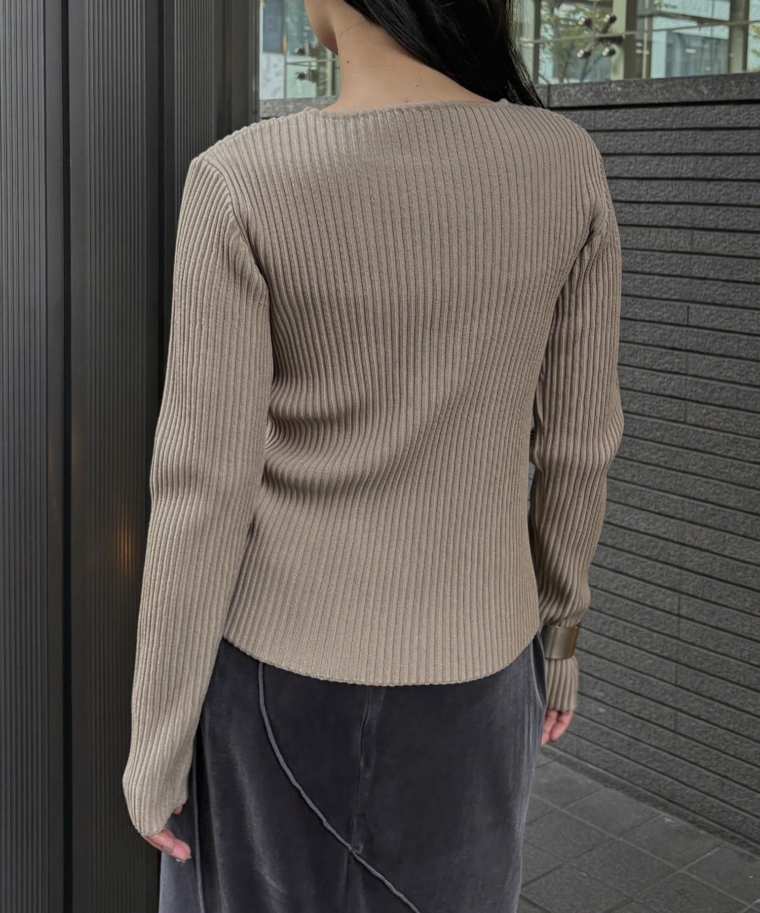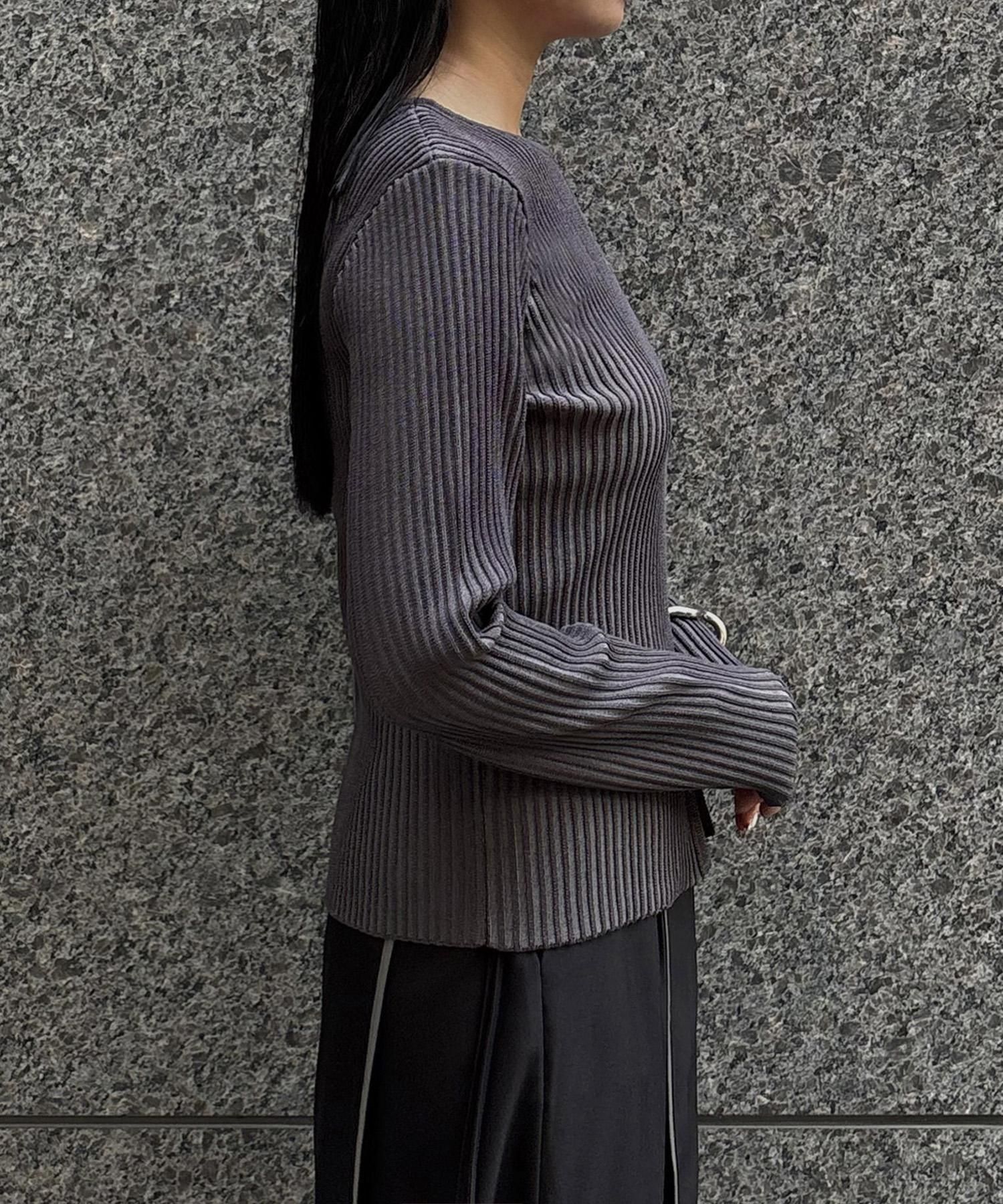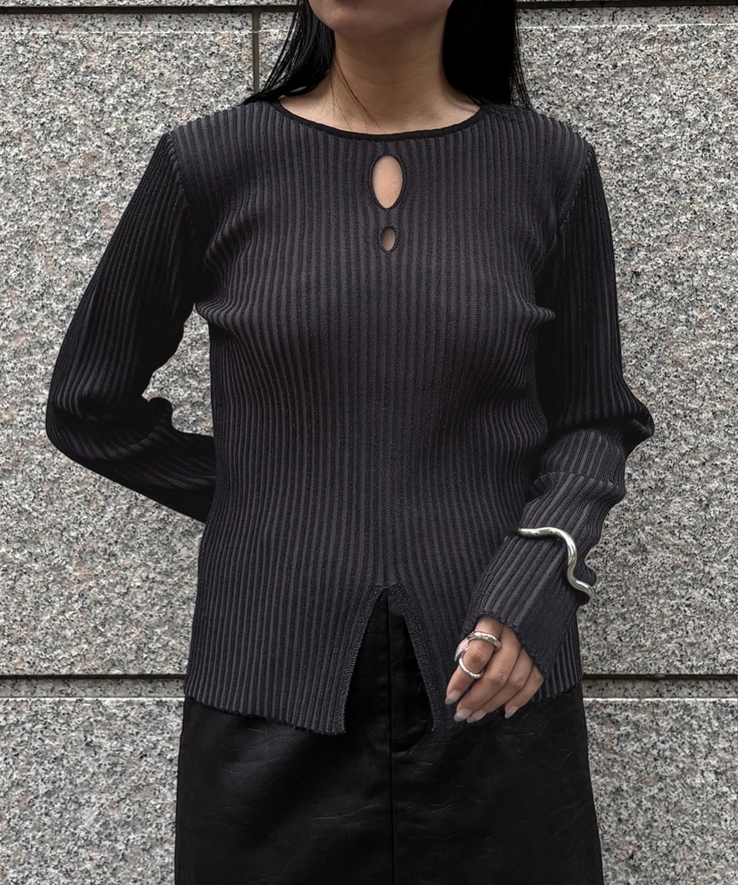 奥行き感のあるリブがポイントのスリットニット