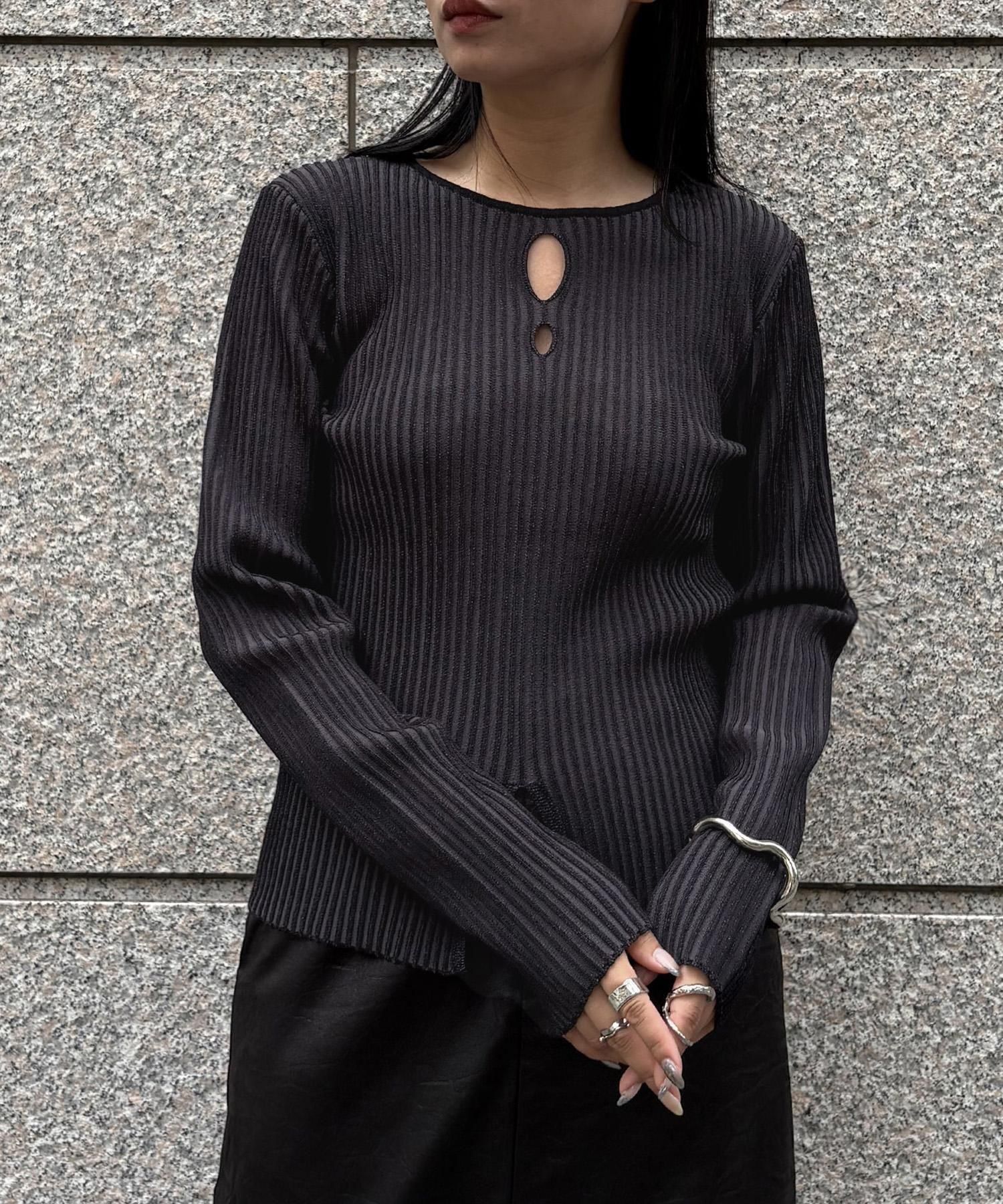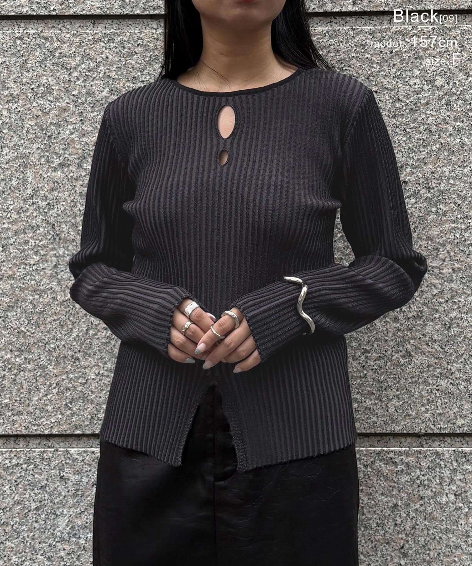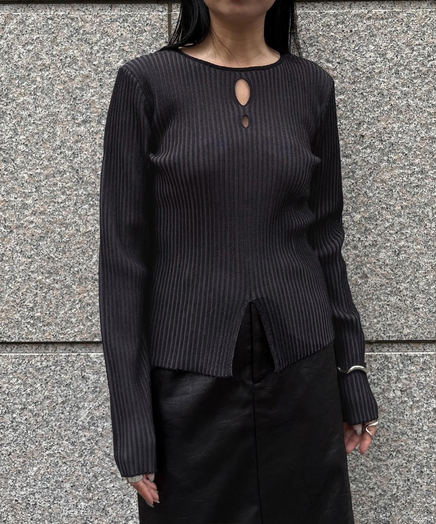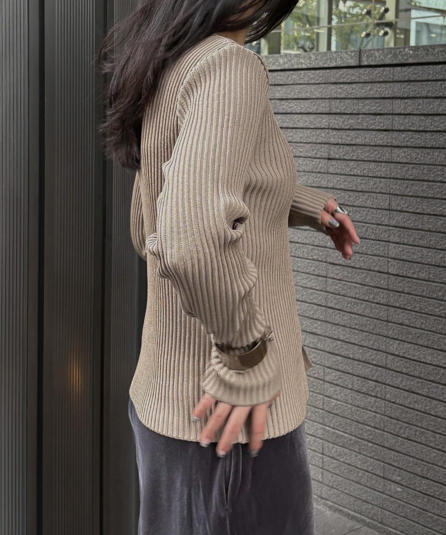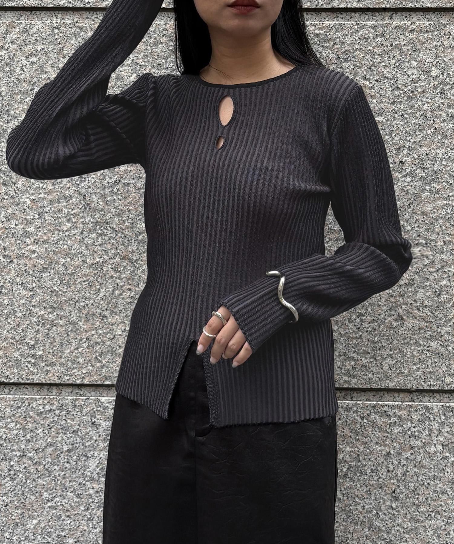 奥行き感のあるリブがポイントのスリットニット