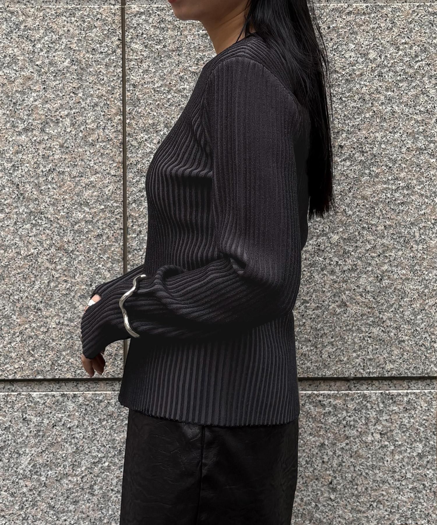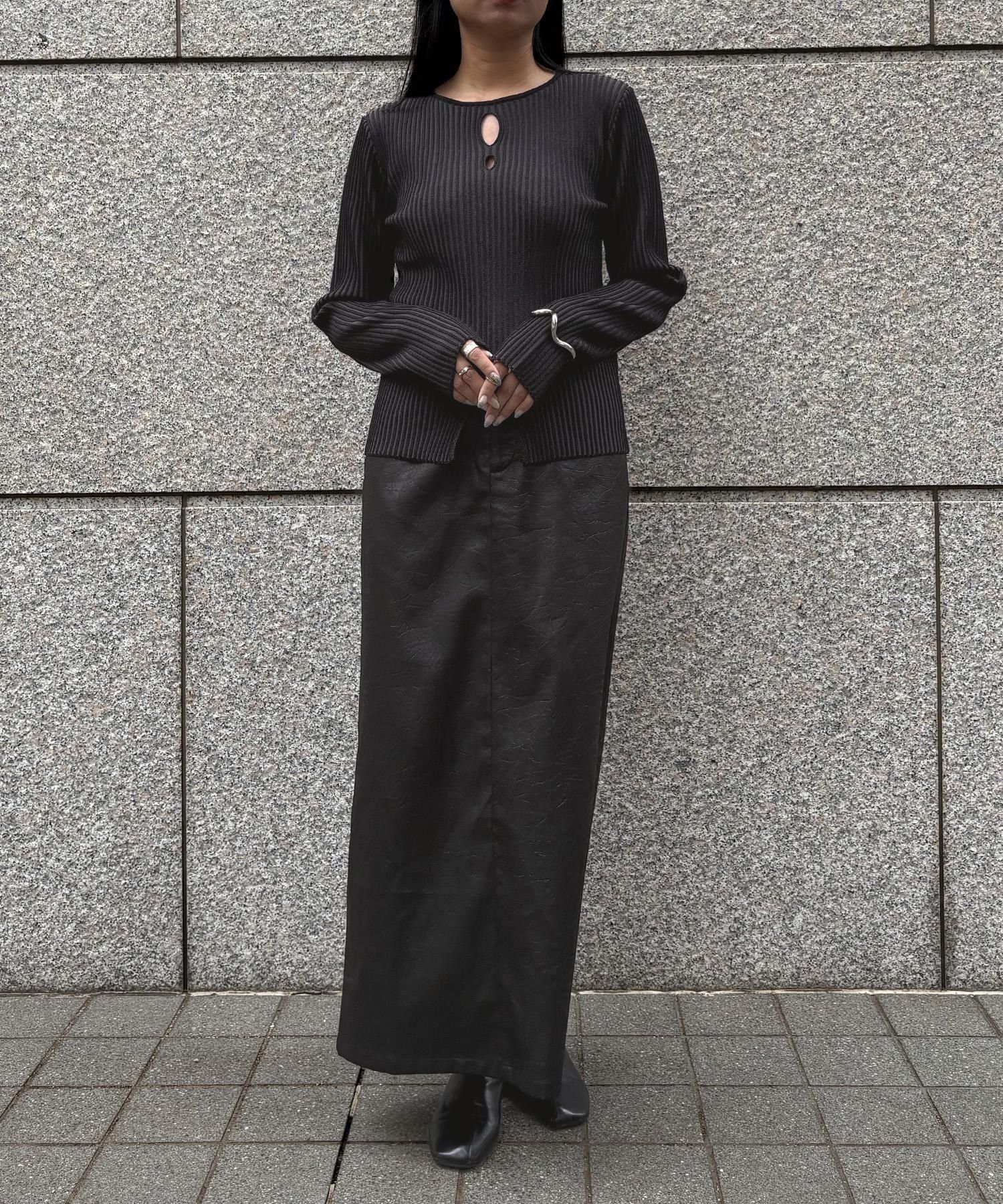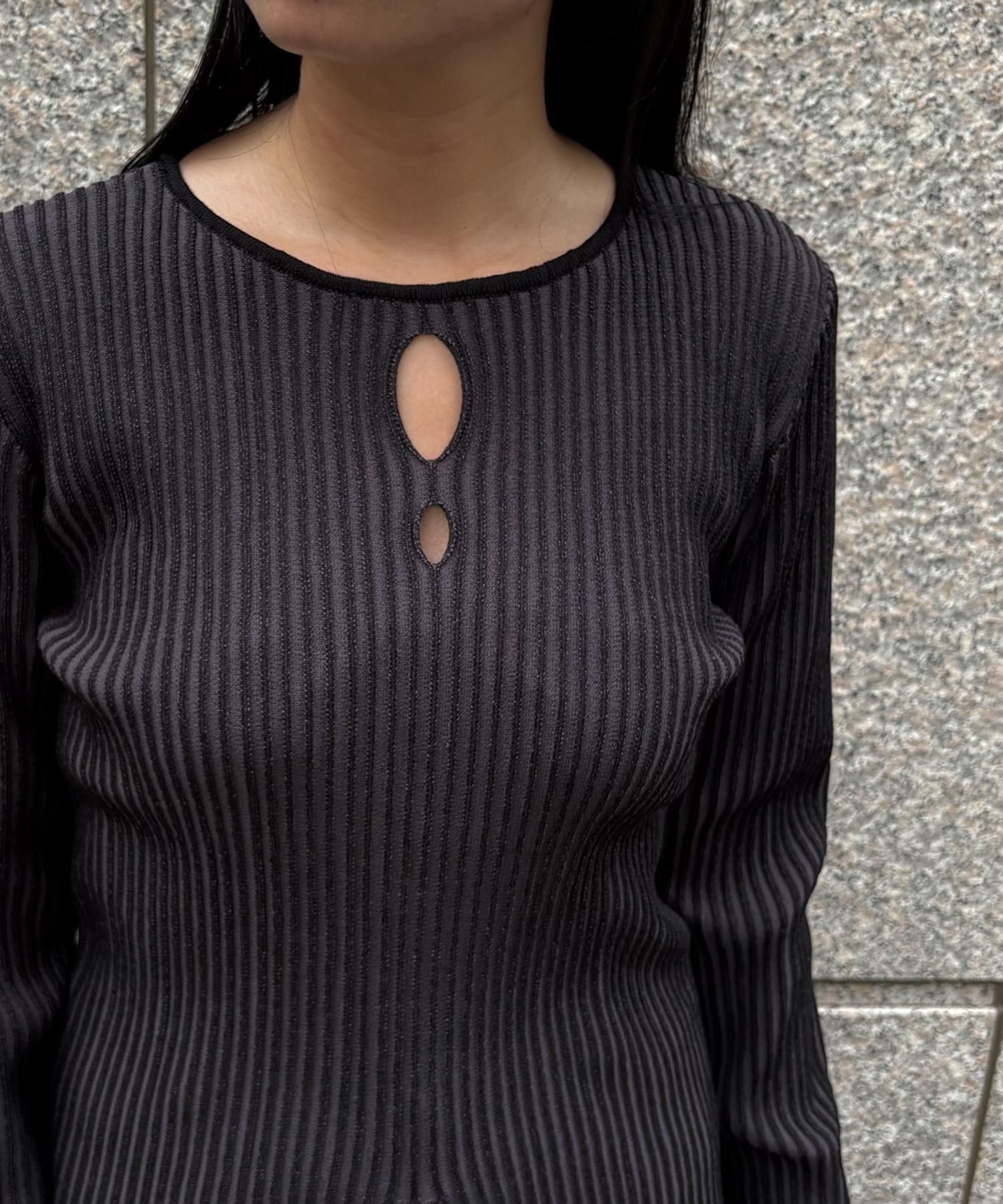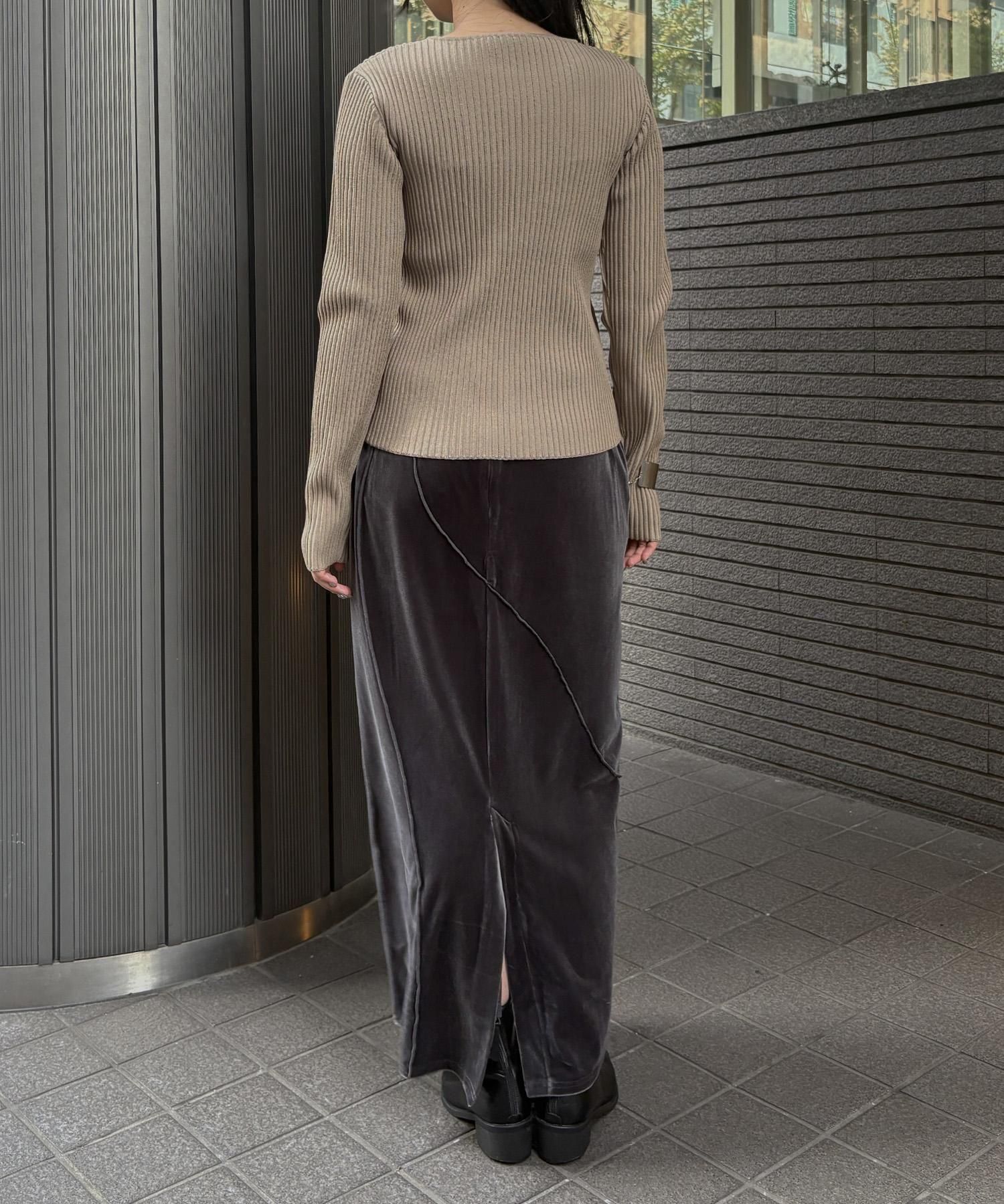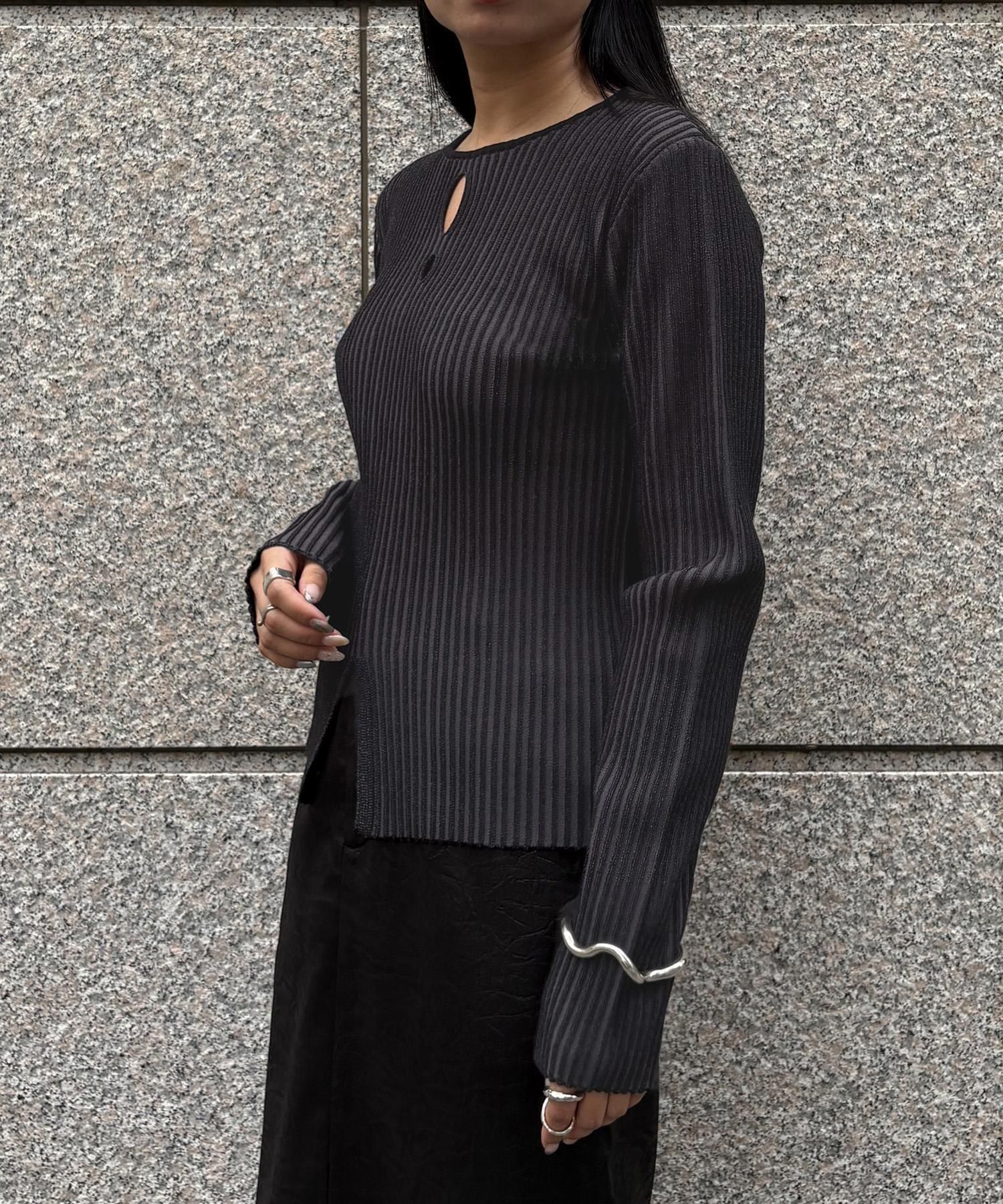 奥行き感のあるリブがポイントのスリットニット
