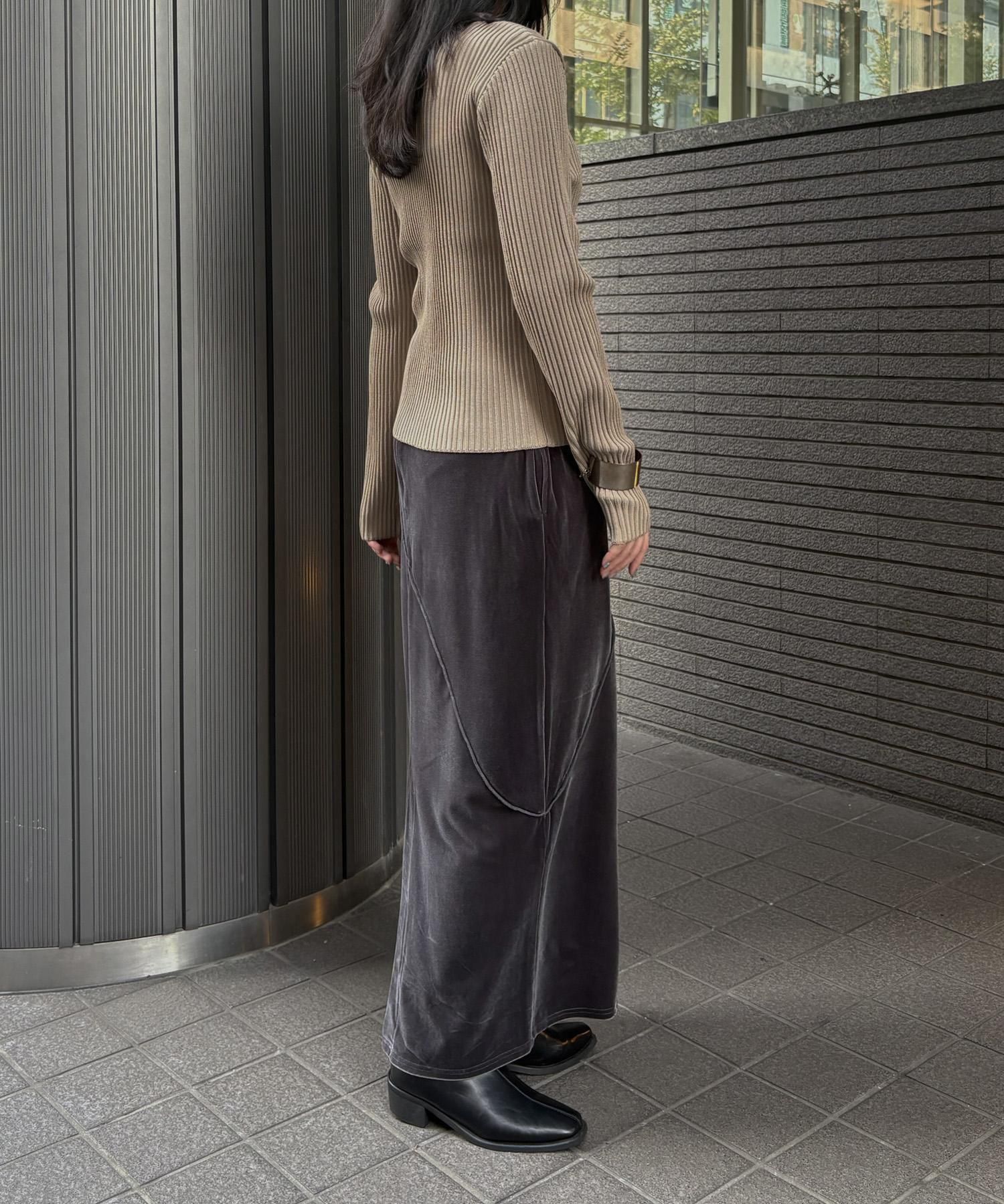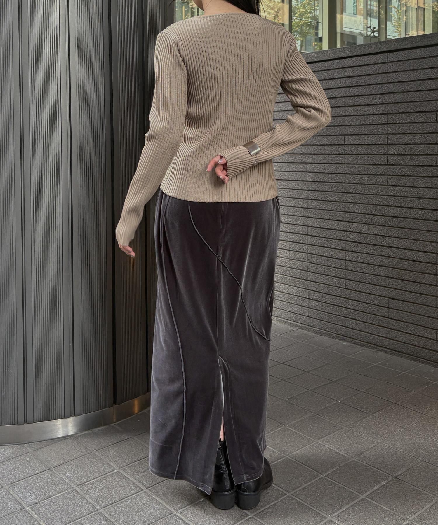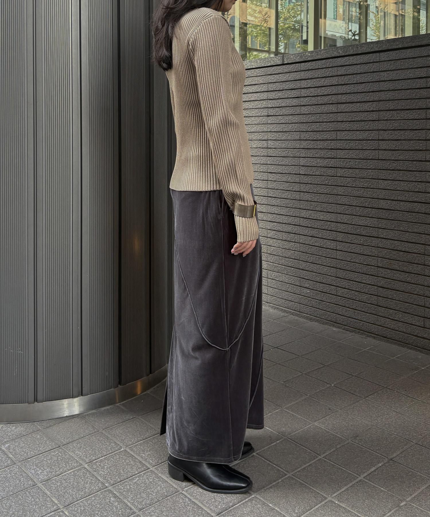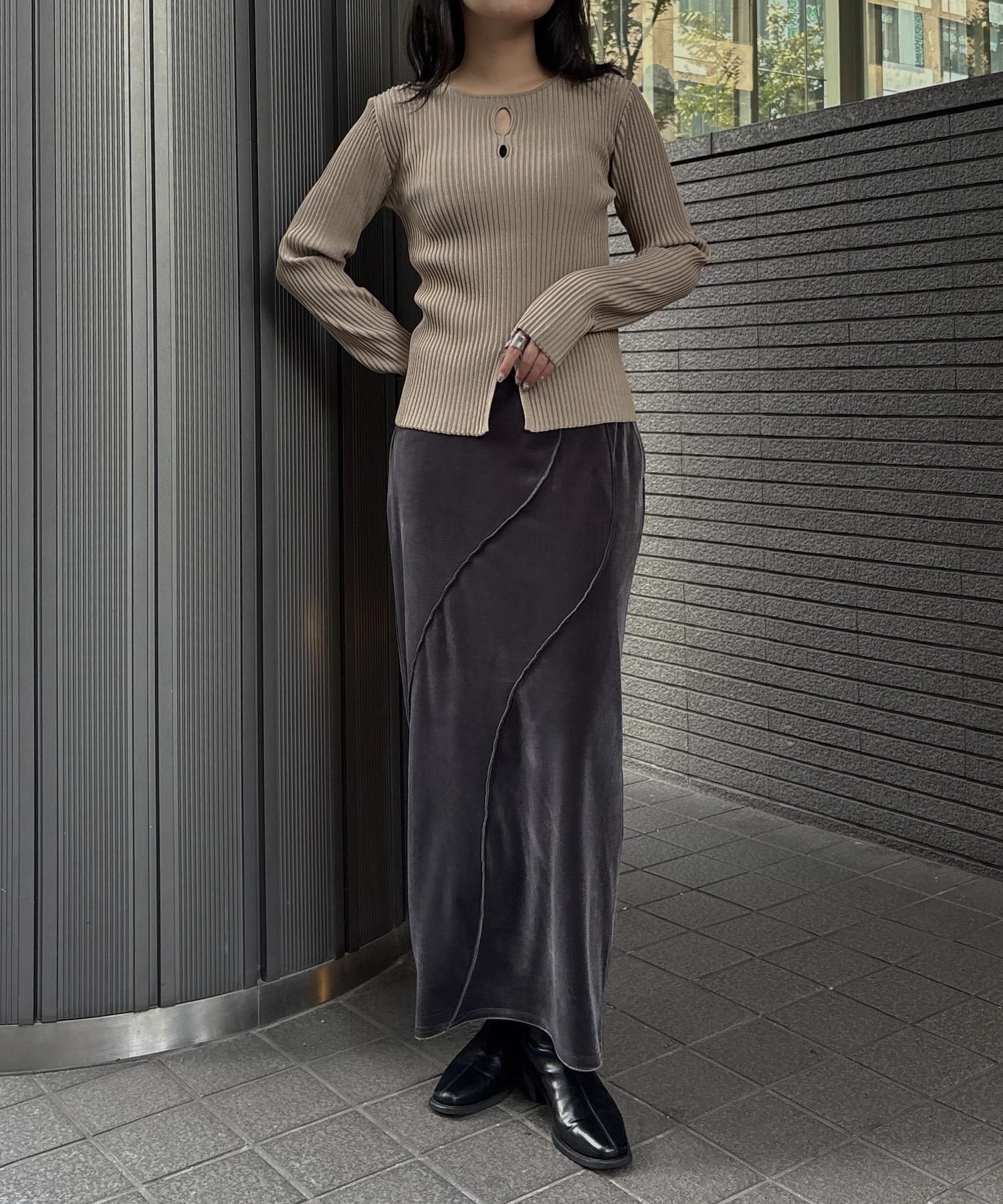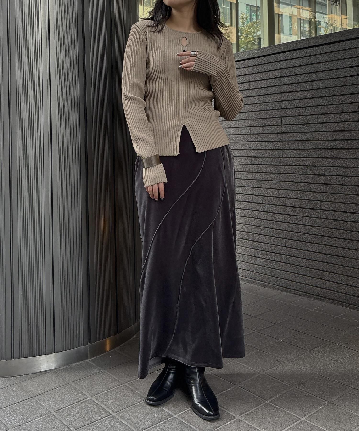 リブ編みの縦ラインとサイドスリットが、シンプルながらもこなれ感を演出します。