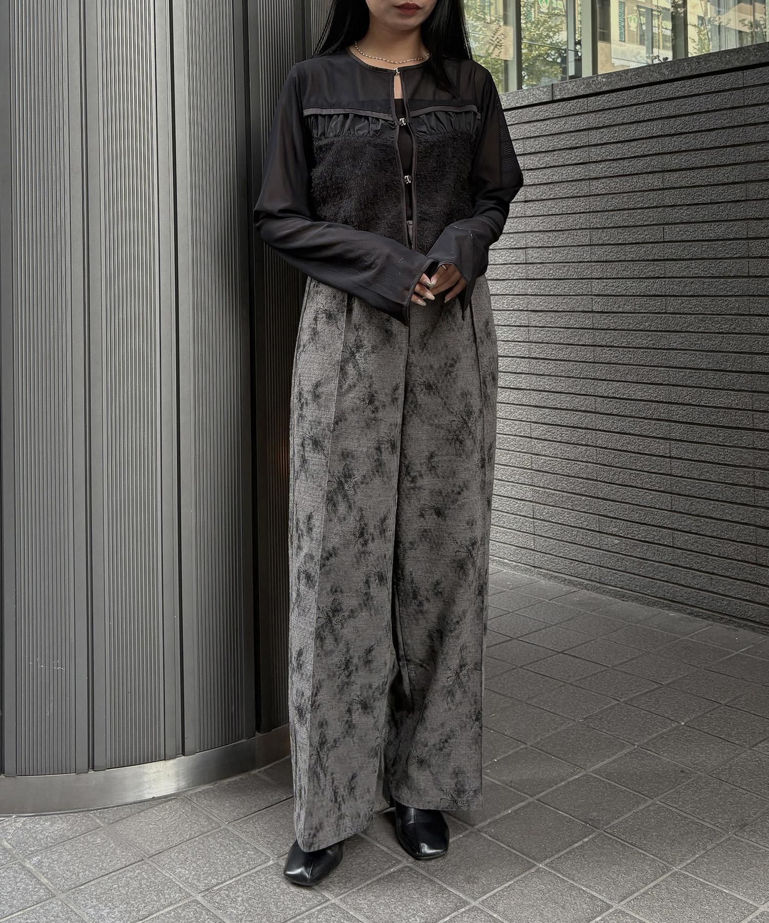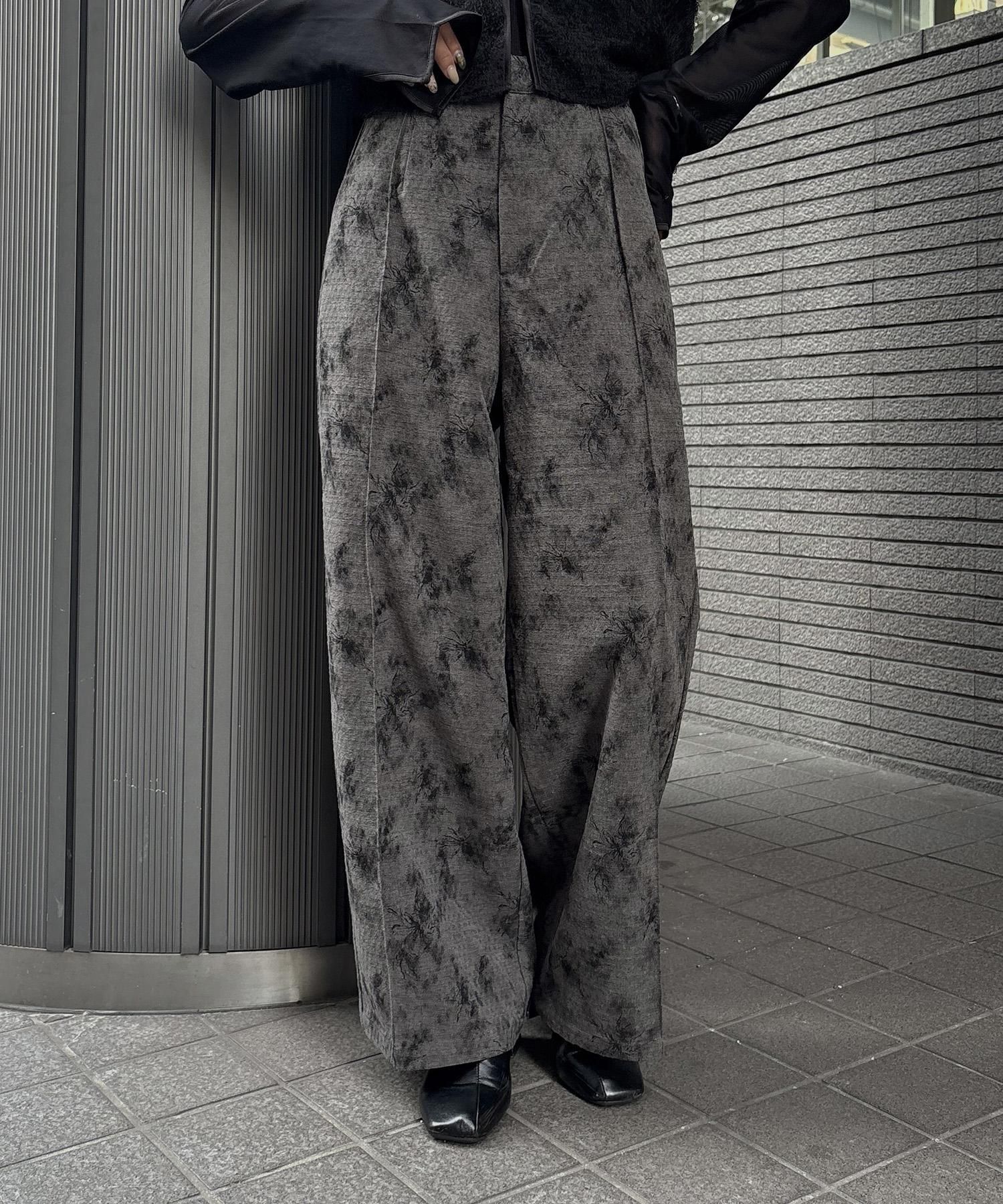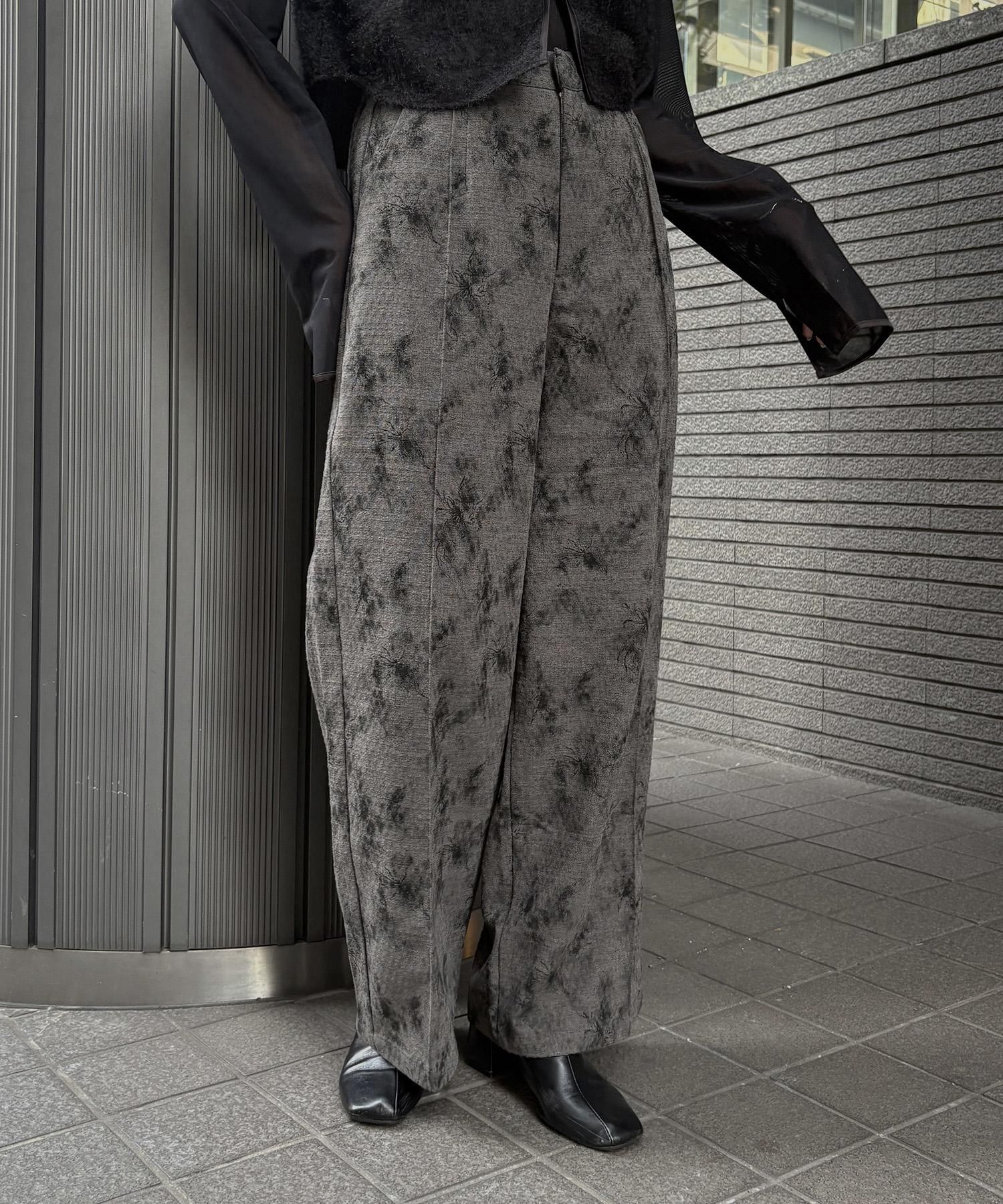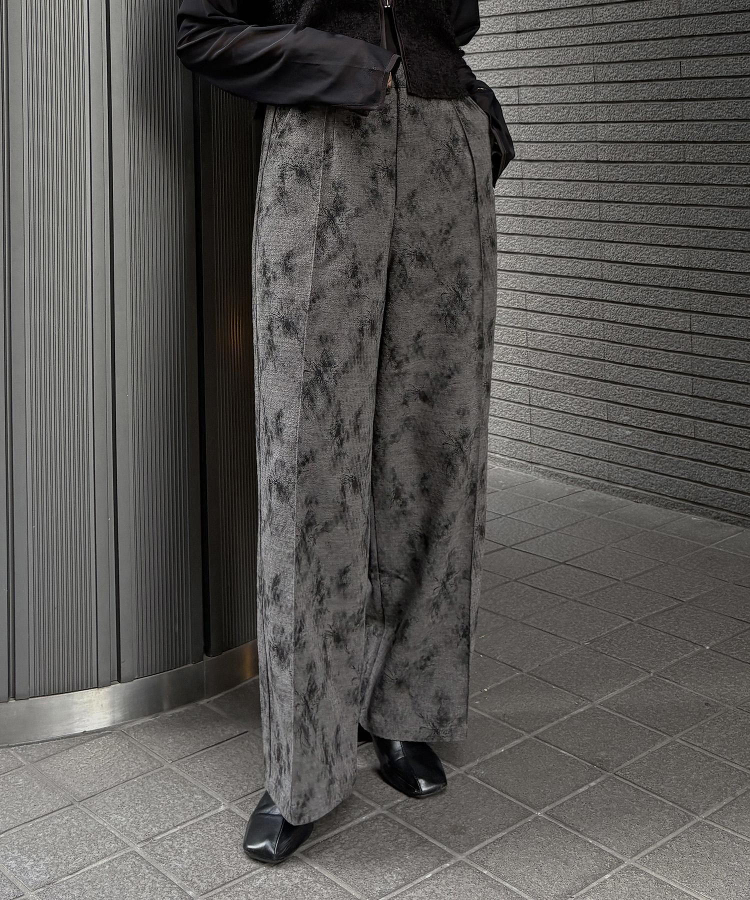 一枚で雰囲気が決まる、フラワープリントジャガードワイドパンツ