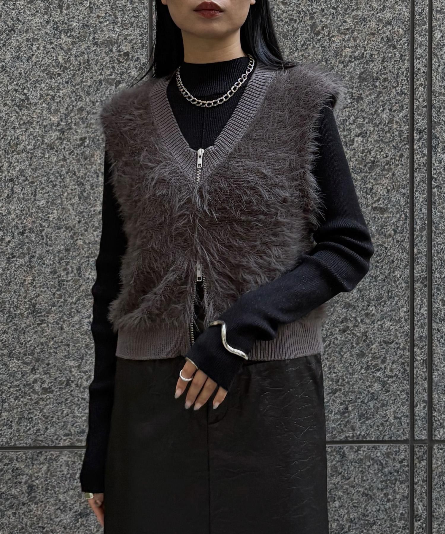 秋冬らしいボリューム感のあるシャギーが印象的なニットベスト。