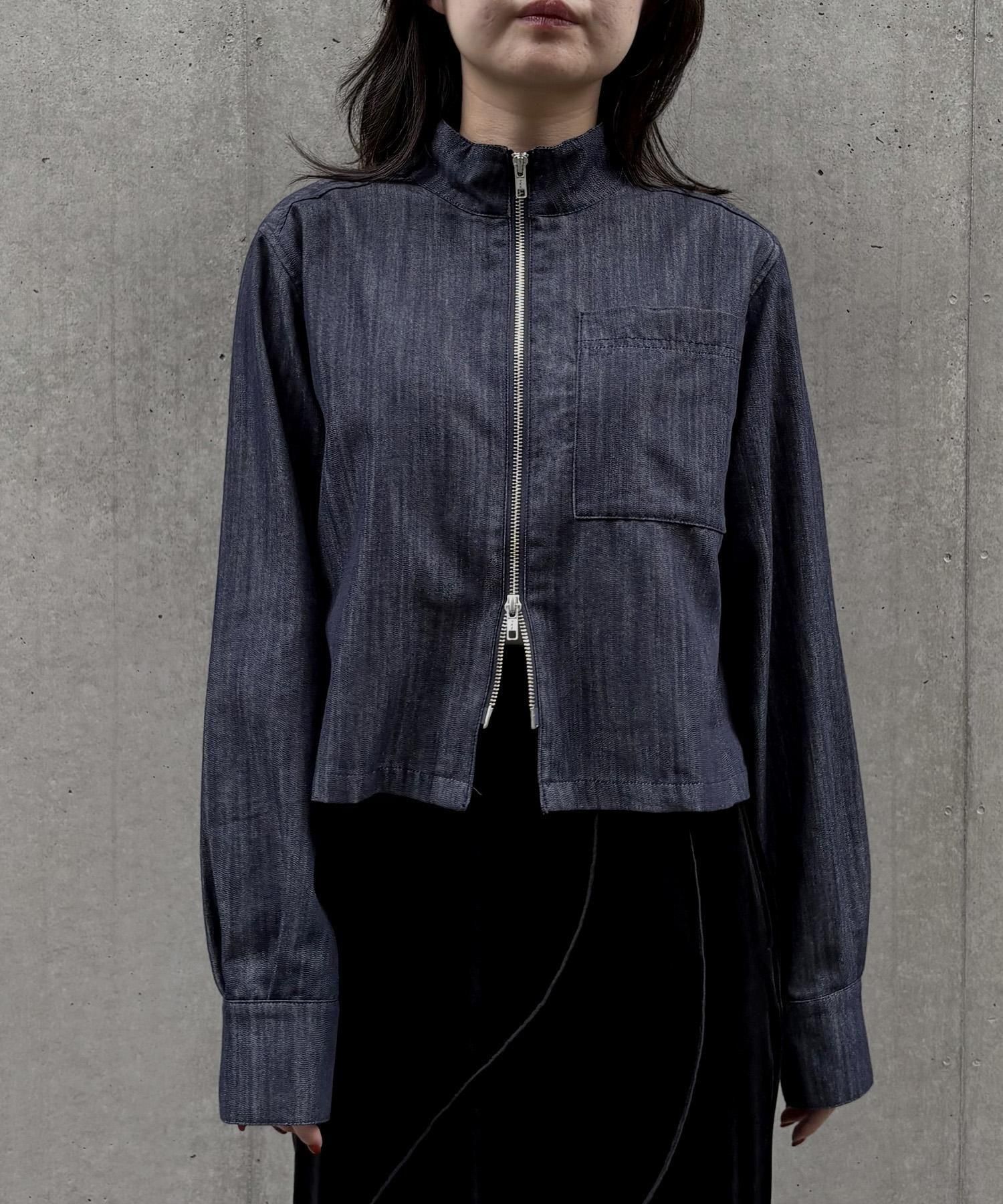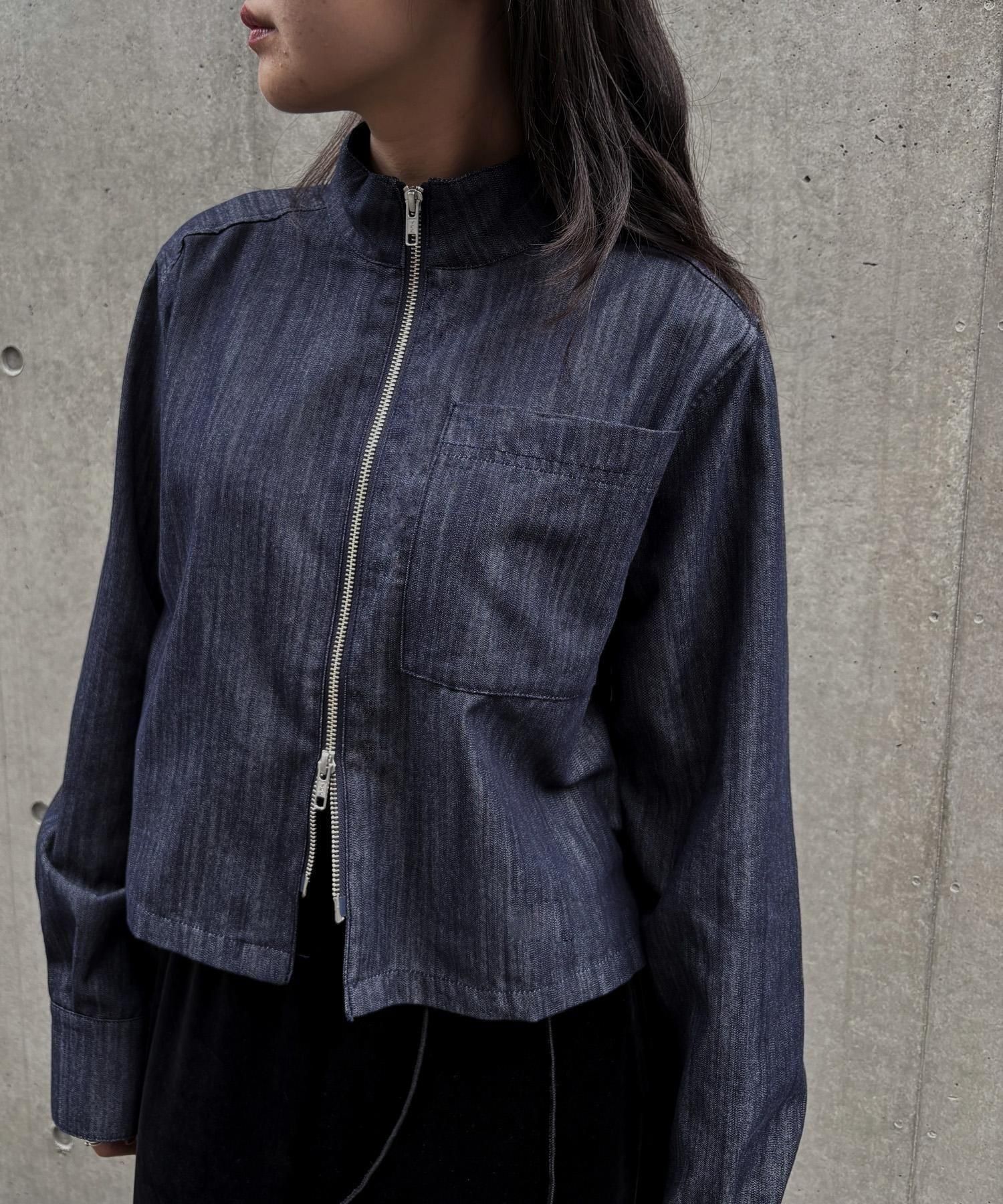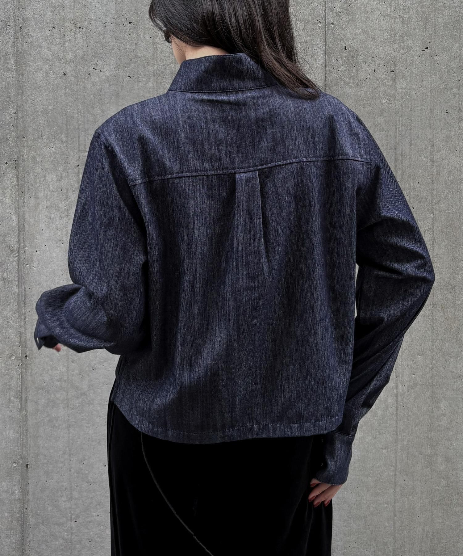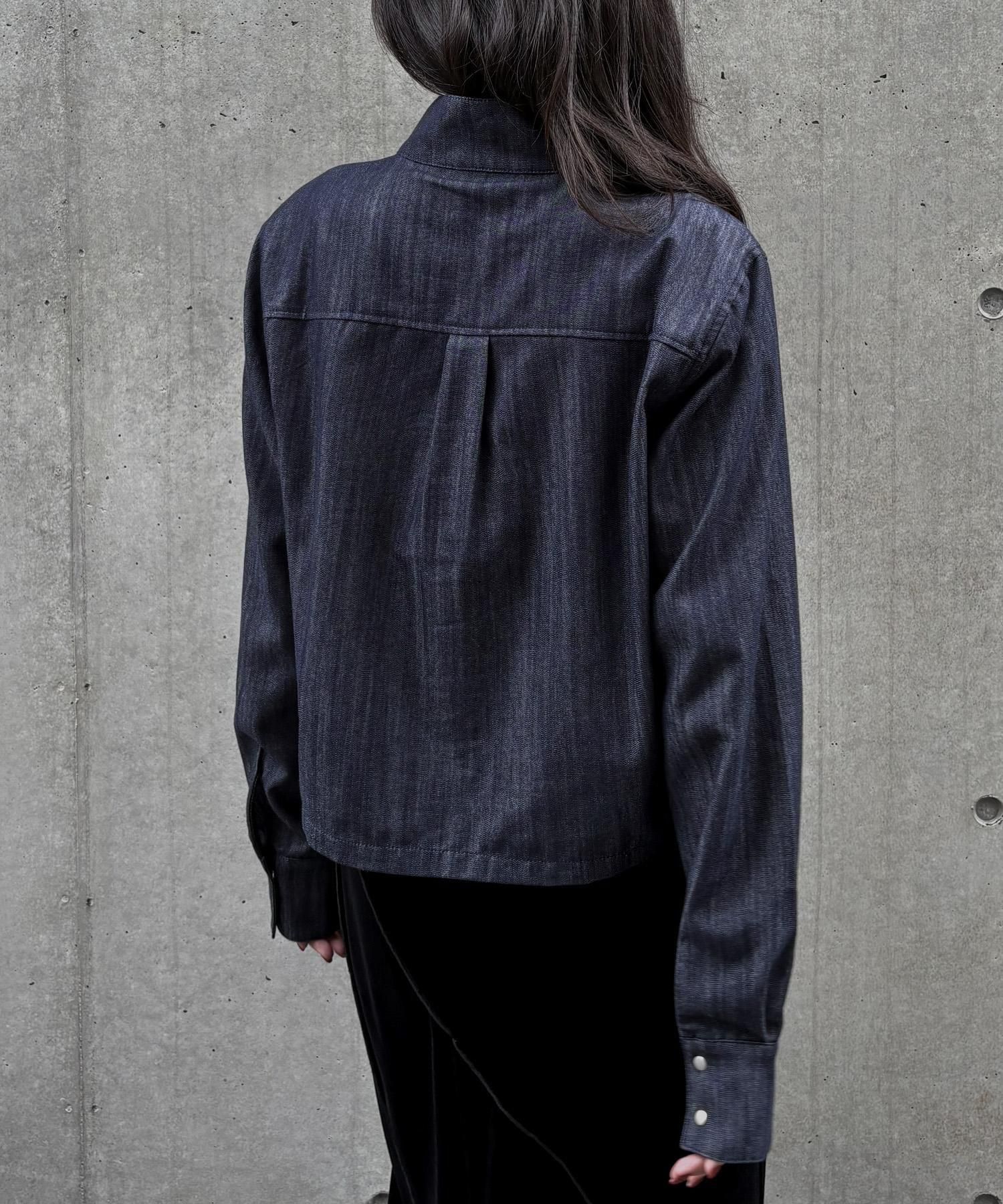 ヘリンボーンライクなデニム生地がポイントのシャツ
