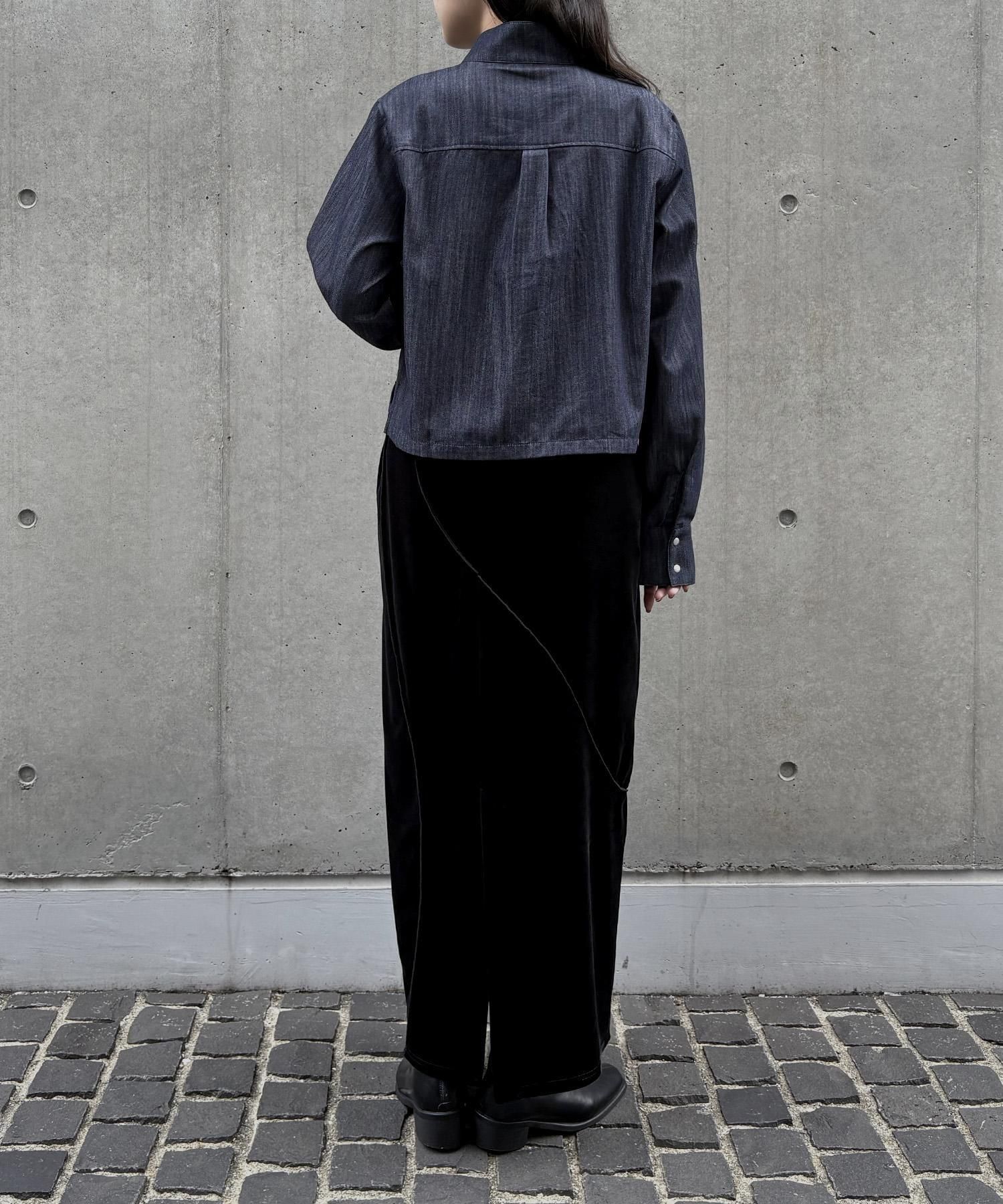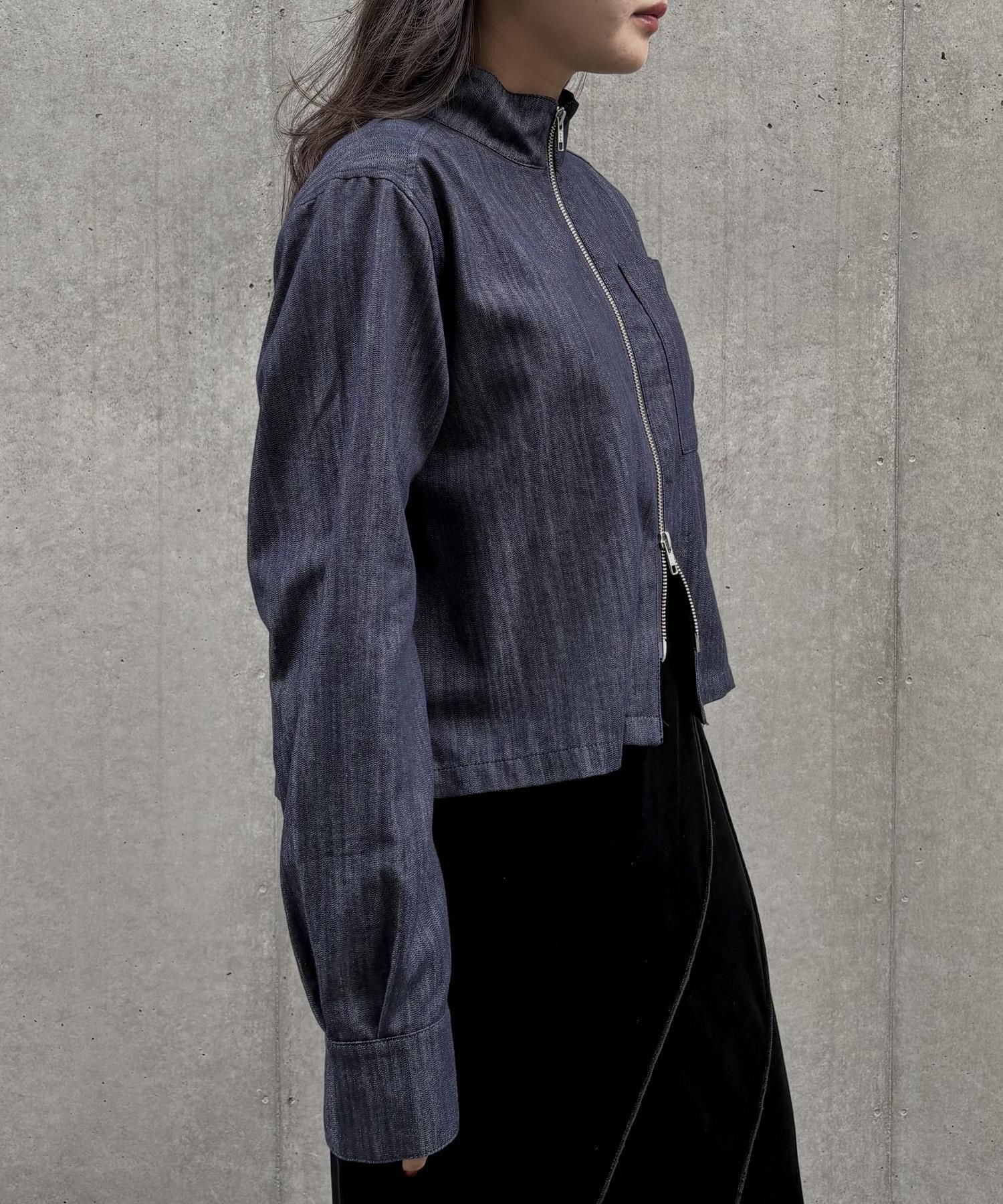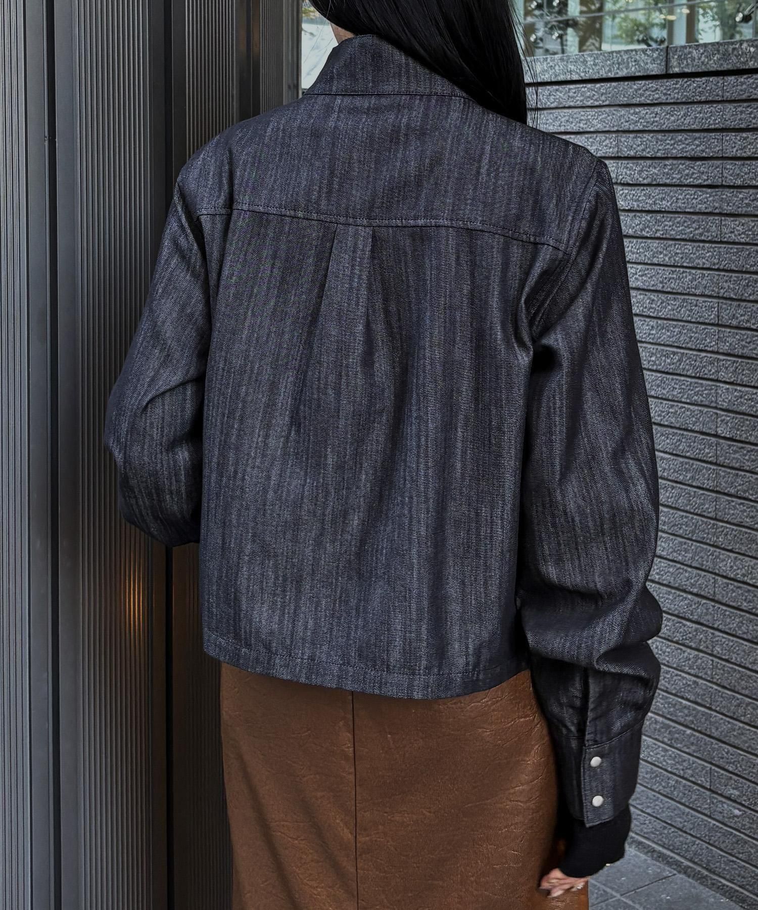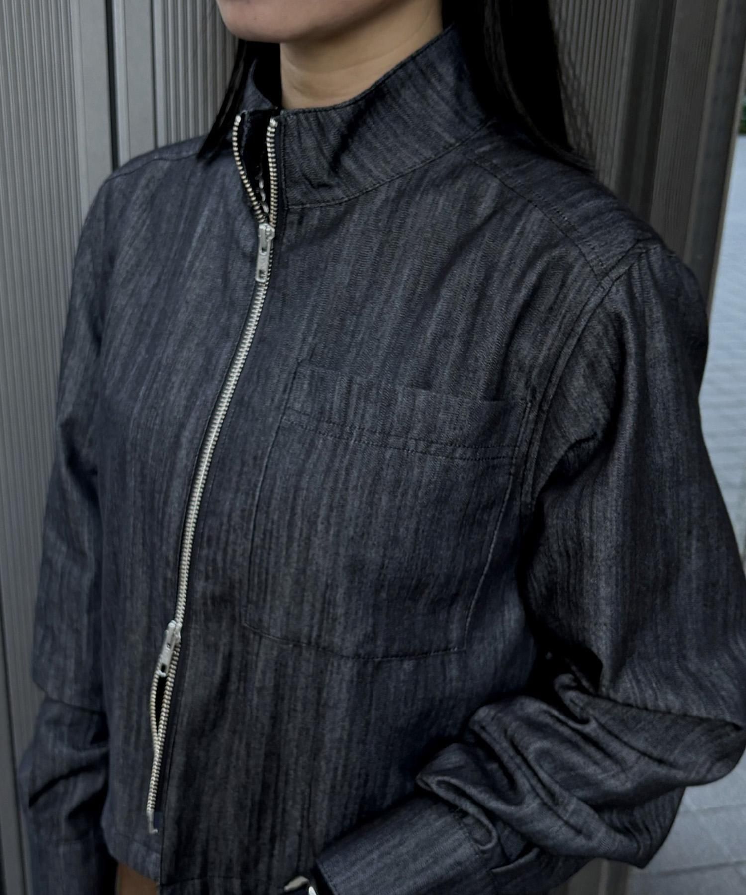 ヘリンボーンライクなデニム生地がポイントのシャツ