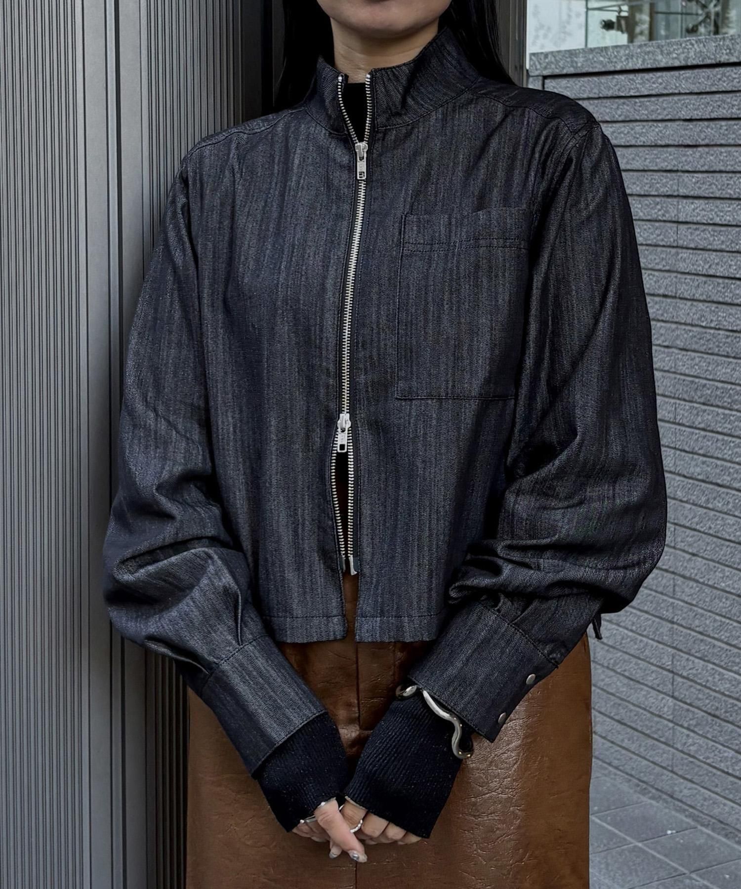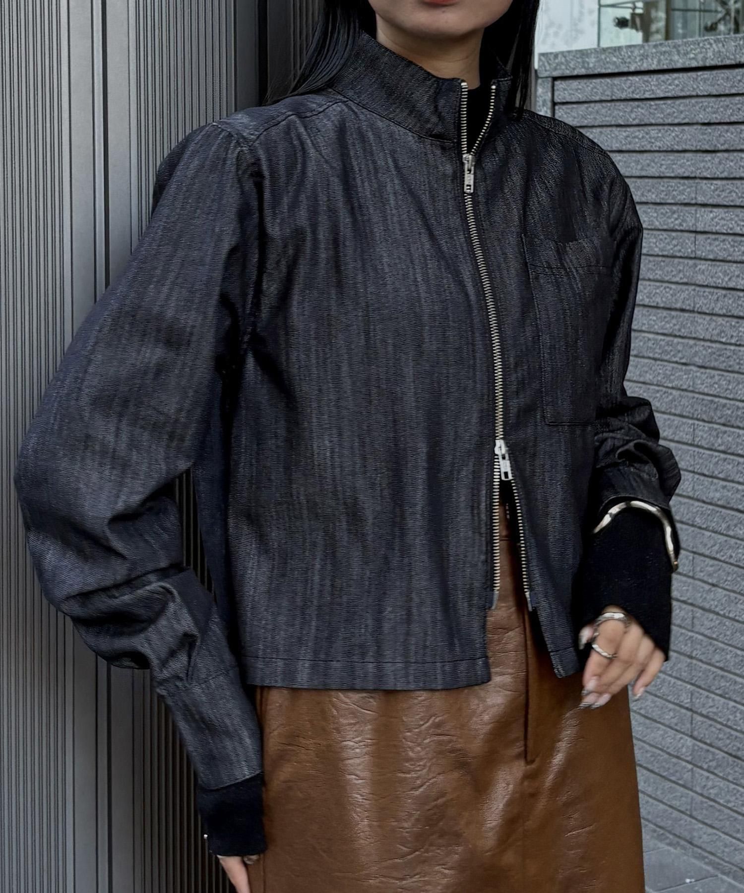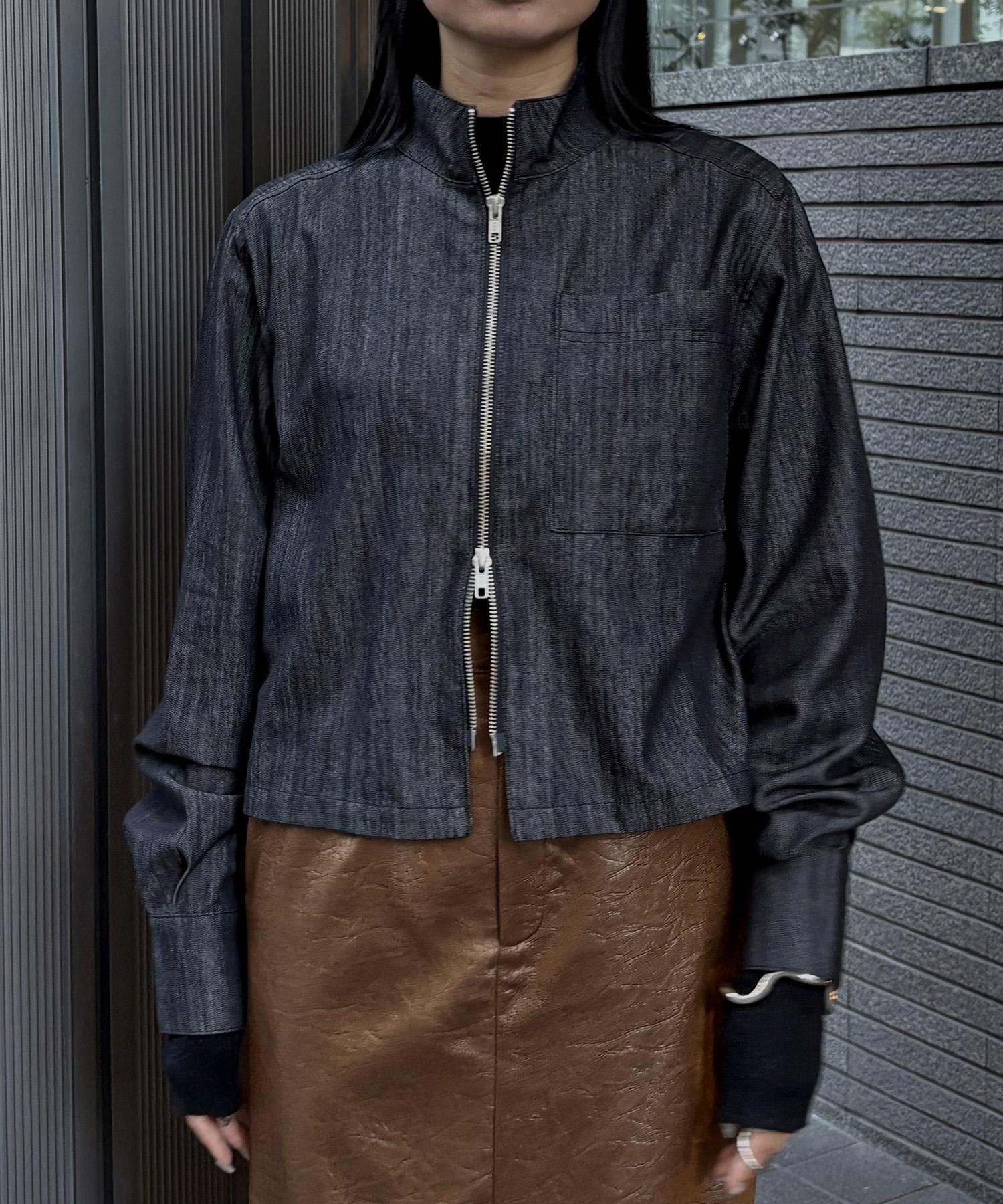 高めの衿とシルバーパーツで、&g’aimeらしいモードなテイストを演出。