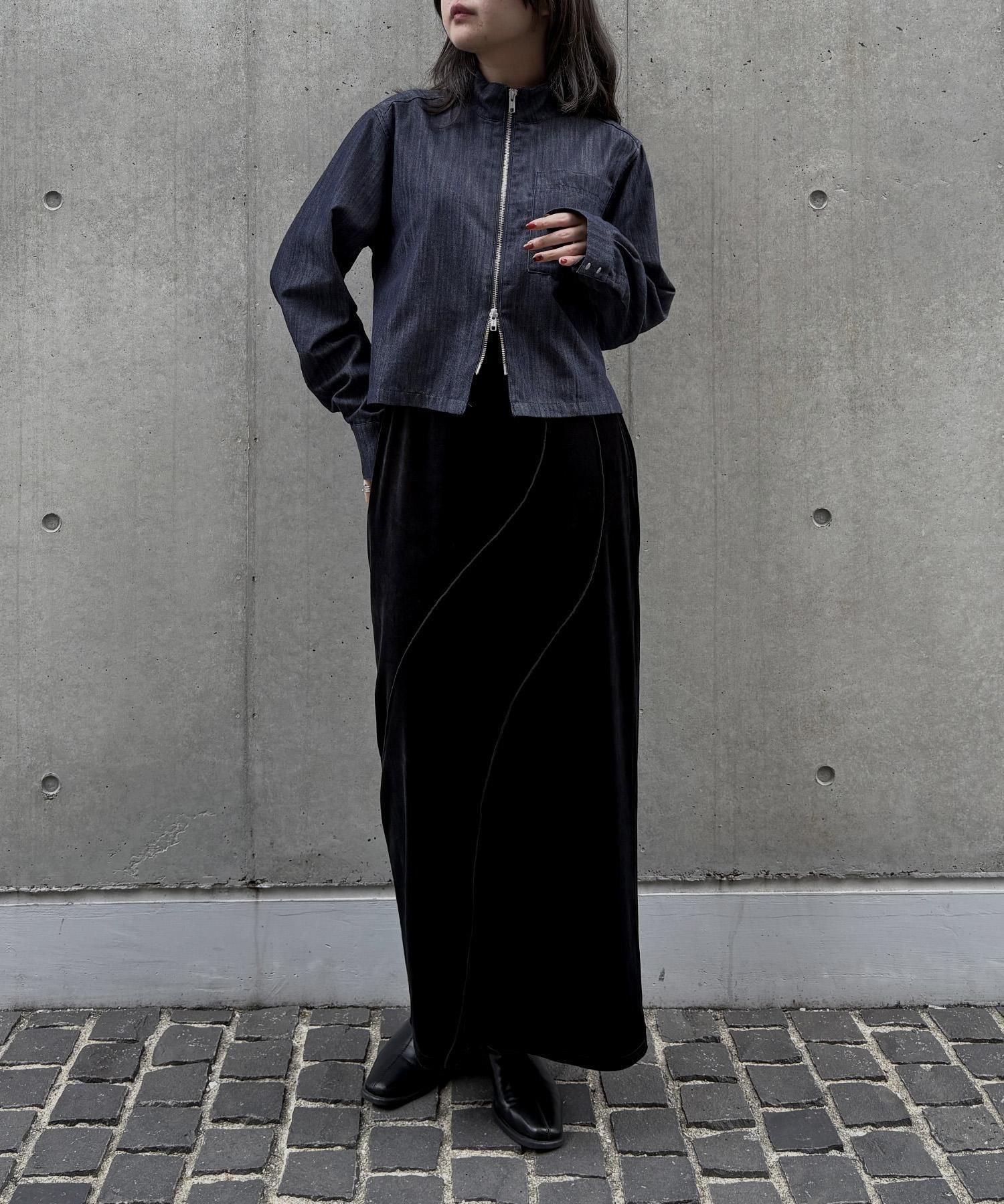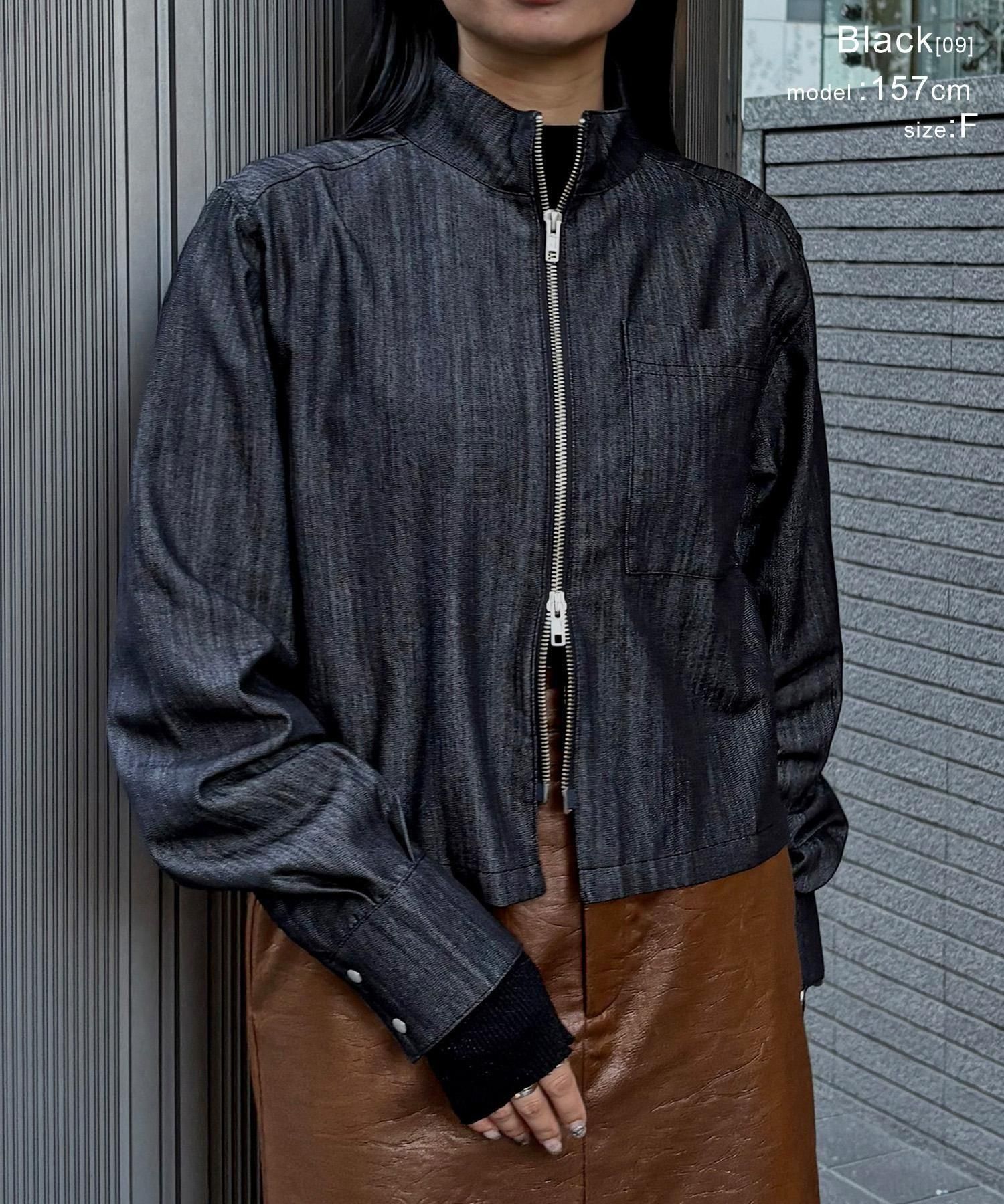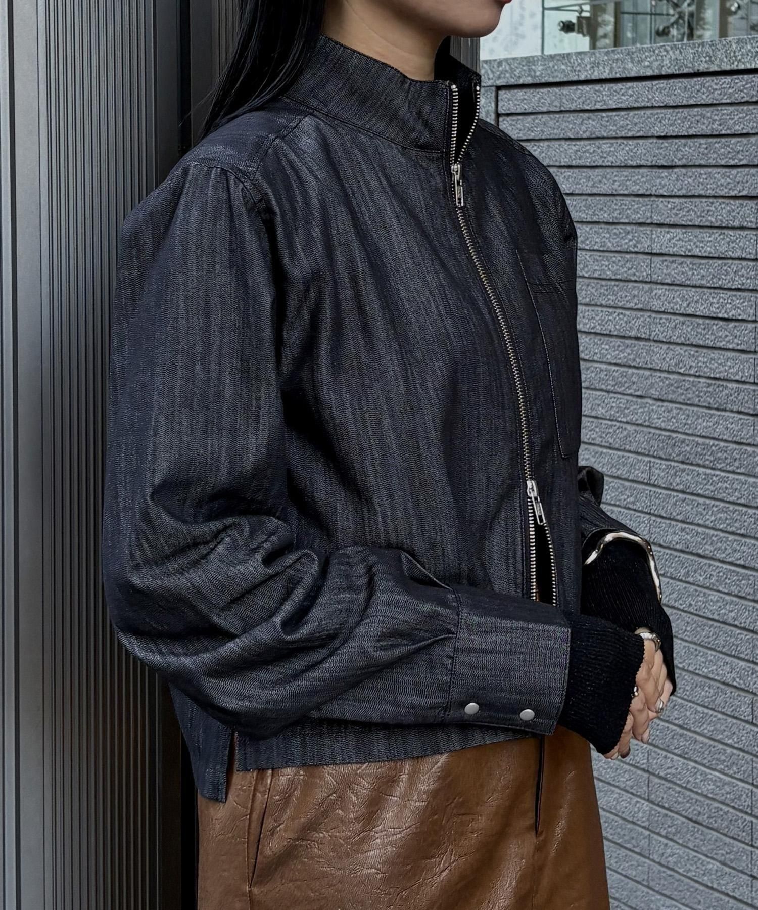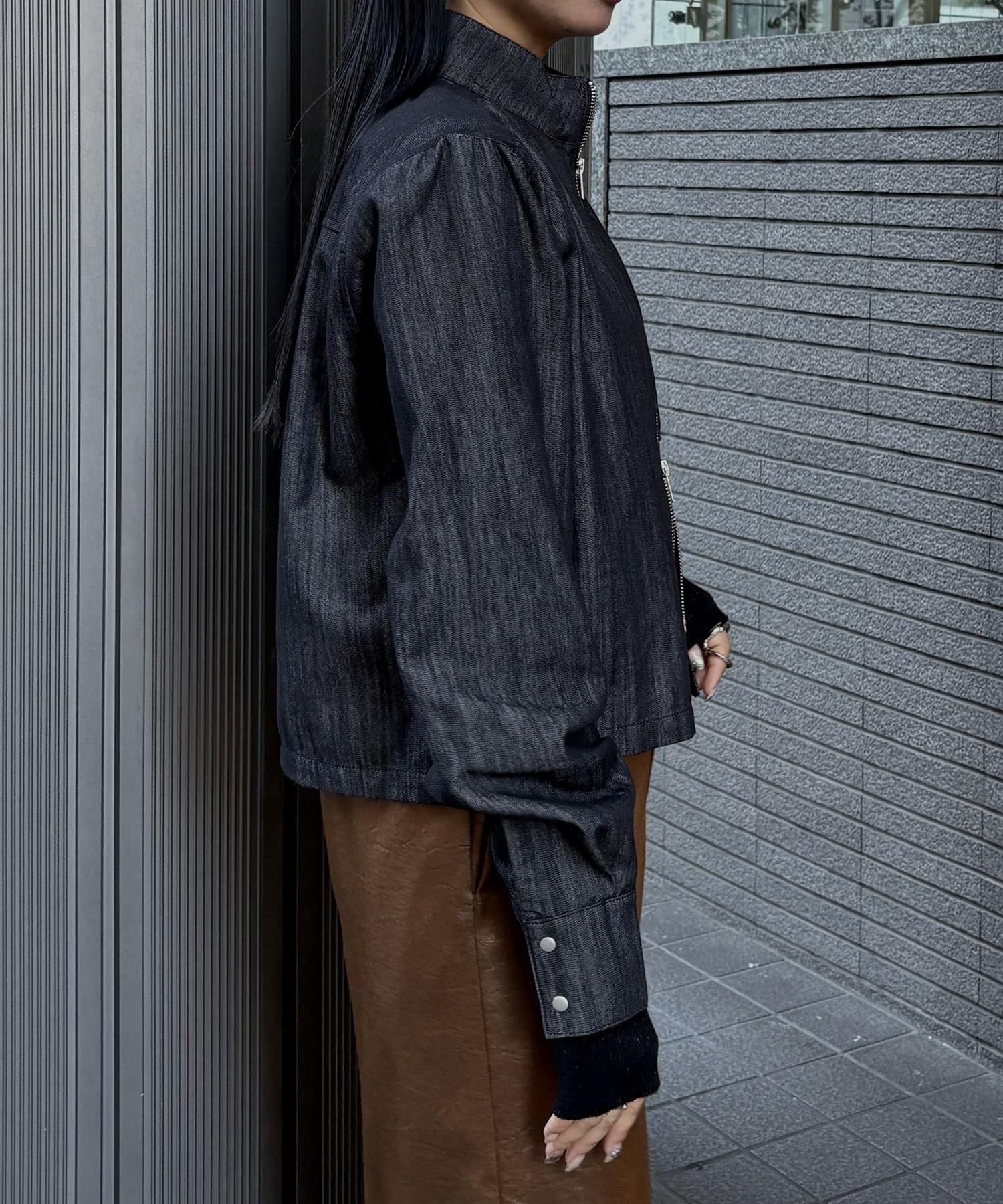 高めの衿とシルバーパーツで、&g’aimeらしいモードなテイストを演出。