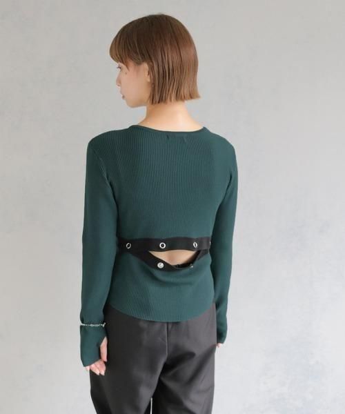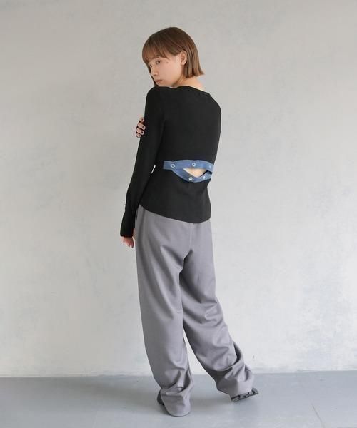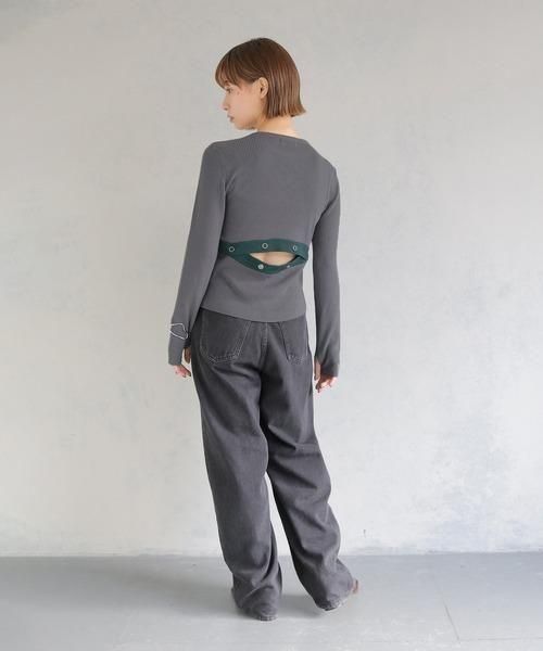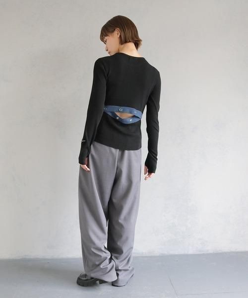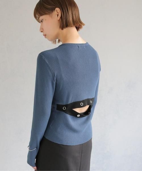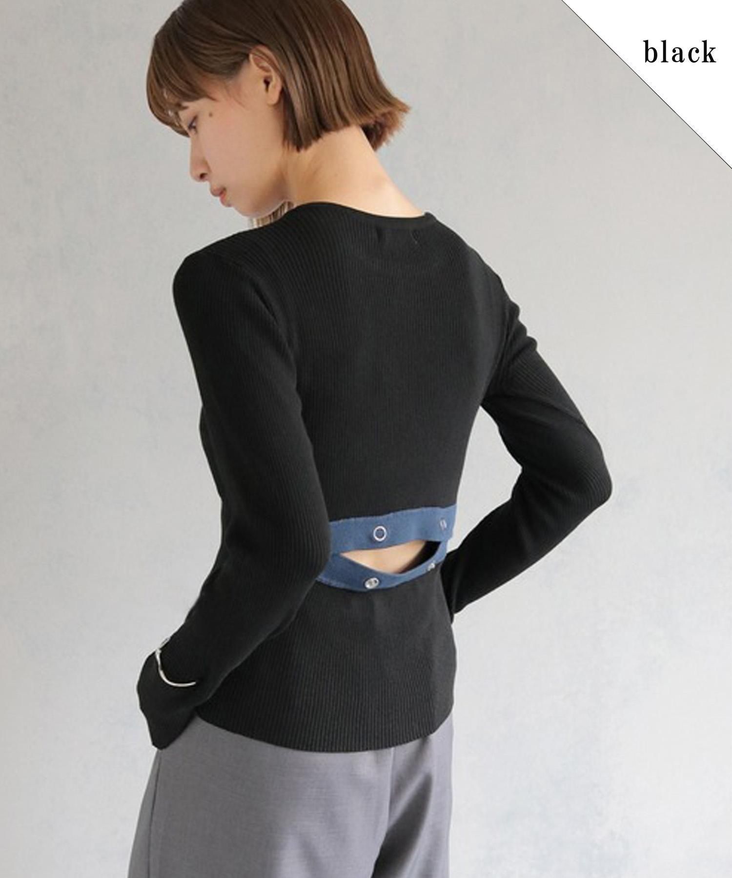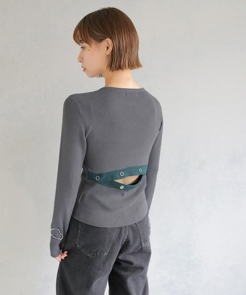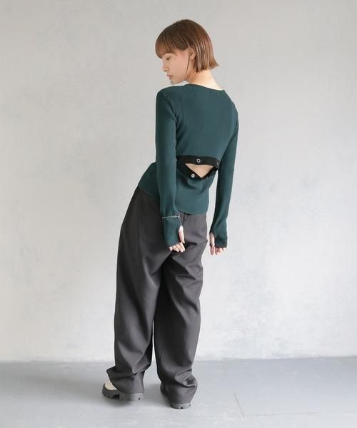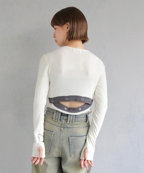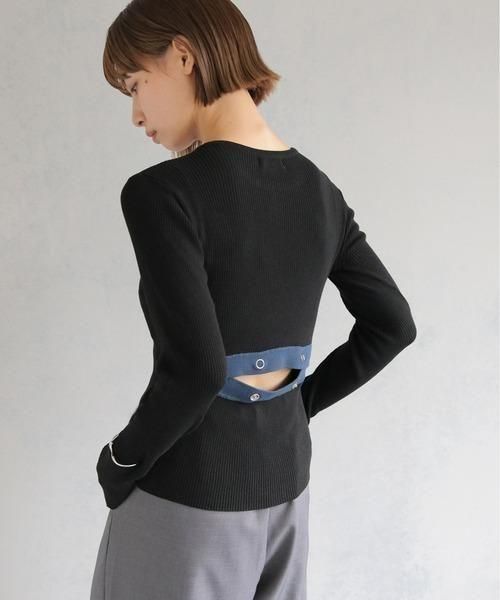 調節可能なバックスリットがポイントの配色ニットトップス