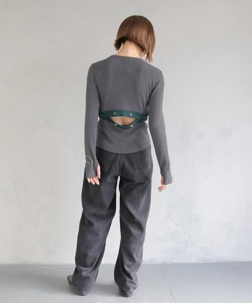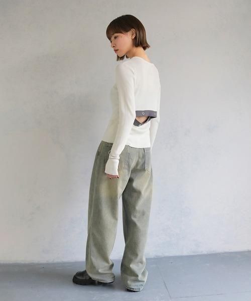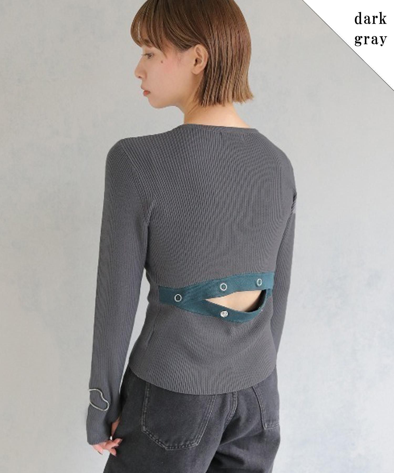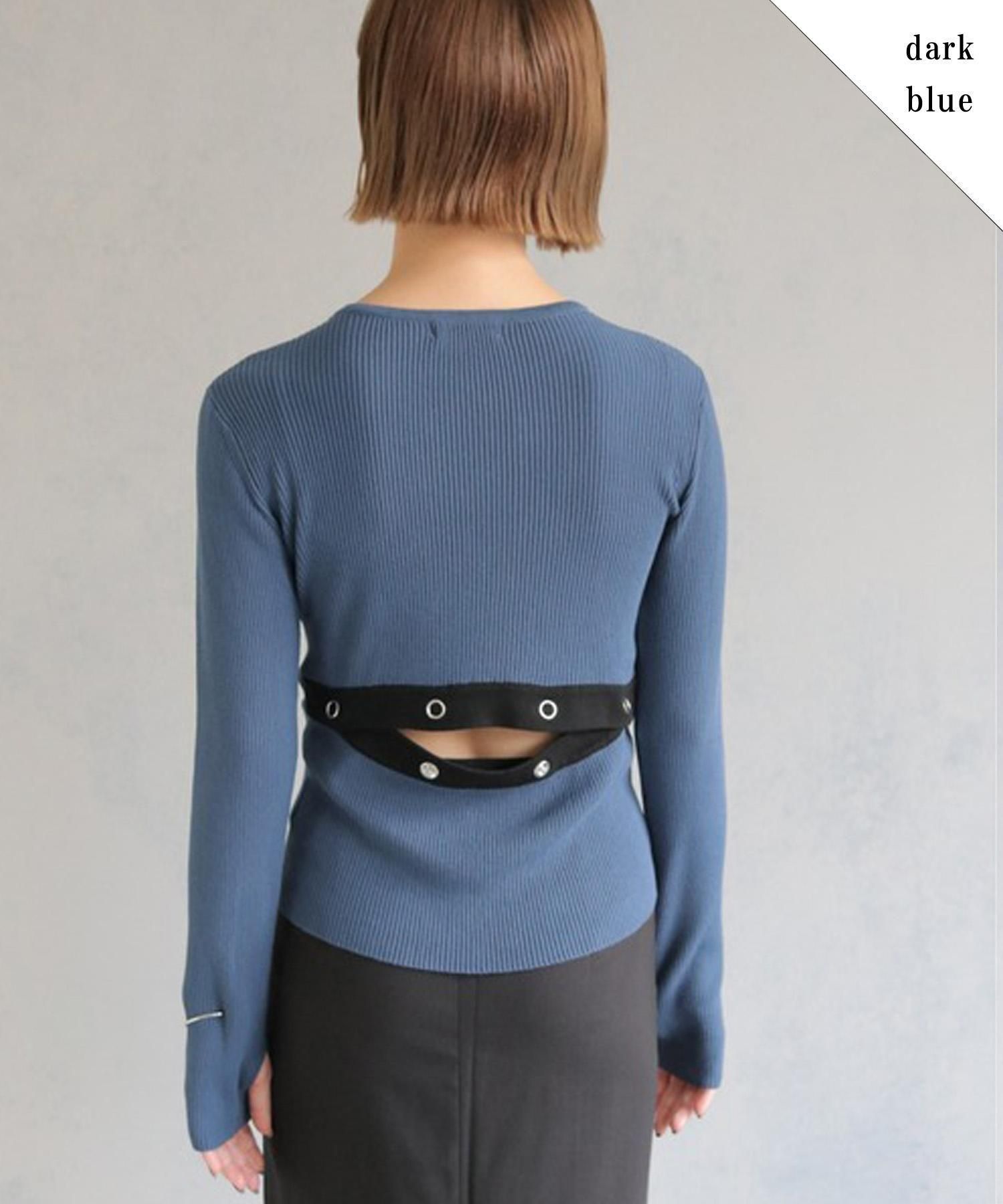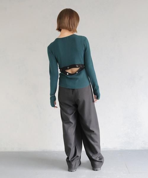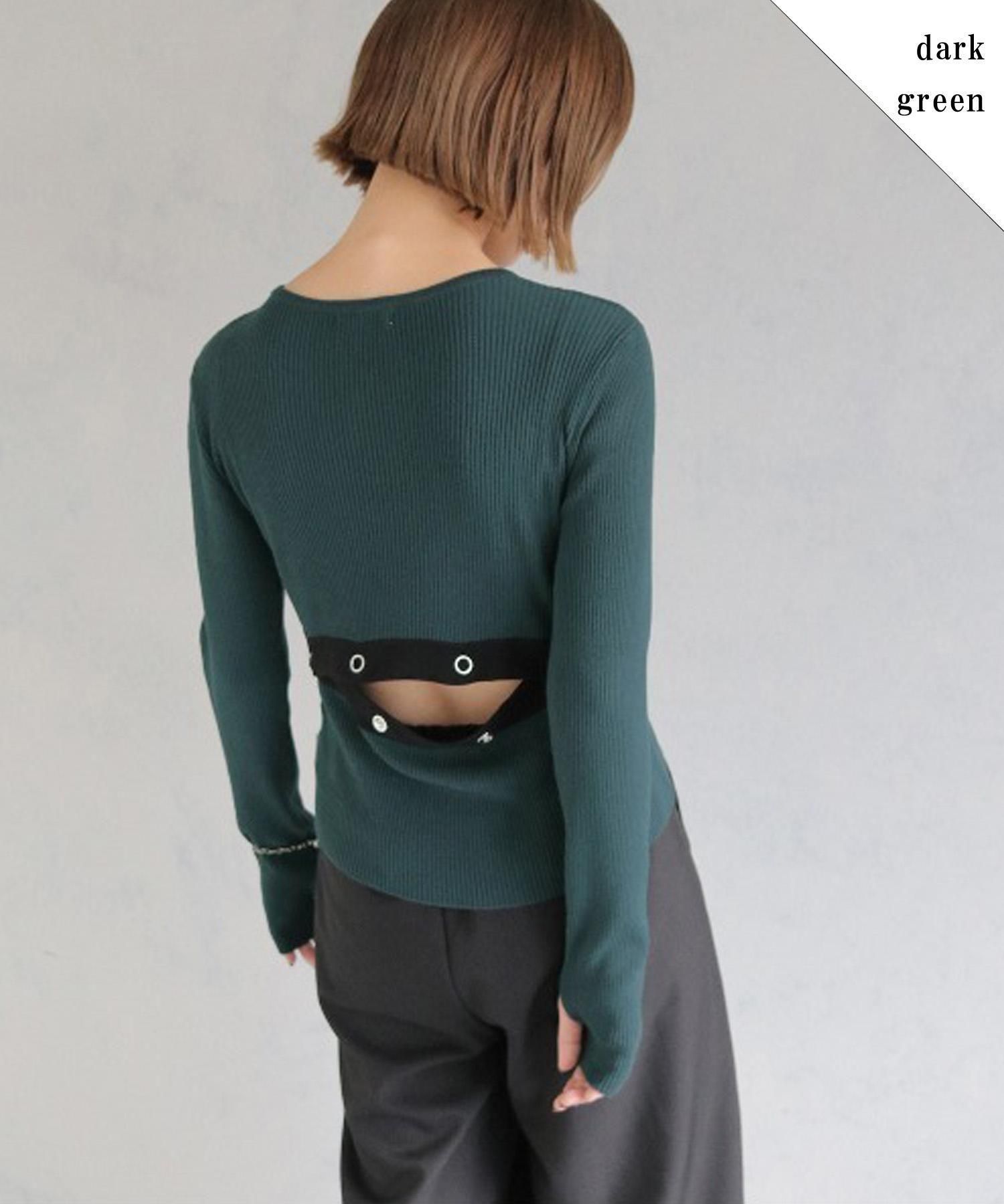 調節可能なバックスリットがポイントの配色ニットトップス