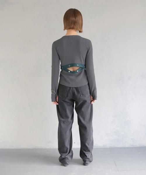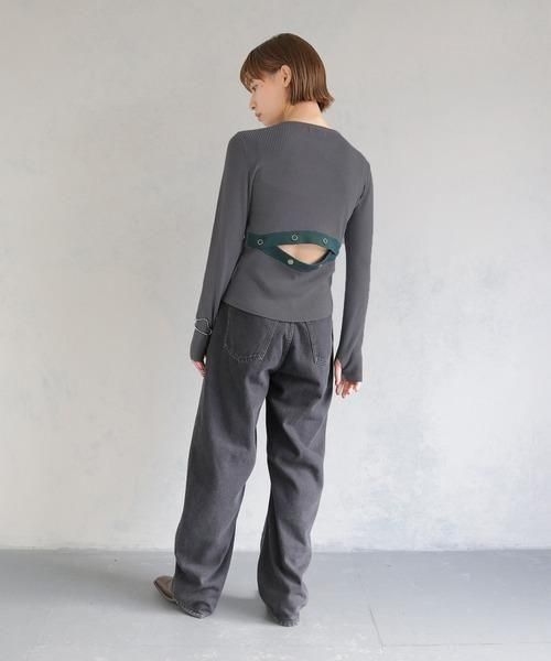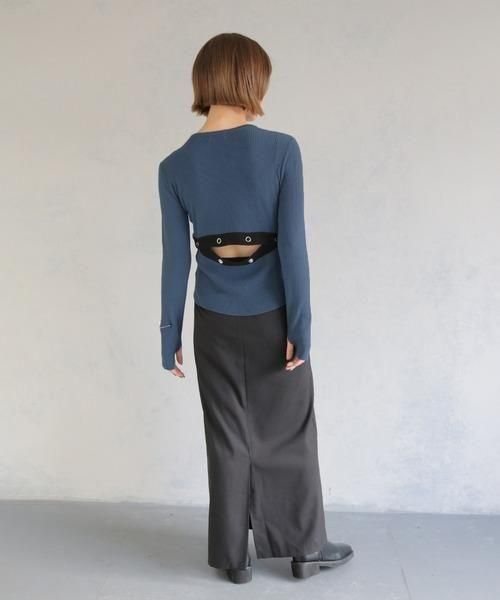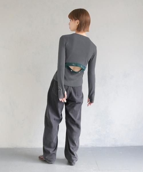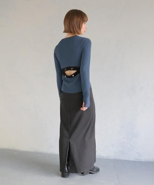 バックのスリット部分はスナップボタンで調節可能なので、あけ具合によって印象を変えられる為飽きずにいろいろなコーデを楽しんでいただけます。
