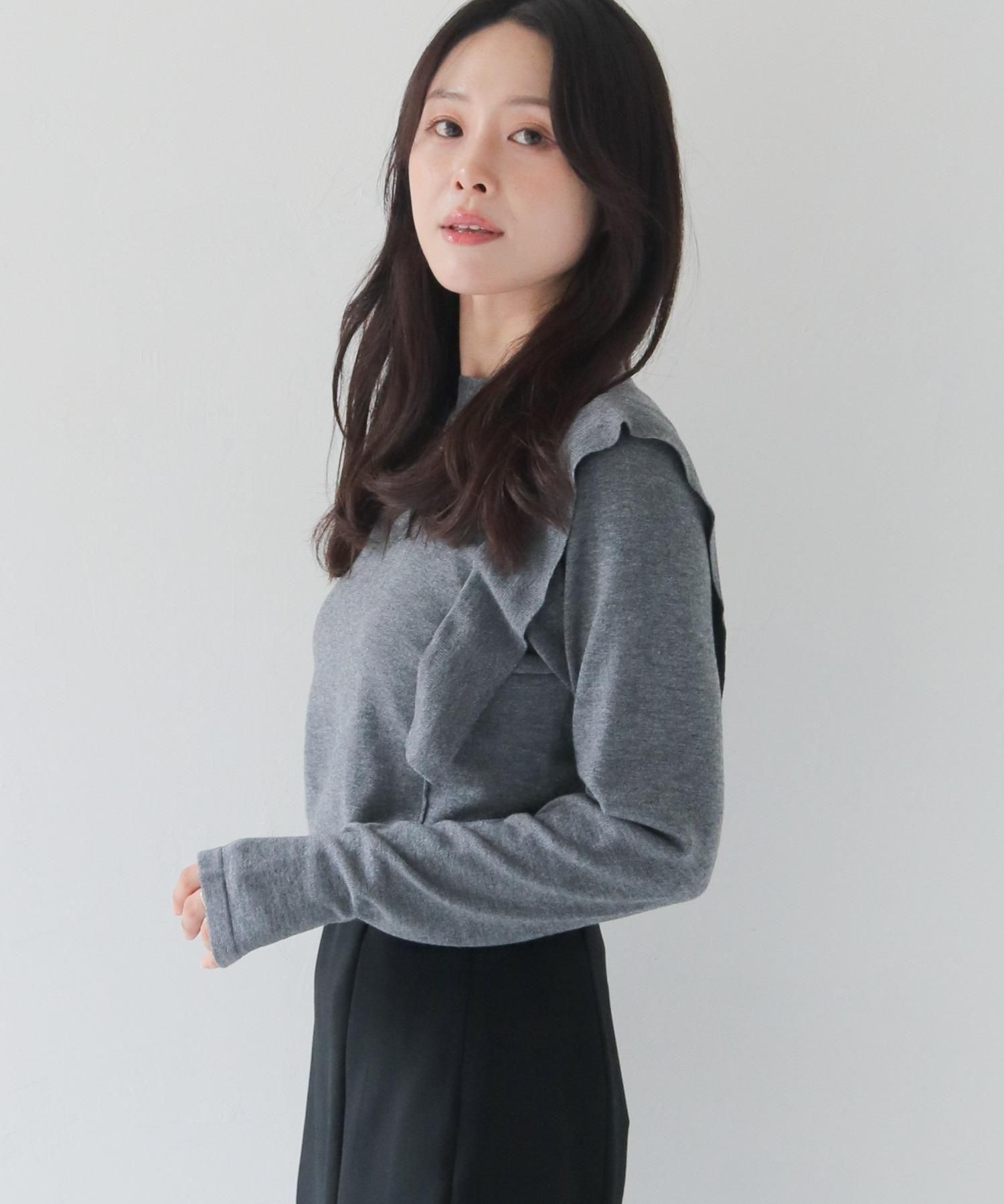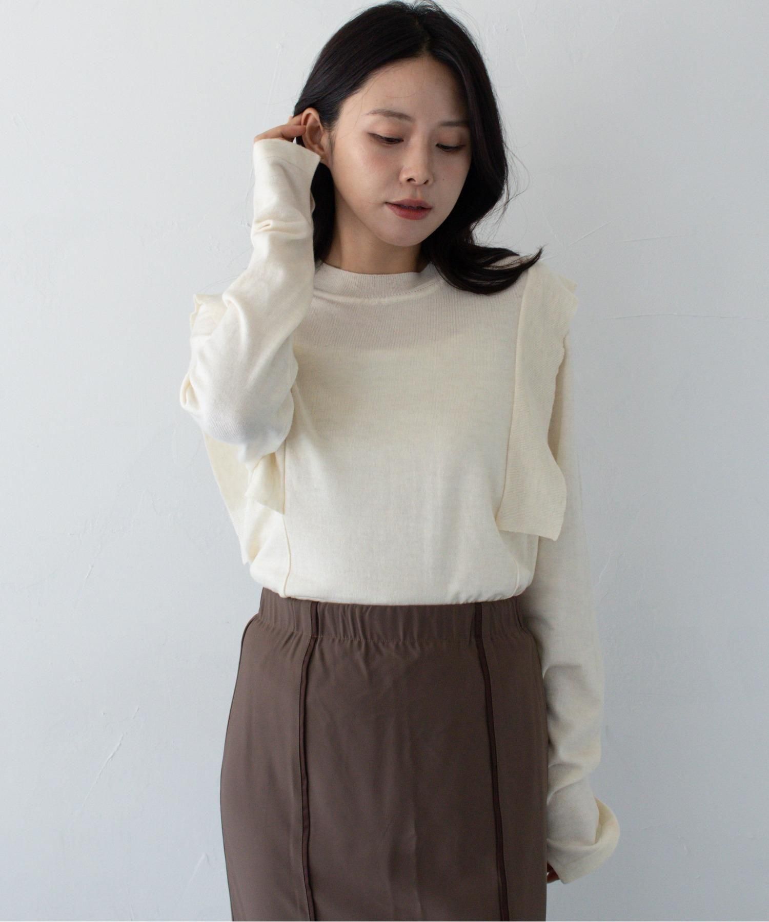 先行販売10%OFF!【HER CLOSET】ショルダーフリルデザインニット
