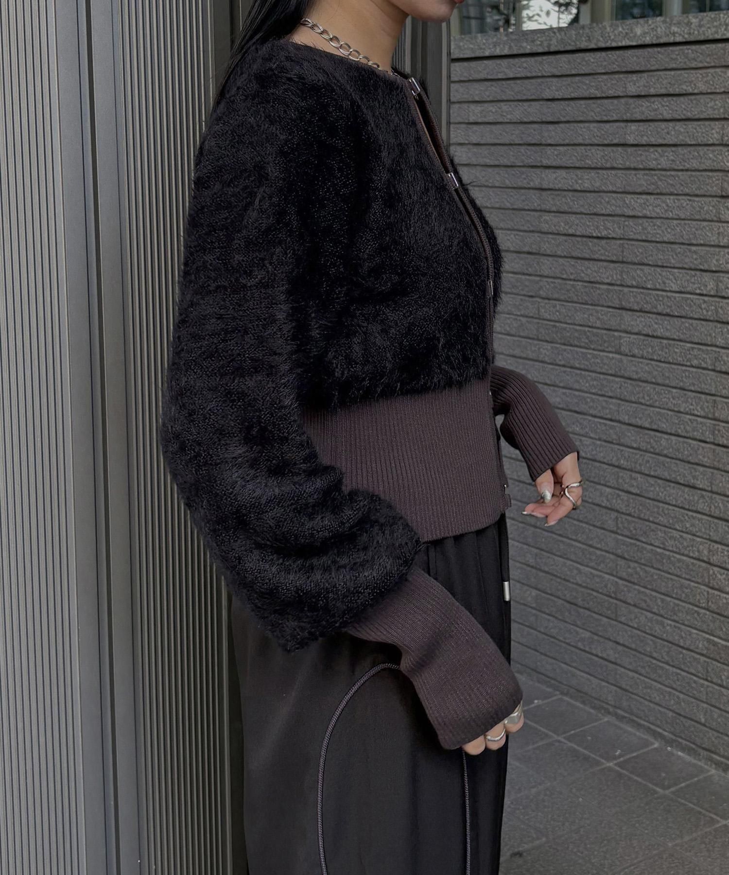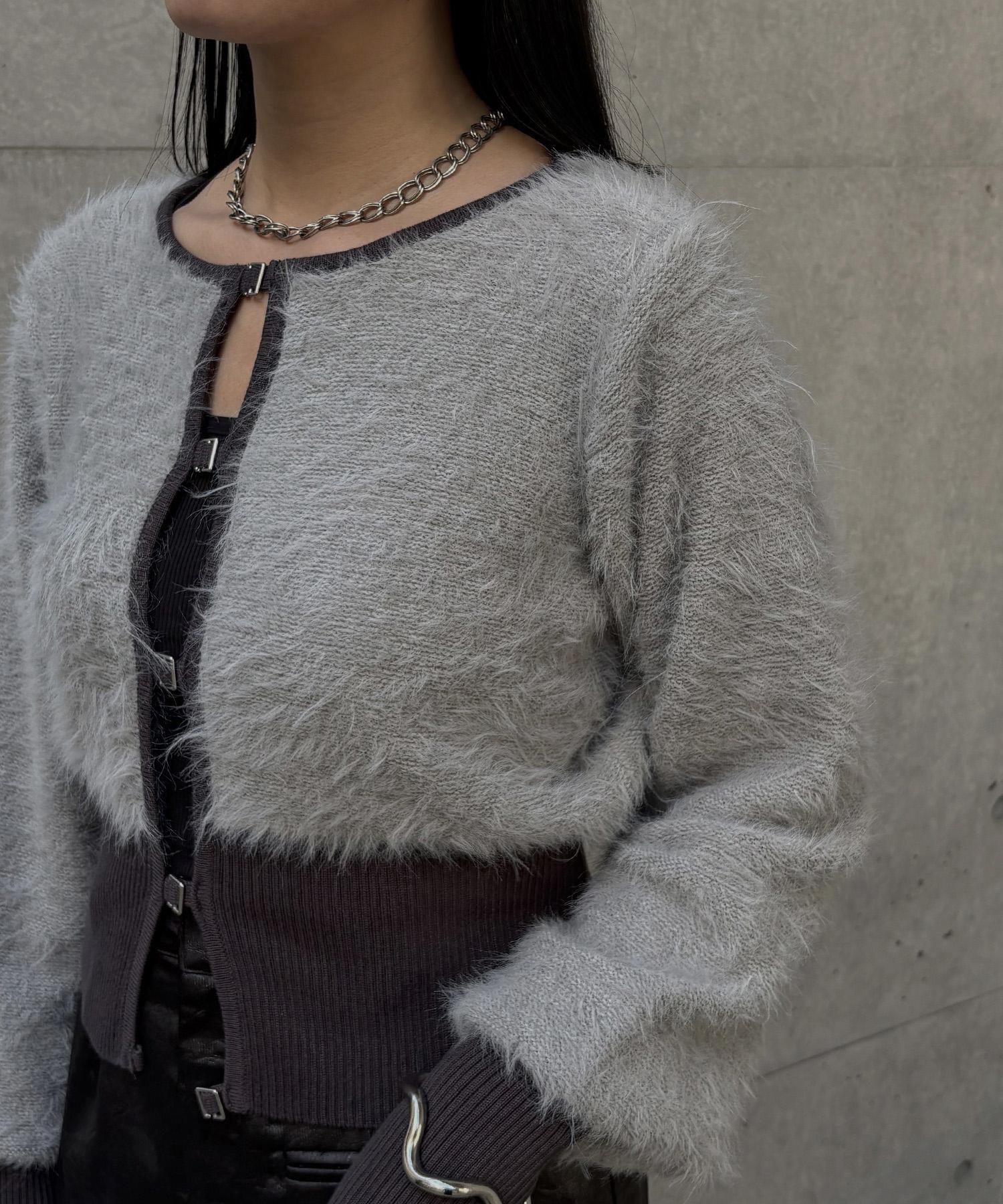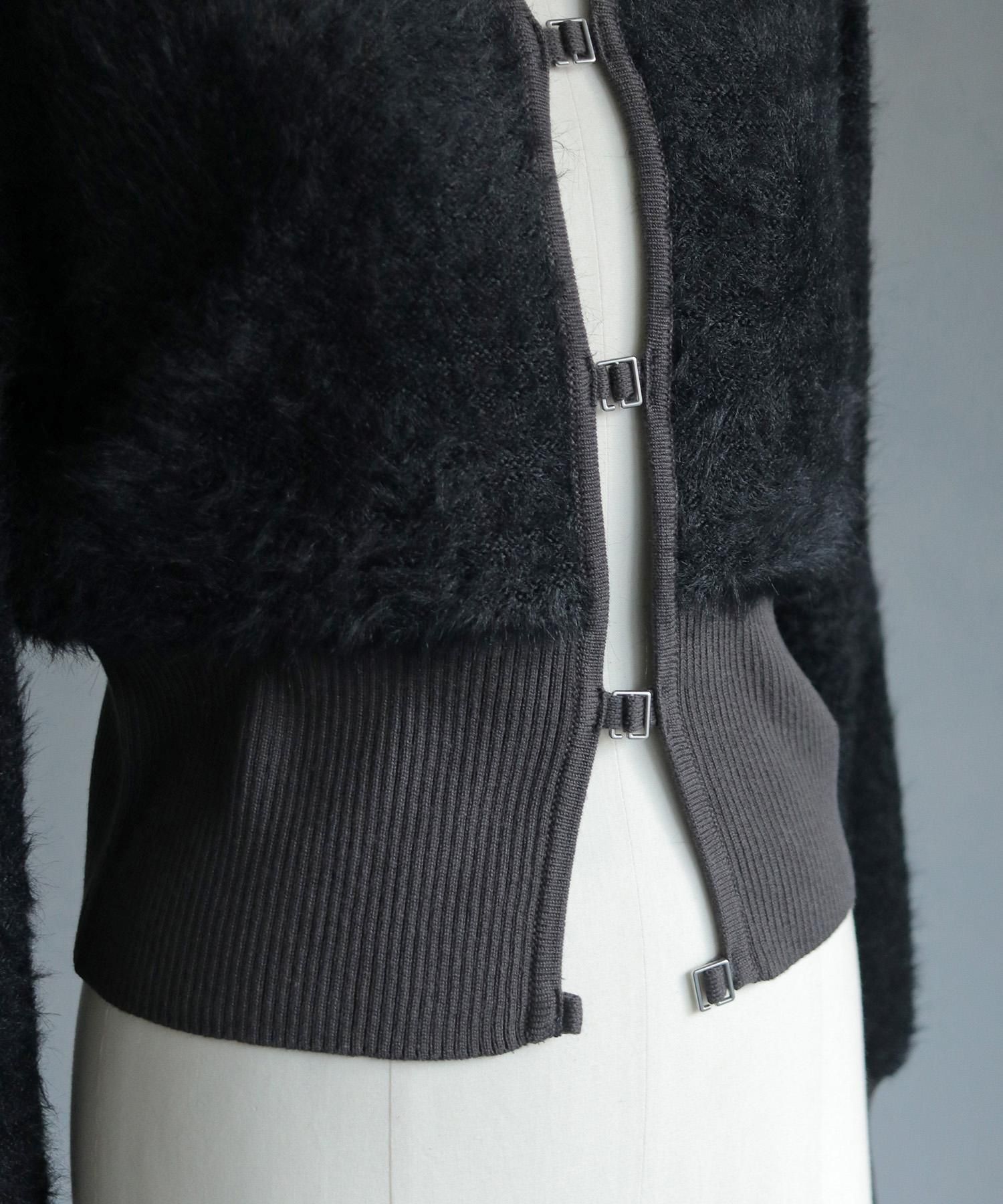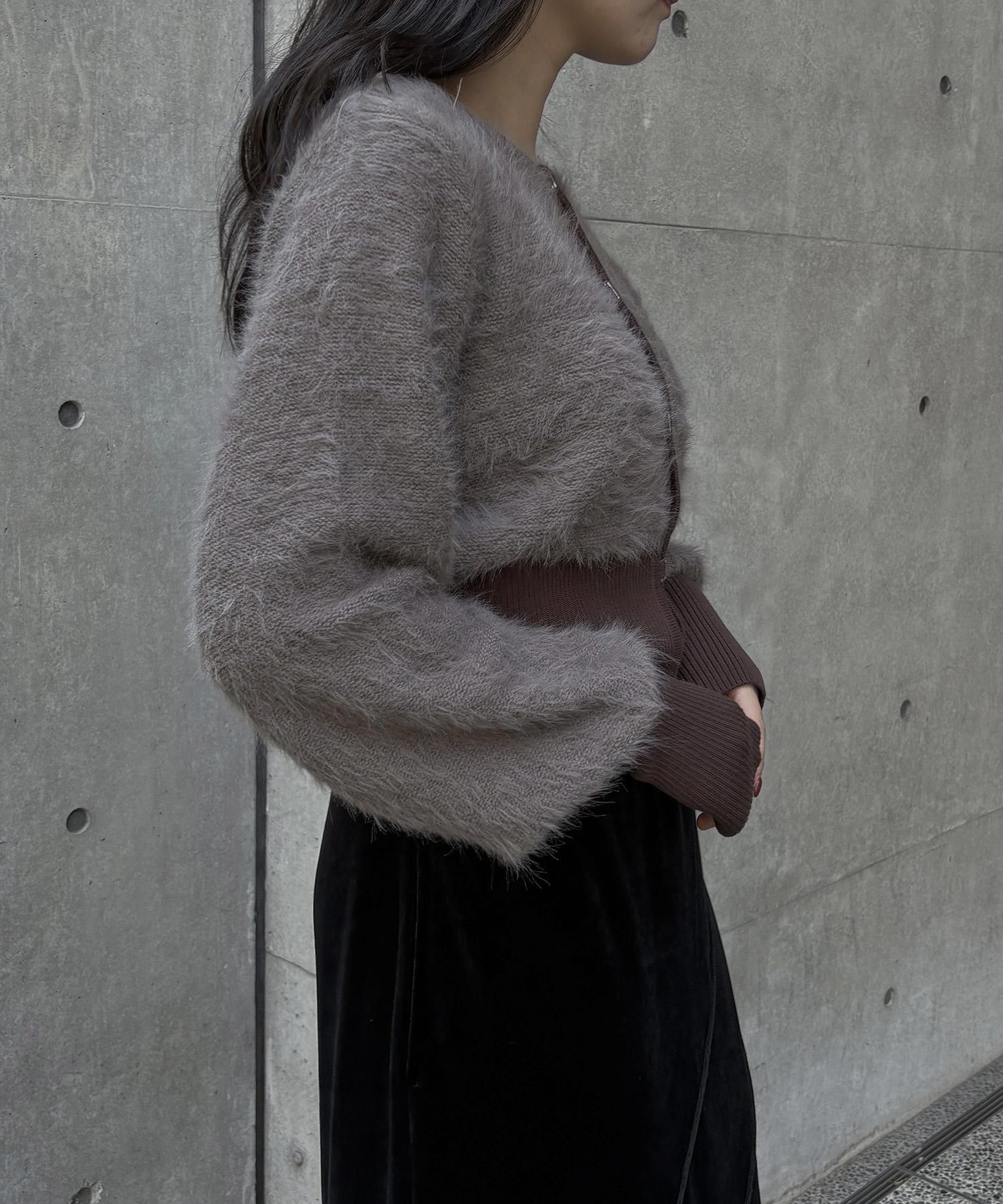 配色がポイントの、秋冬らしいシャギーカーディガン