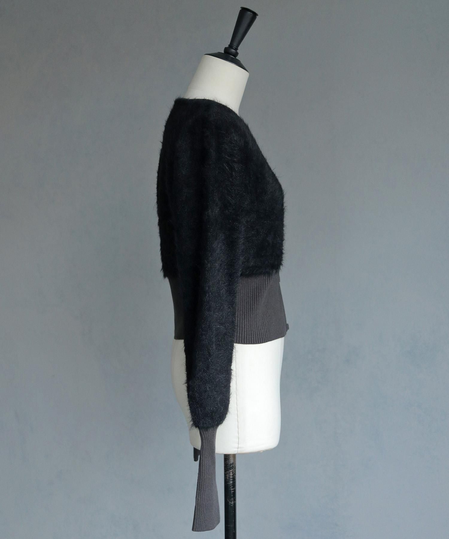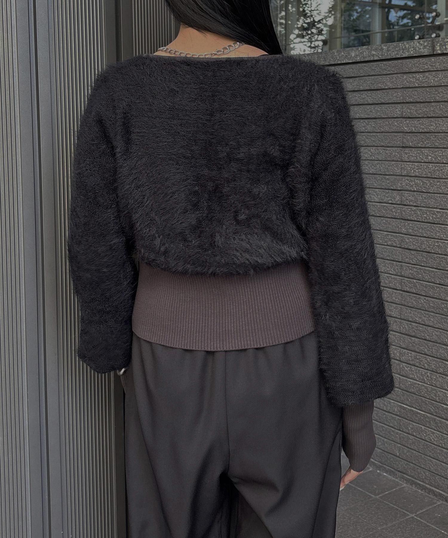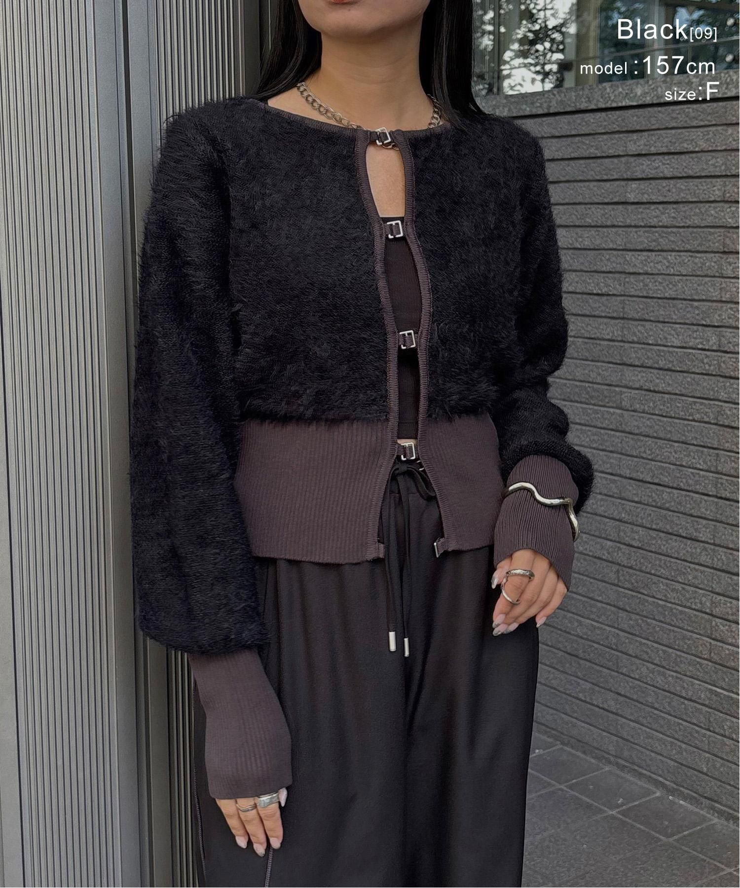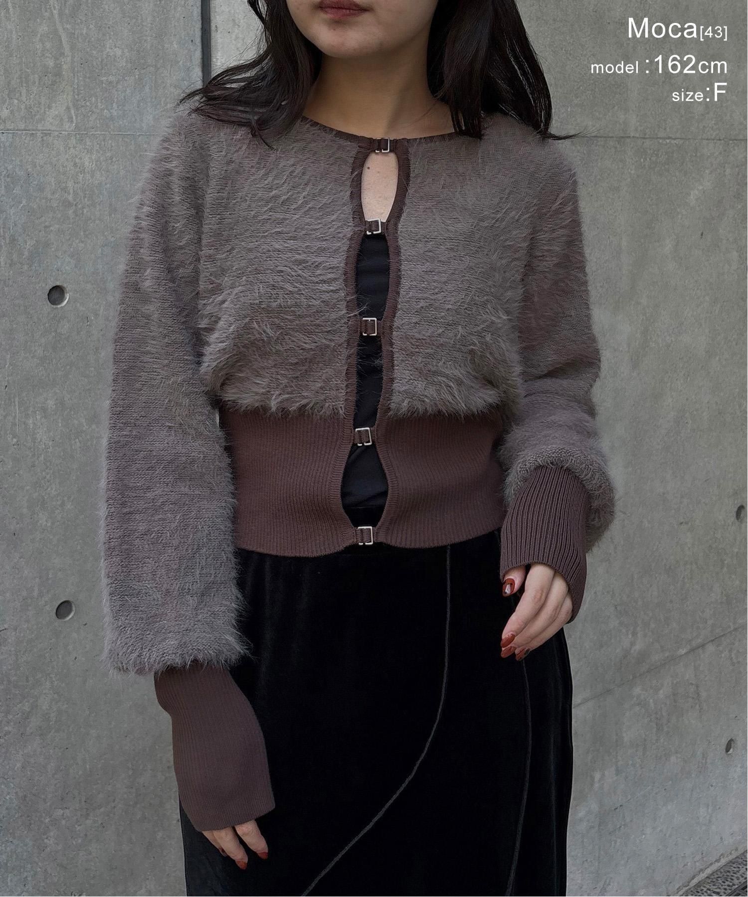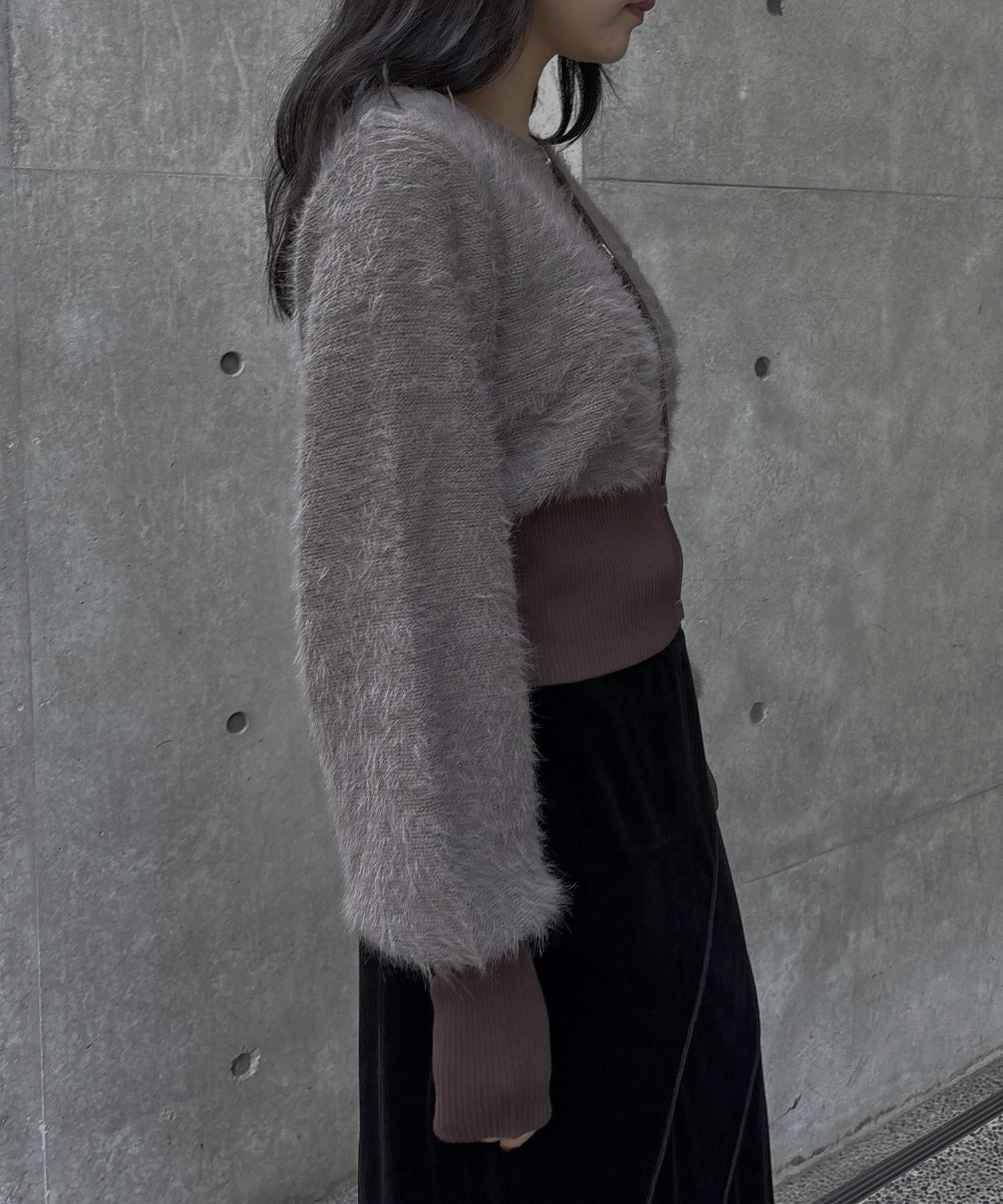 配色がポイントの、秋冬らしいシャギーカーディガン