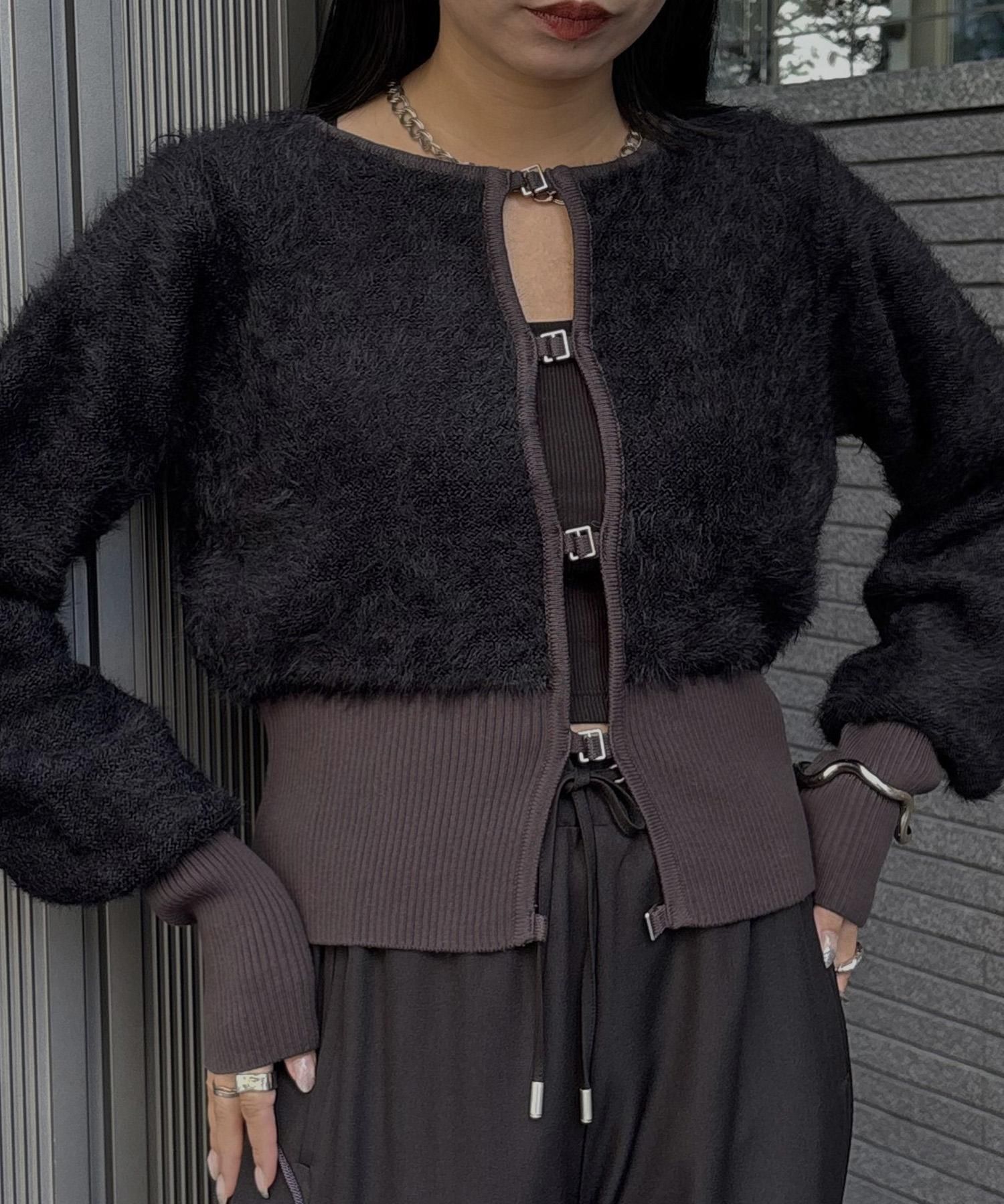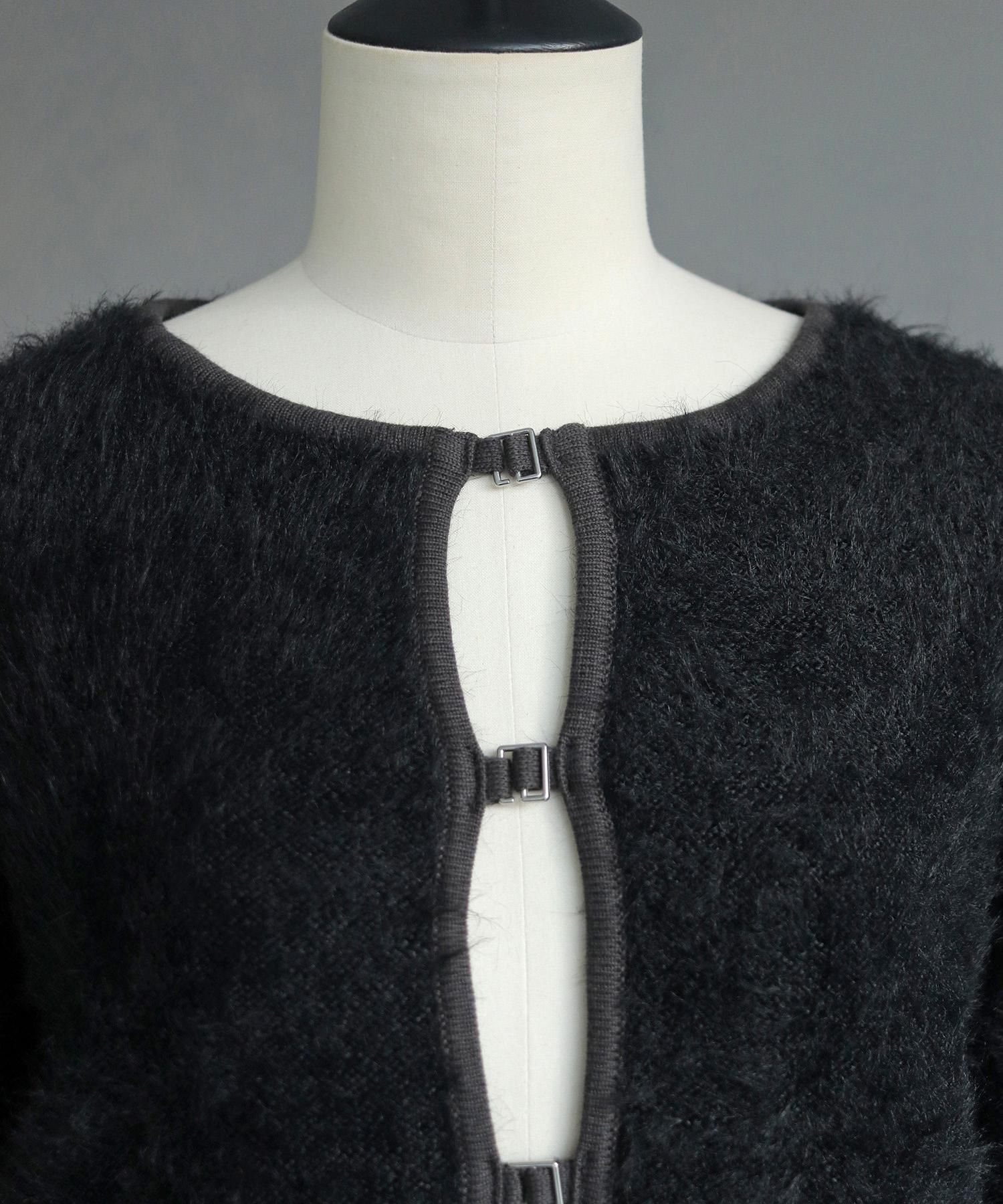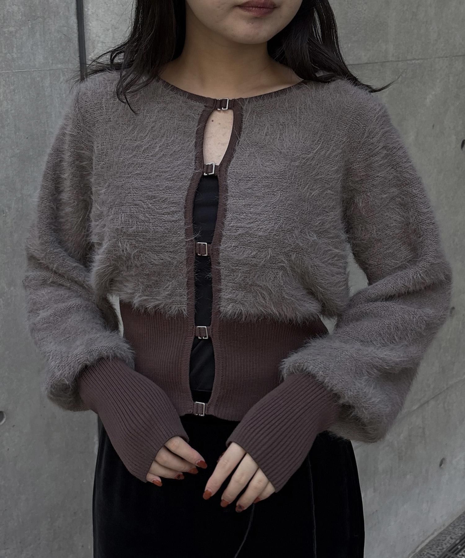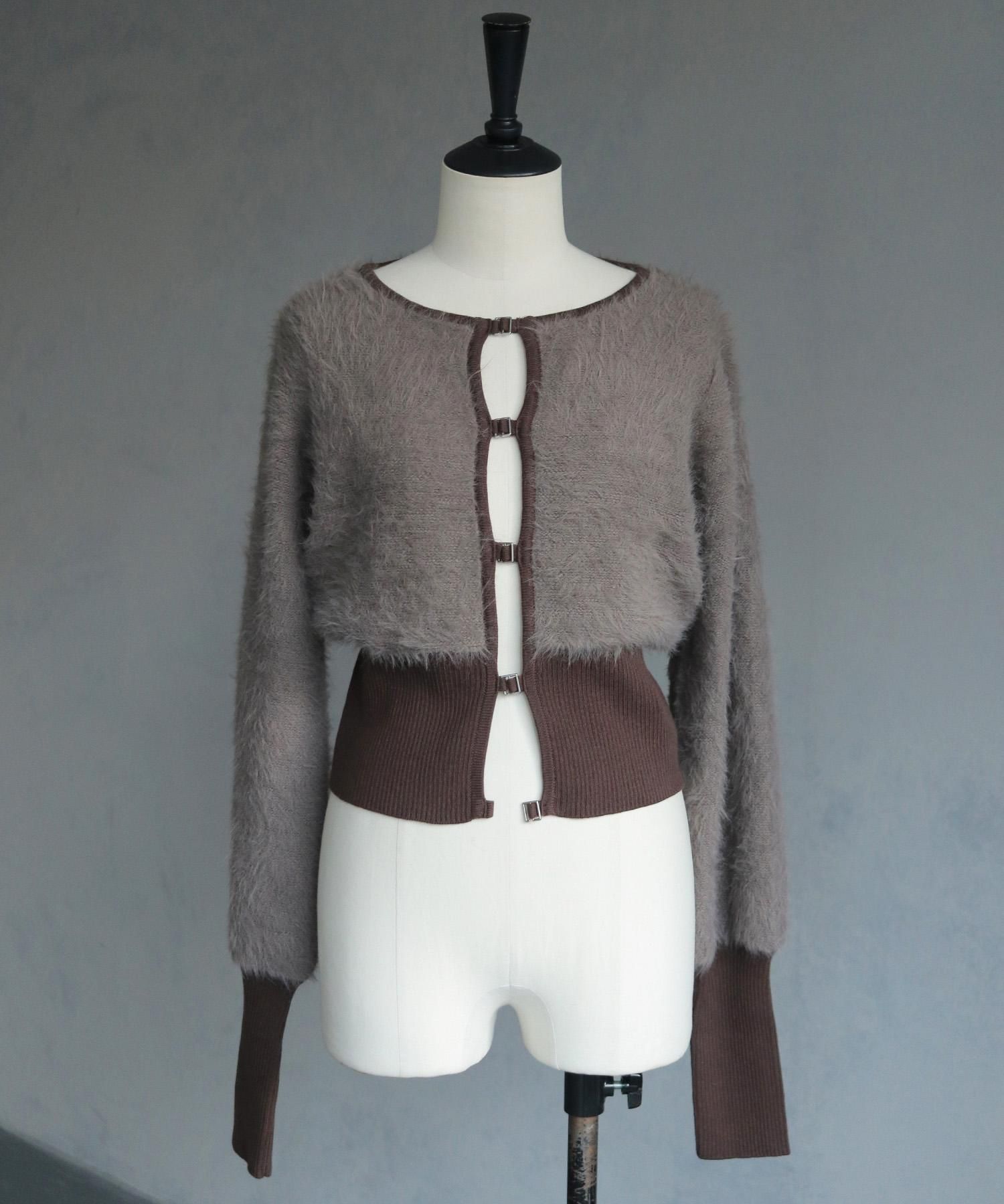 配色がポイントの、秋冬らしいシャギーカーディガン