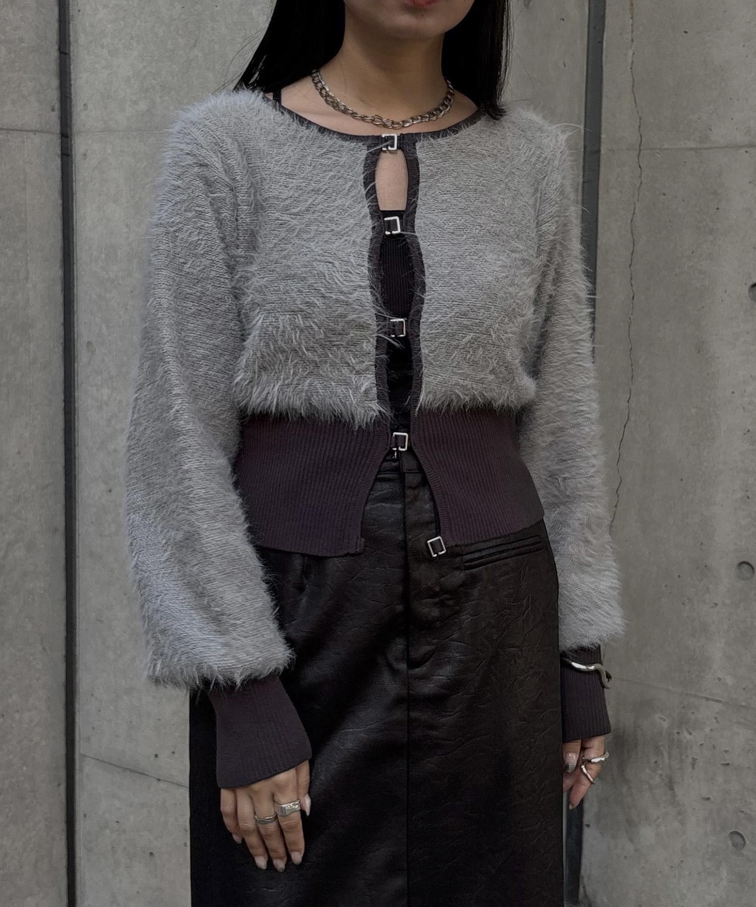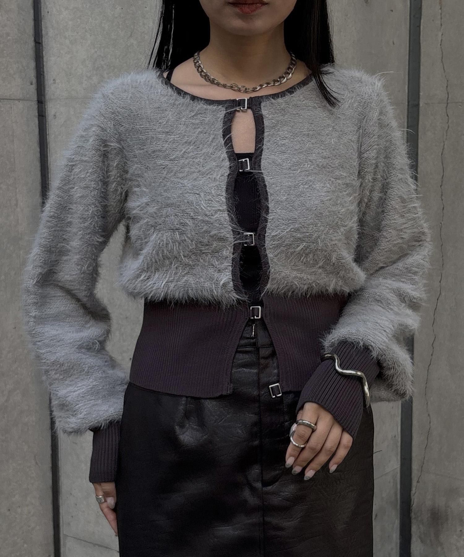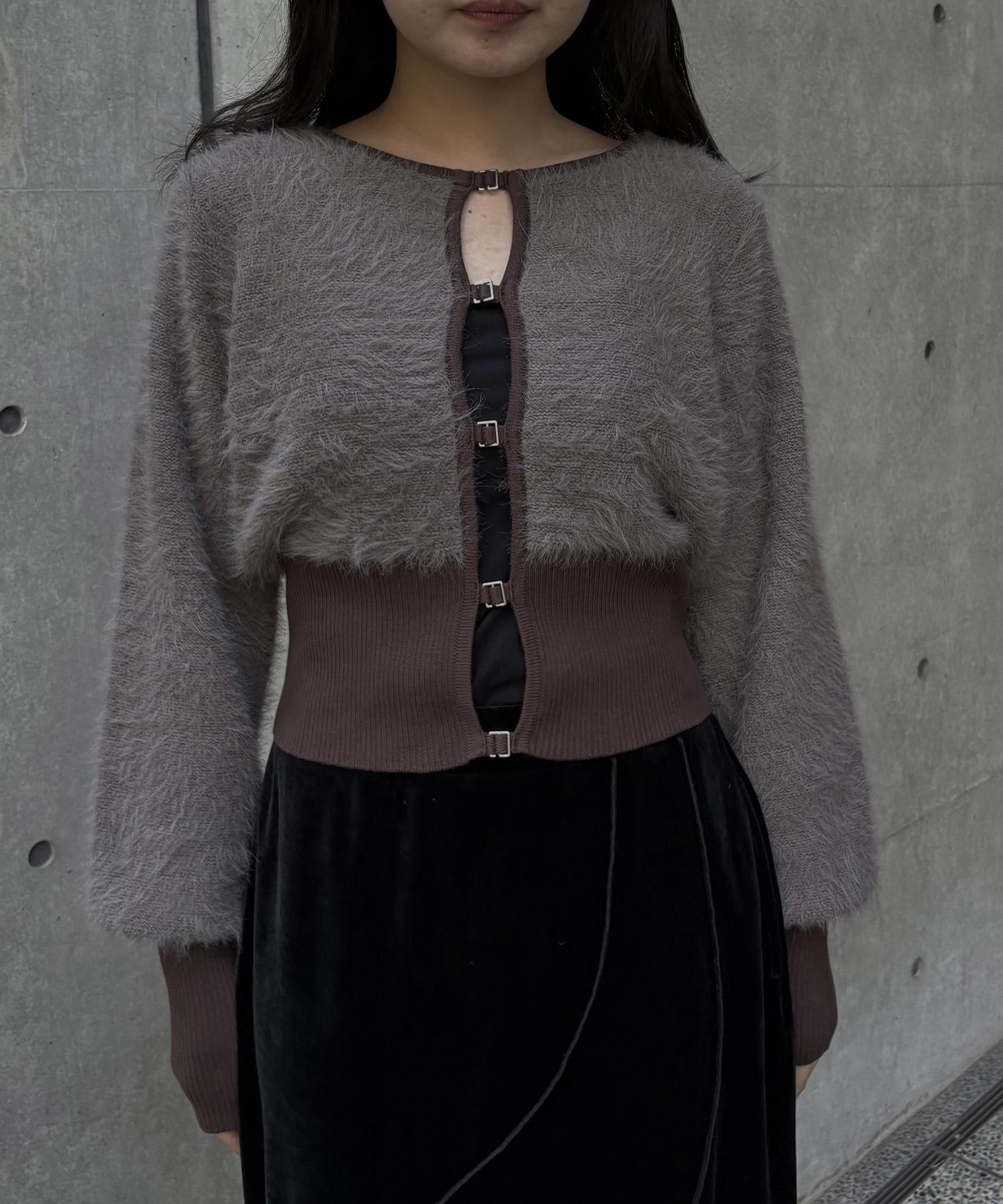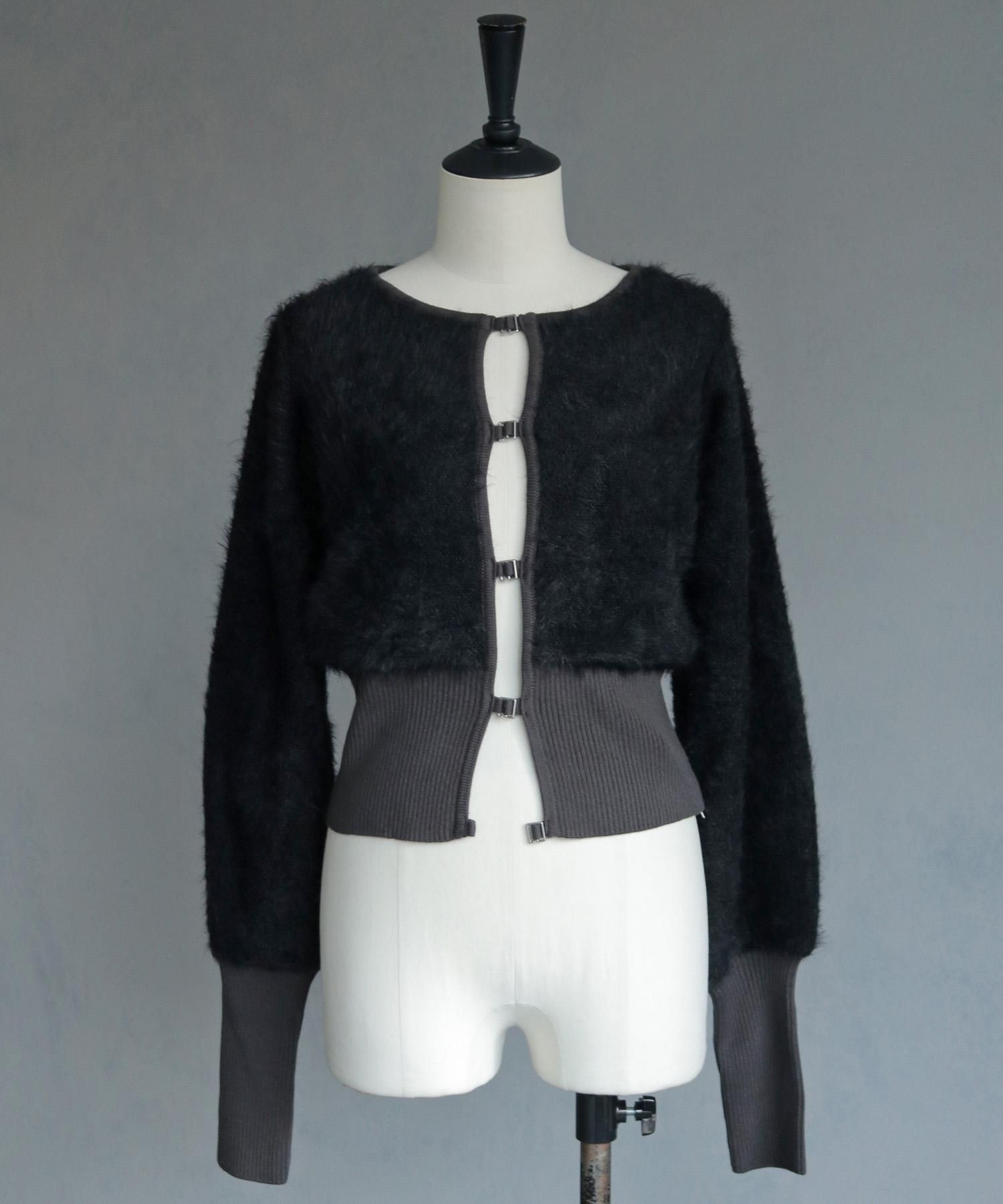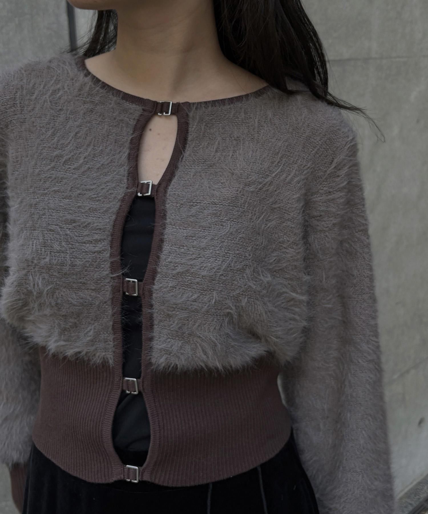 配色がポイントの、秋冬らしいシャギーカーディガン